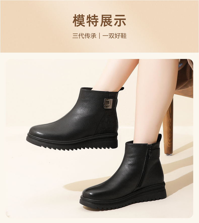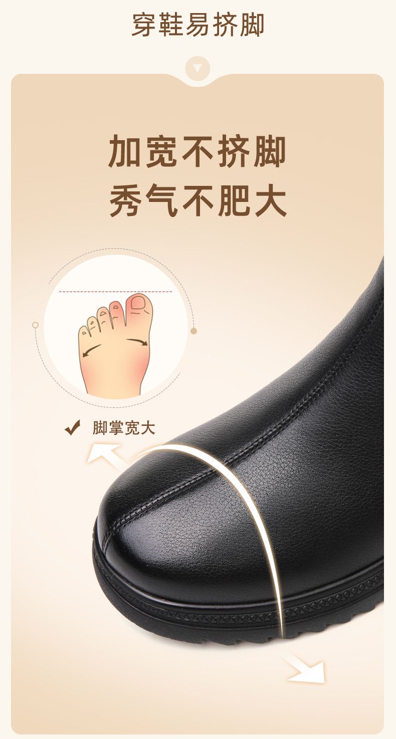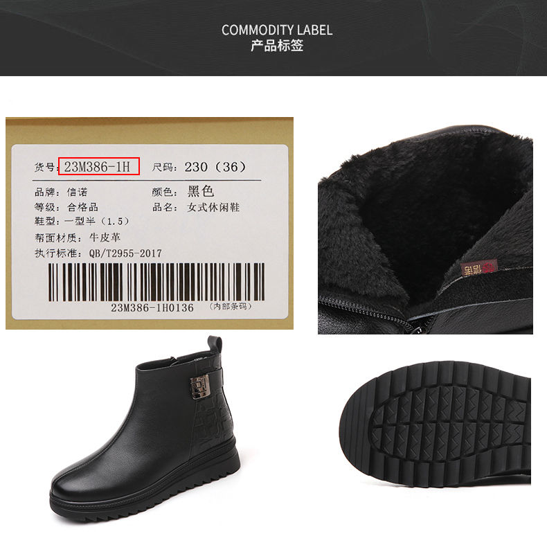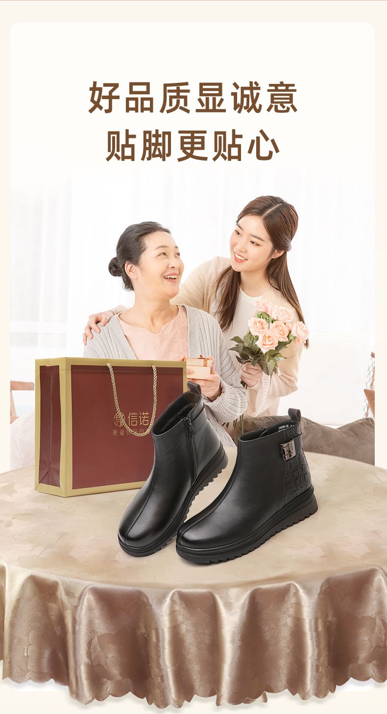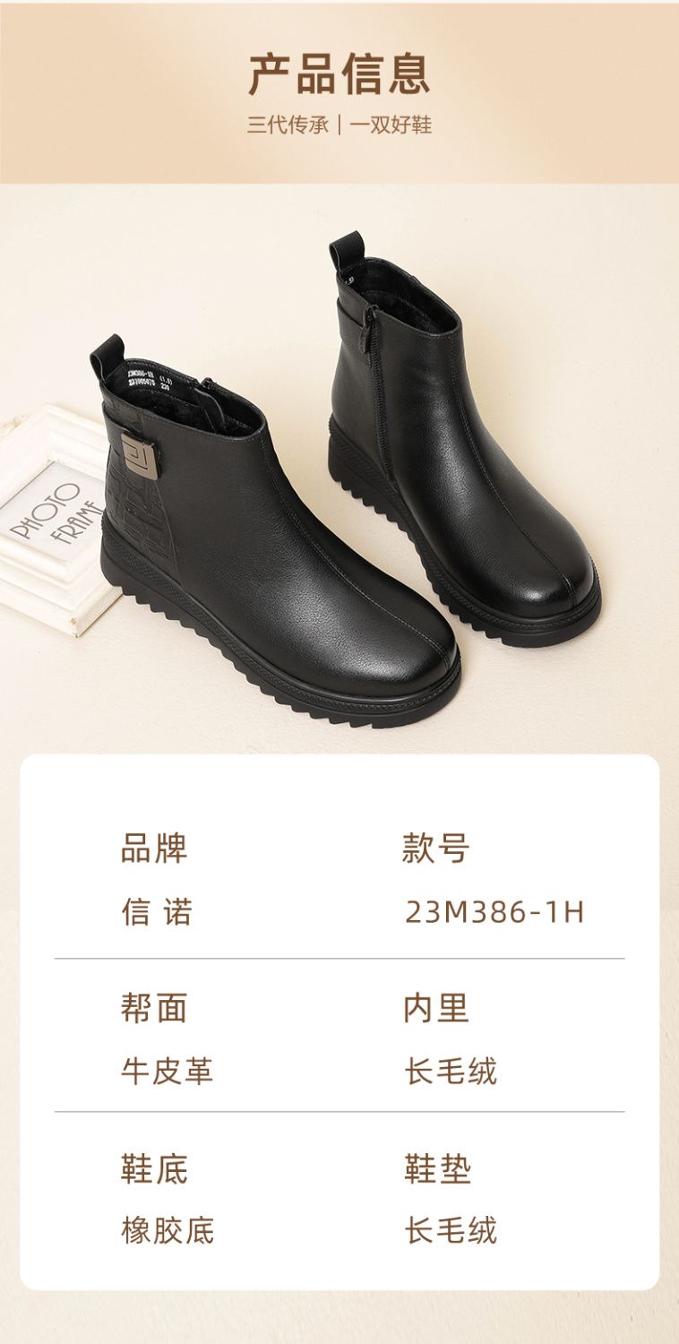 信诺东北加厚保暖妈妈棉鞋冬季防滑平底真皮短靴中老年厚底女皮鞋23M386-1H