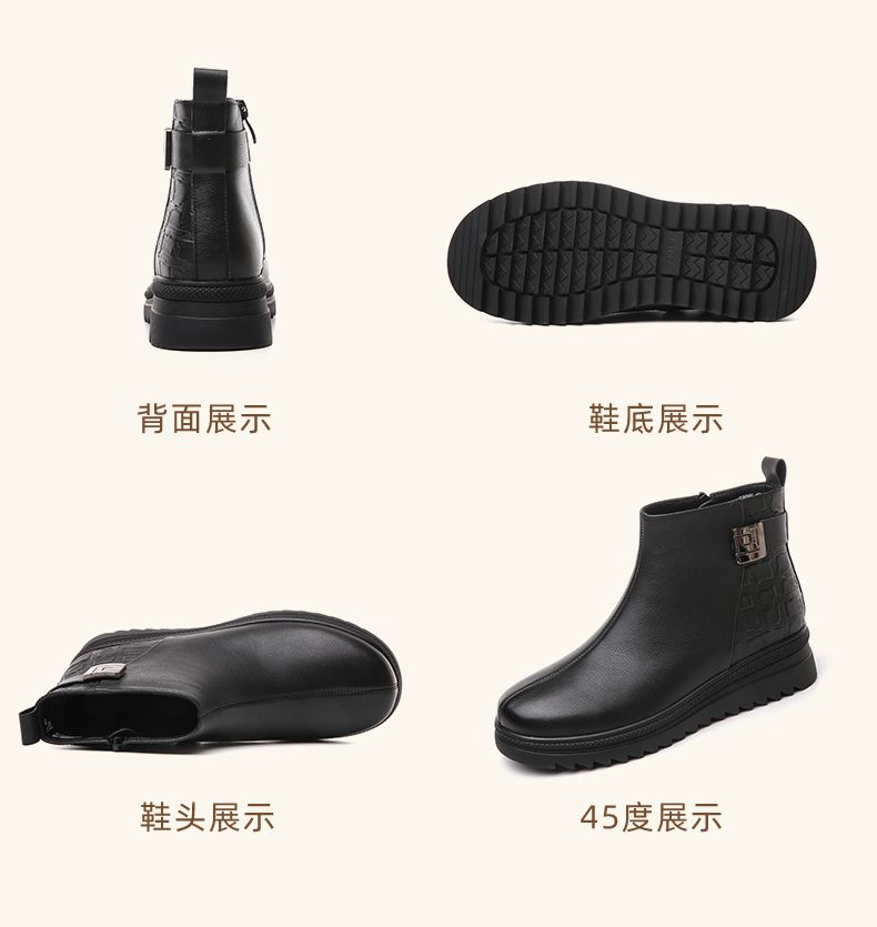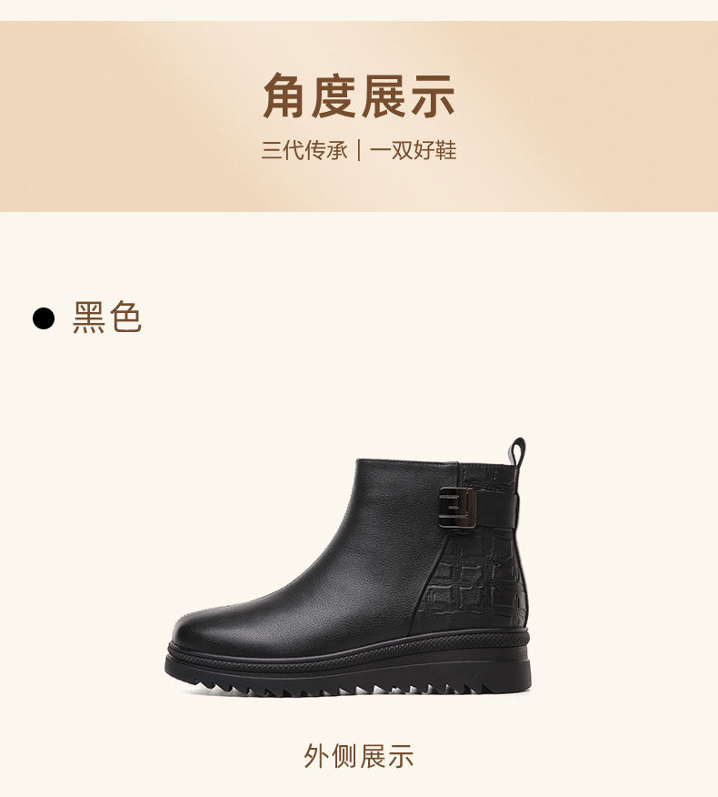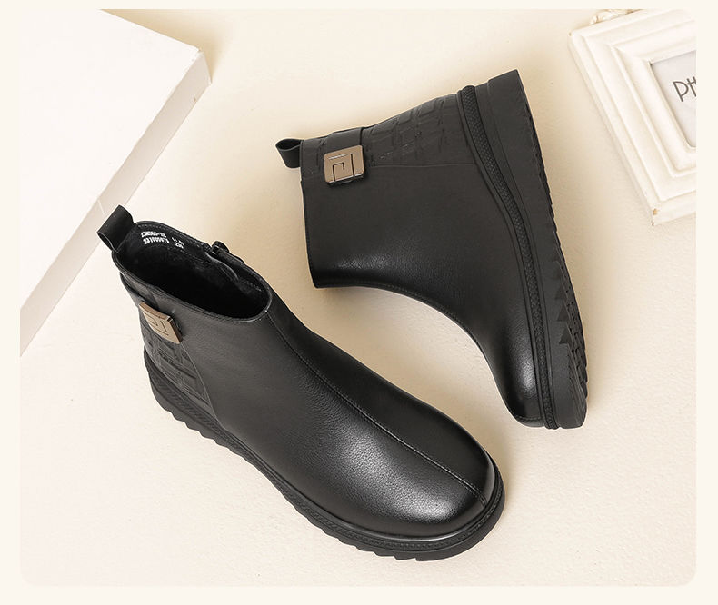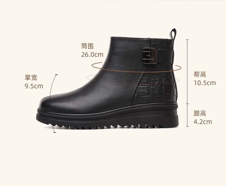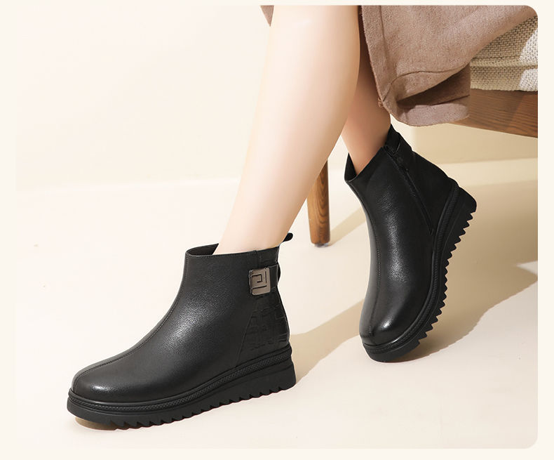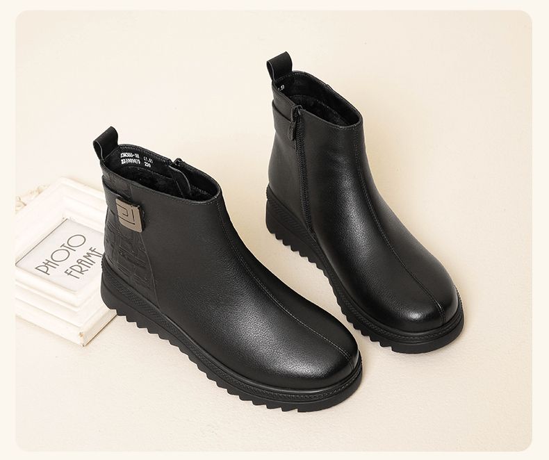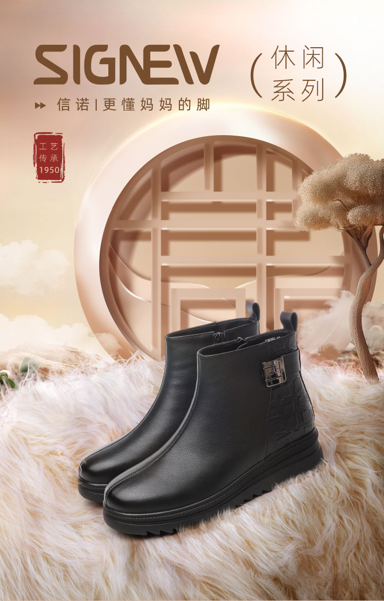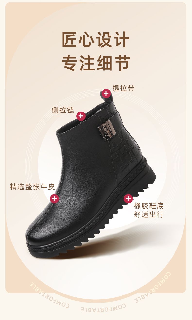 信诺东北加厚保暖妈妈棉鞋冬季防滑平底真皮短靴中老年厚底女皮鞋23M386-1H