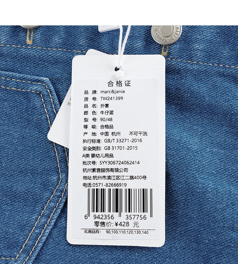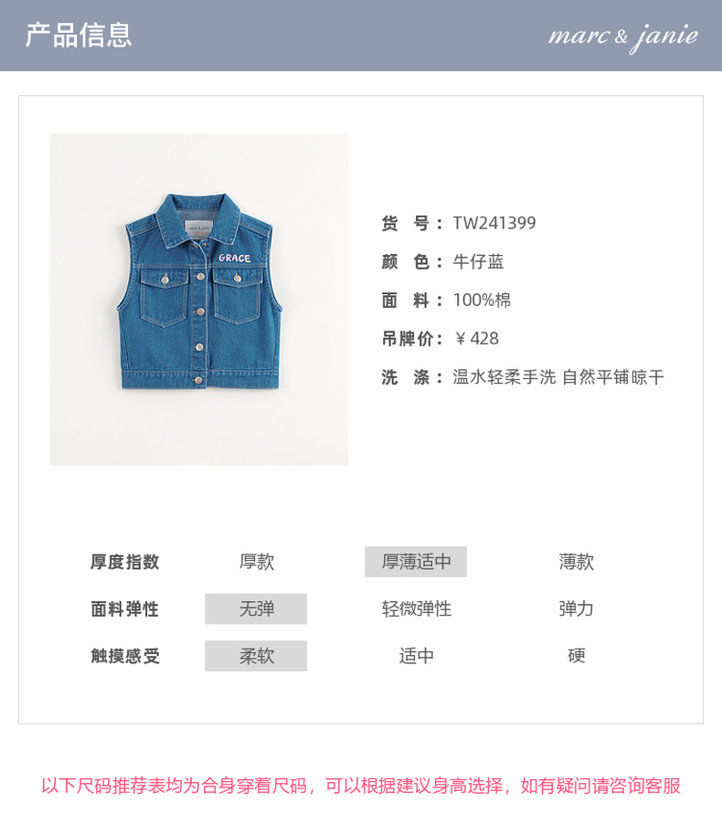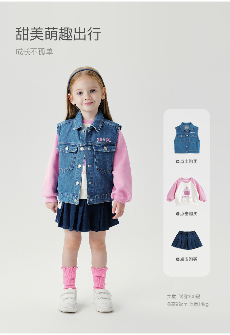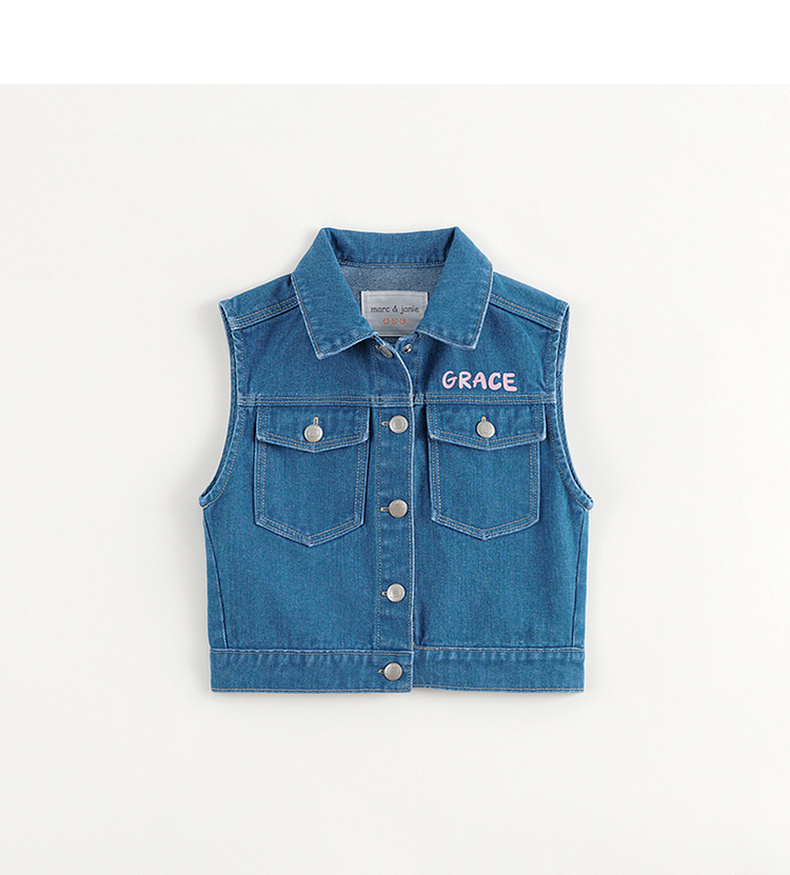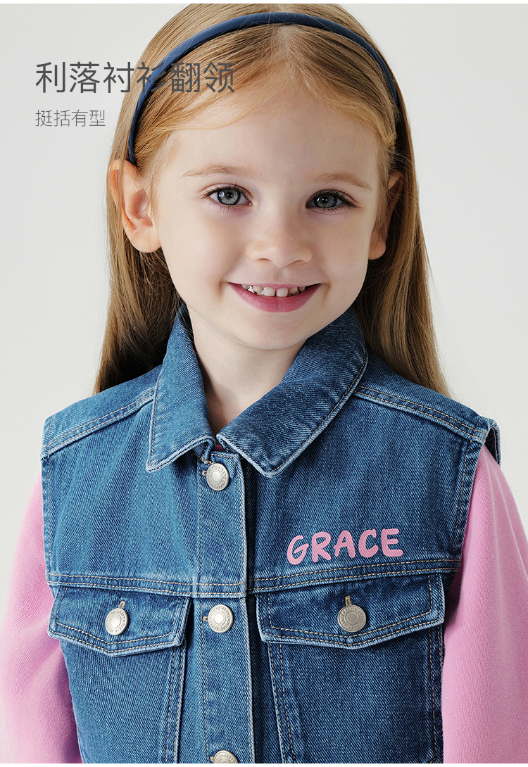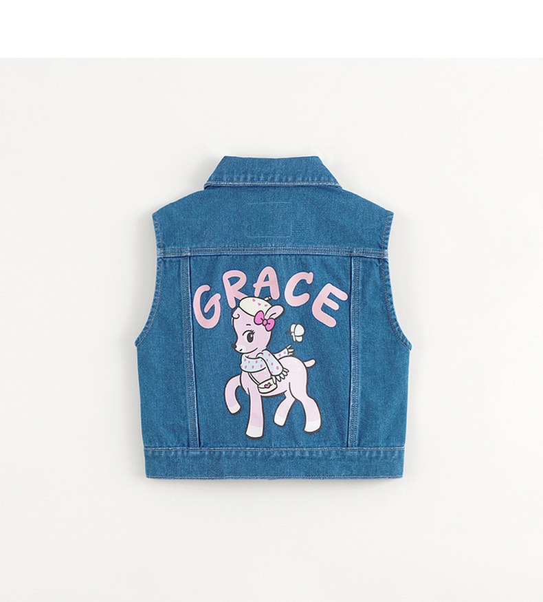 马克珍妮女童可爱小鹿牛仔马甲儿童背心夹克2024年秋装新款241399