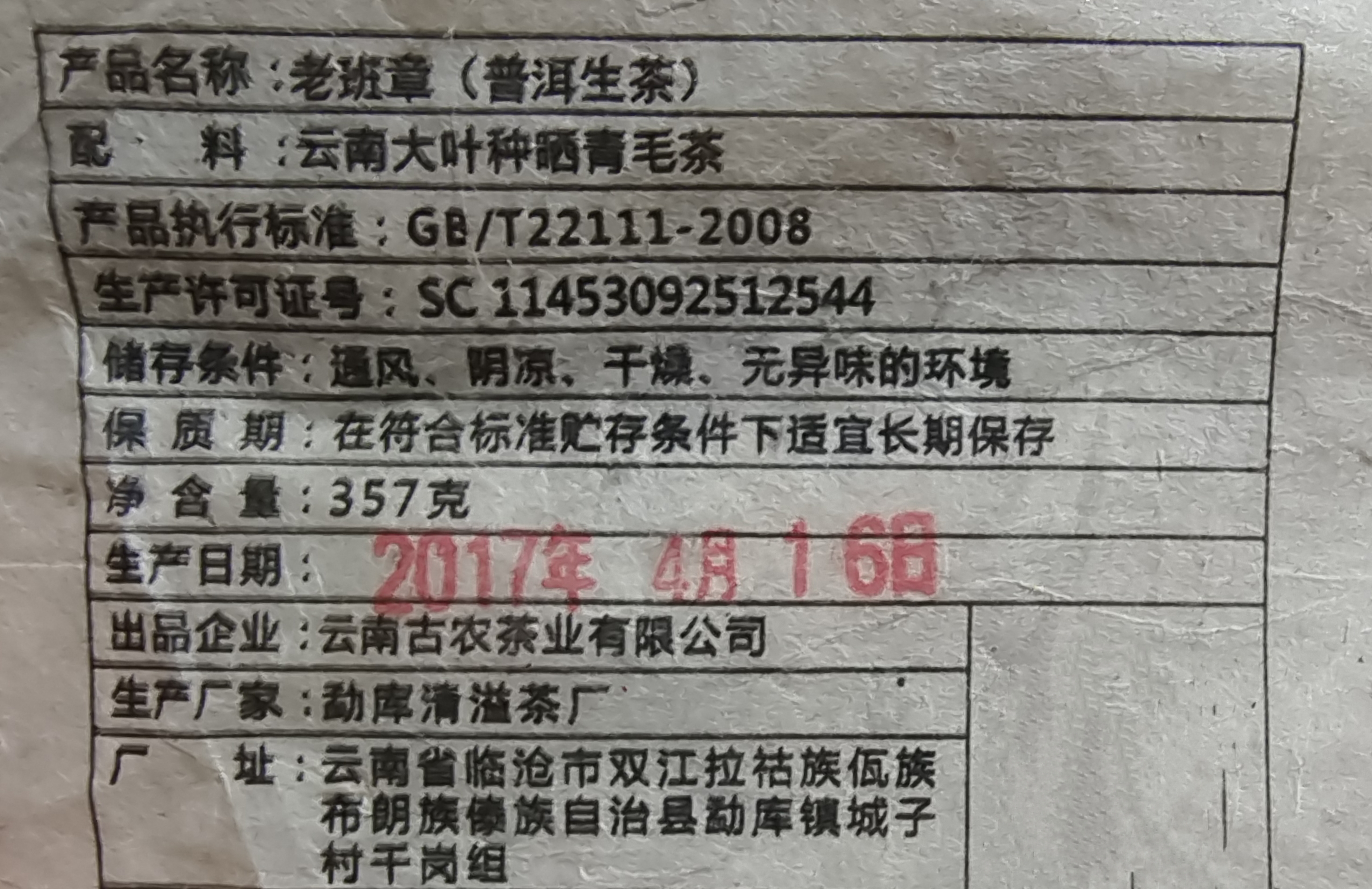彩农茶|老班章2017头春古树纯料青饼