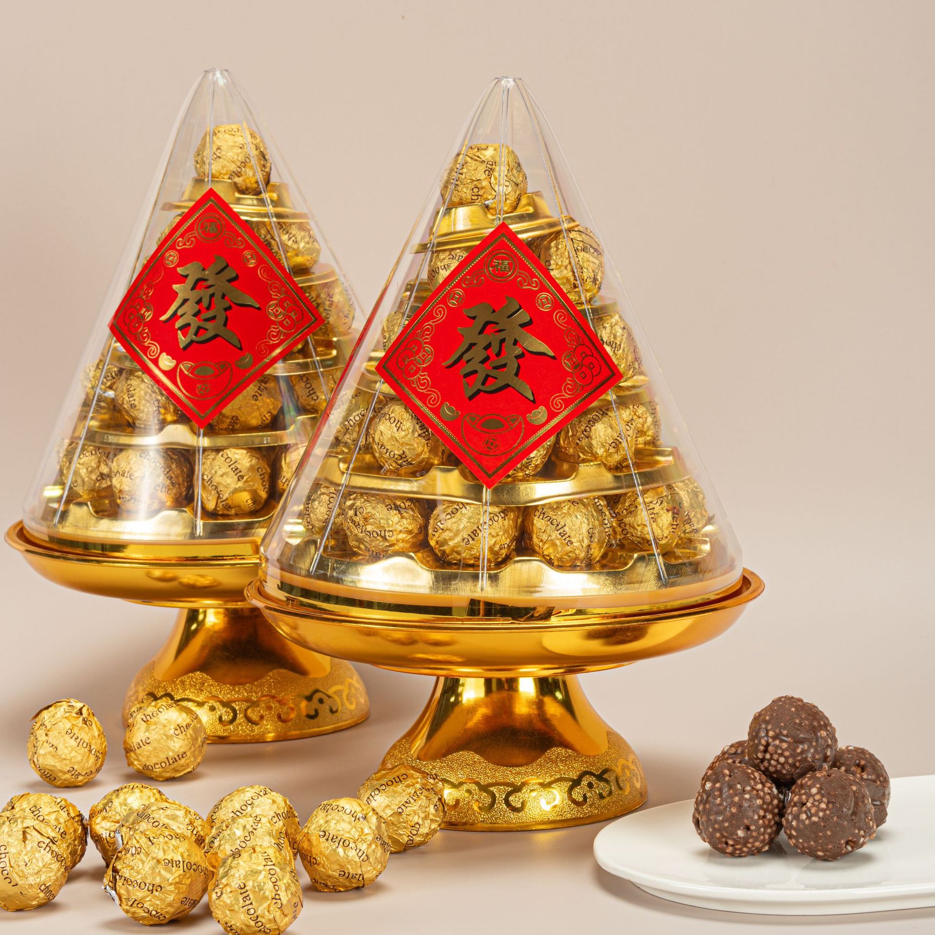 【送礼佳品❗️巧克力金字塔】香醇浓郁,乐享美味,香醇可口,满足您的味蕾!招财进宝节日贡品发财金沙球夹心巧克力拜财神礼中秋节礼物L-d