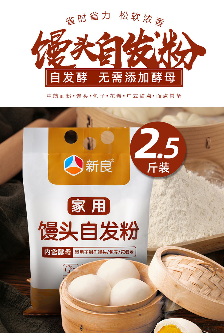 新良自发粉1.25kg中筋面粉家用包子饺子馒头免发酵自发面粉小麦粉