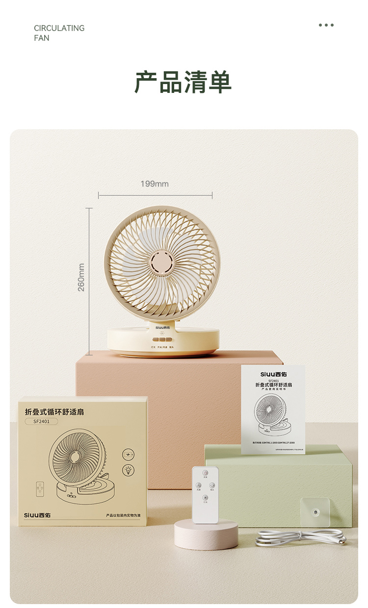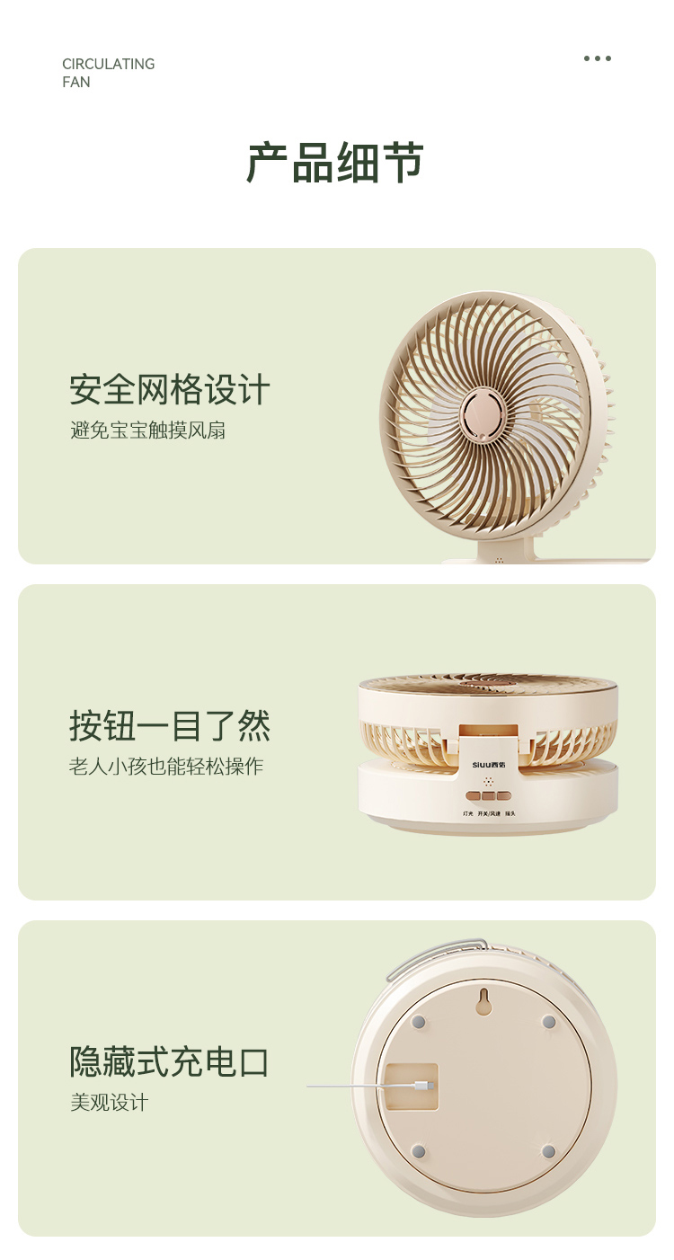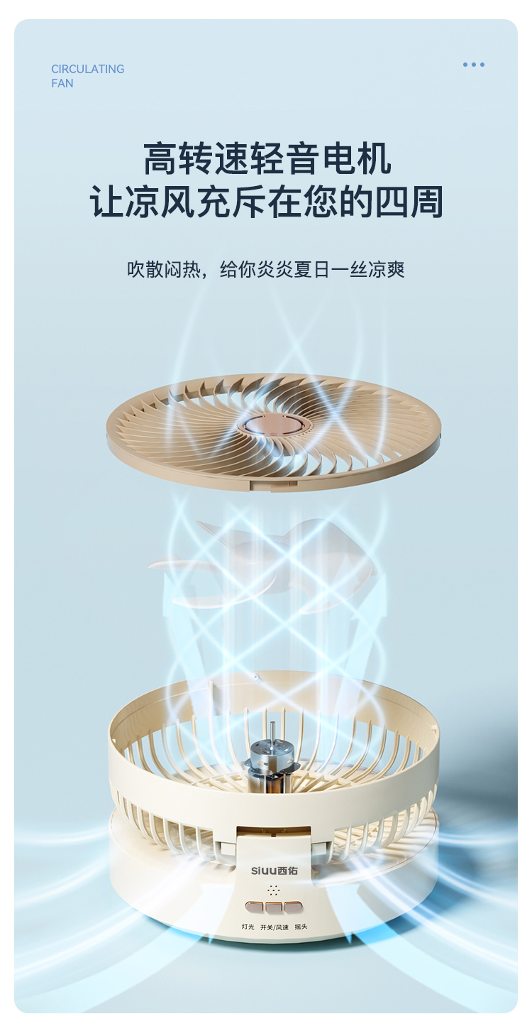 西佑悬浮折叠免打孔氛围灯空气循环扇