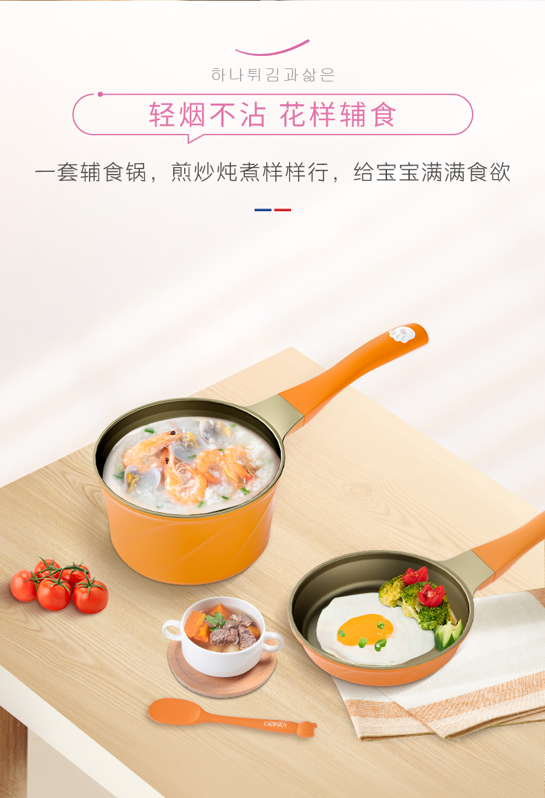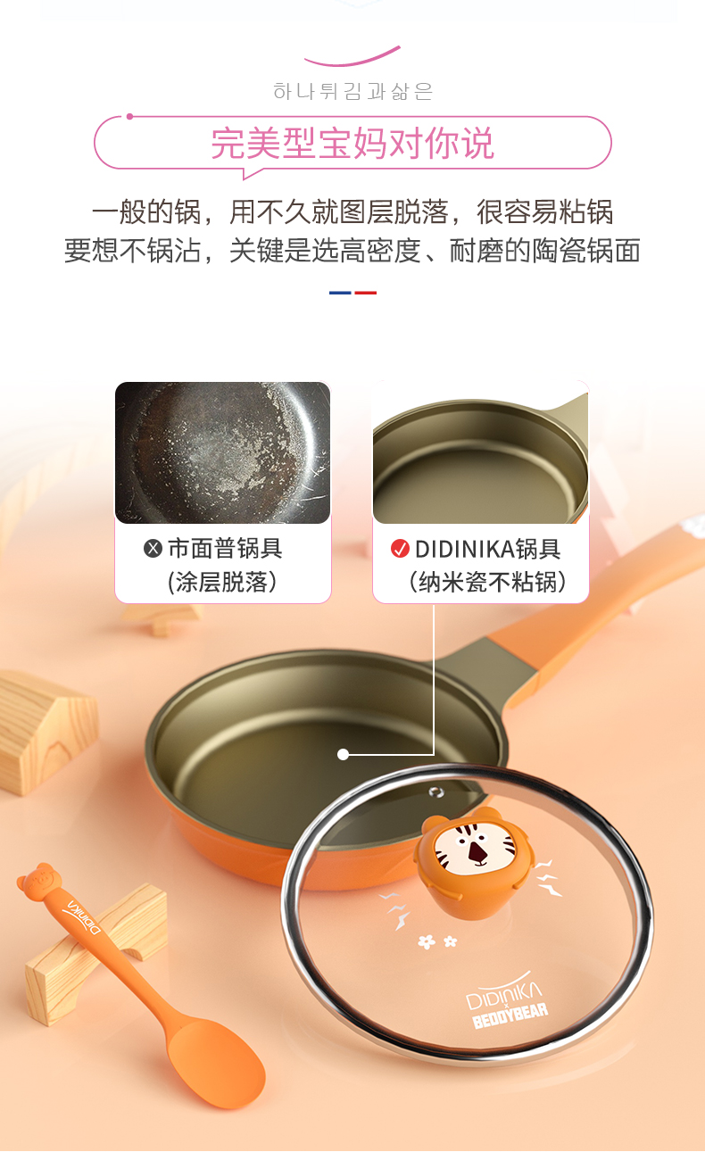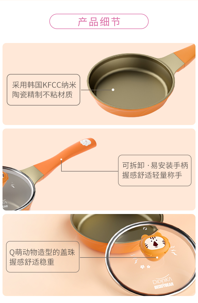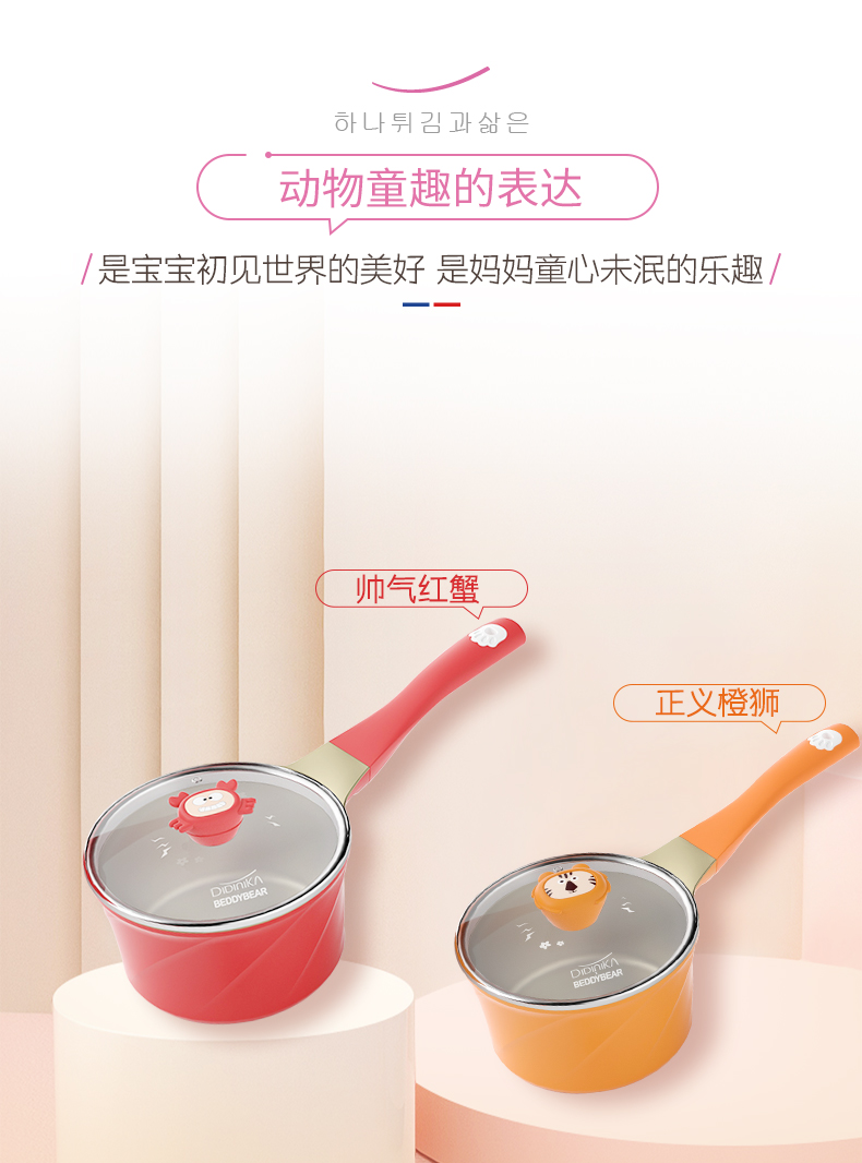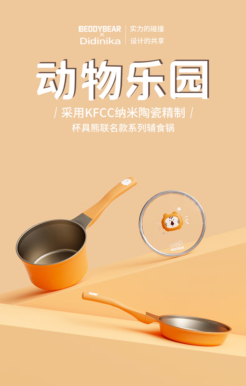 Didinika 迪迪尼卡乖乖熊宝宝辅食锅婴儿奶锅18cm小锅平底汤锅麦饭石不粘锅煮泡面热牛奶锅(奶锅+煎锅+硅胶勺子)