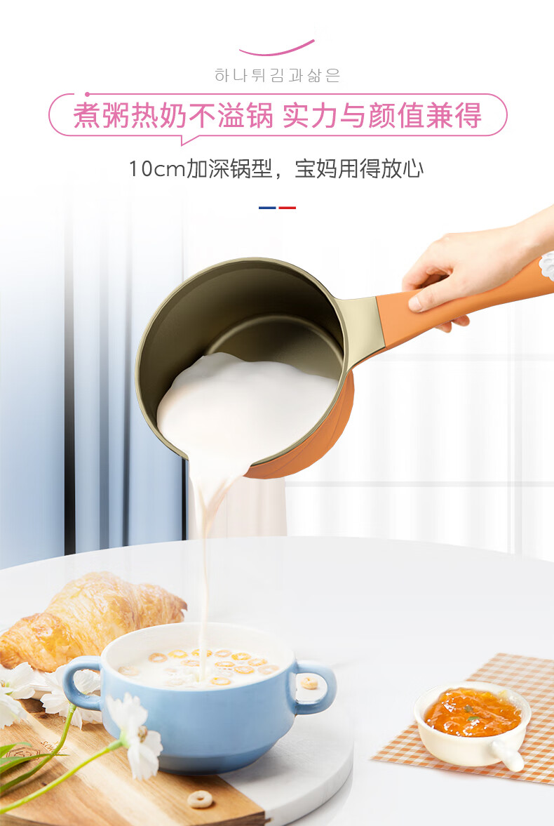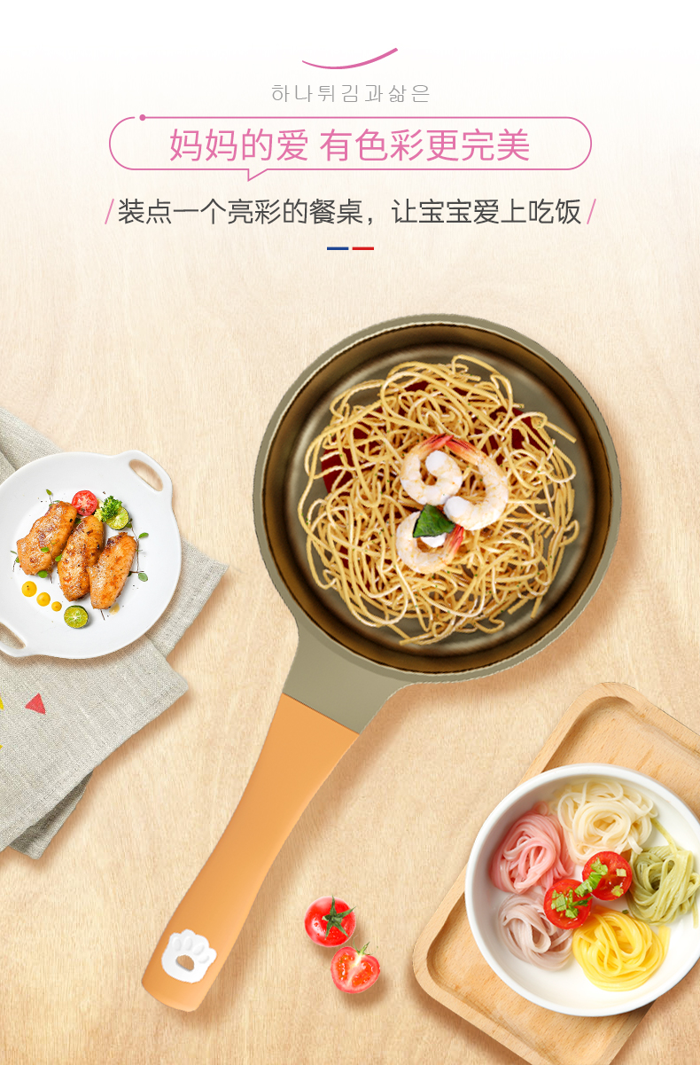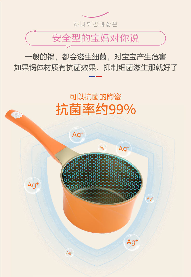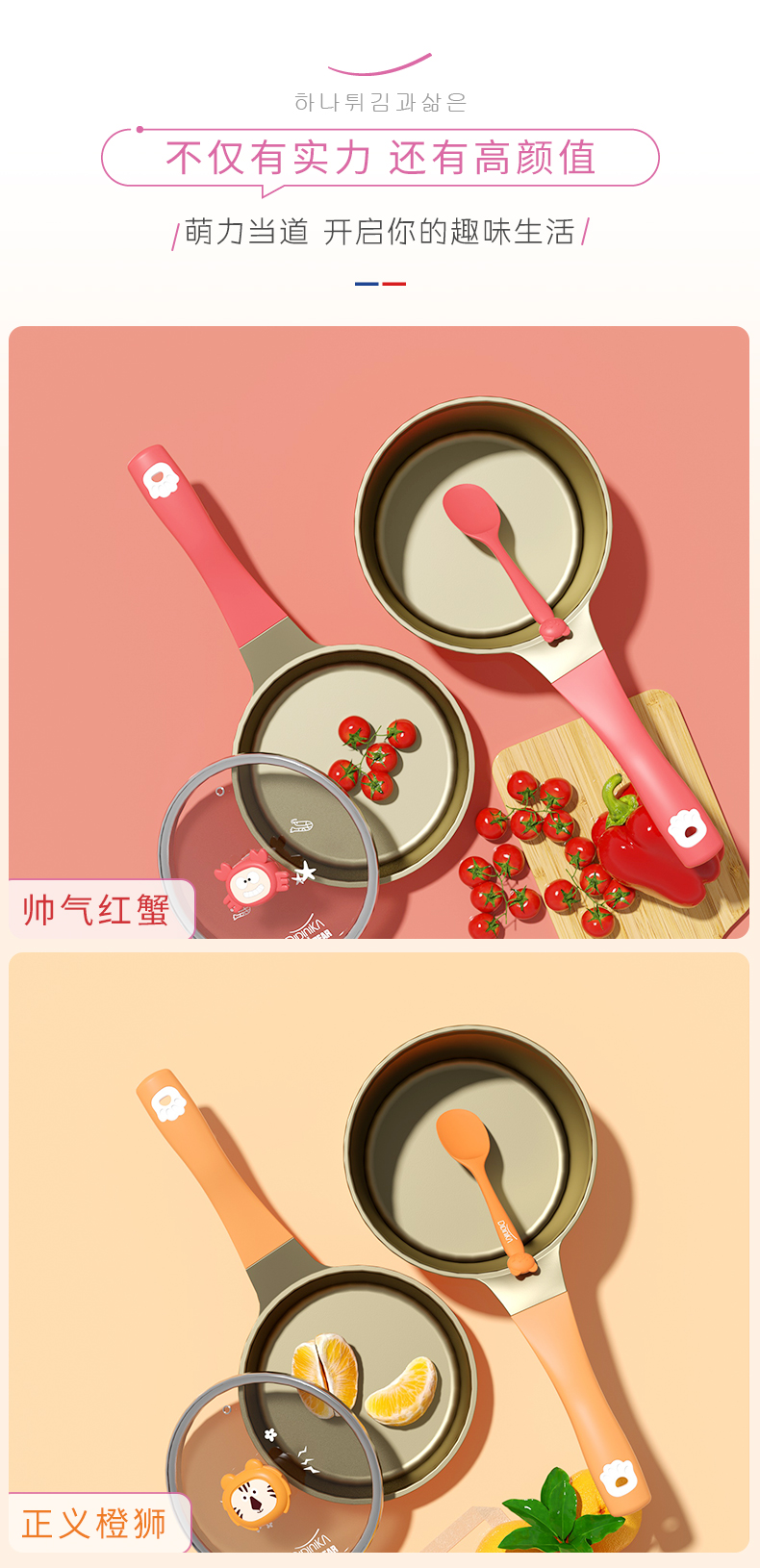 Didinika 迪迪尼卡乖乖熊宝宝辅食锅婴儿奶锅18cm小锅平底汤锅麦饭石不粘锅煮泡面热牛奶锅(奶锅+煎锅+硅胶勺子)