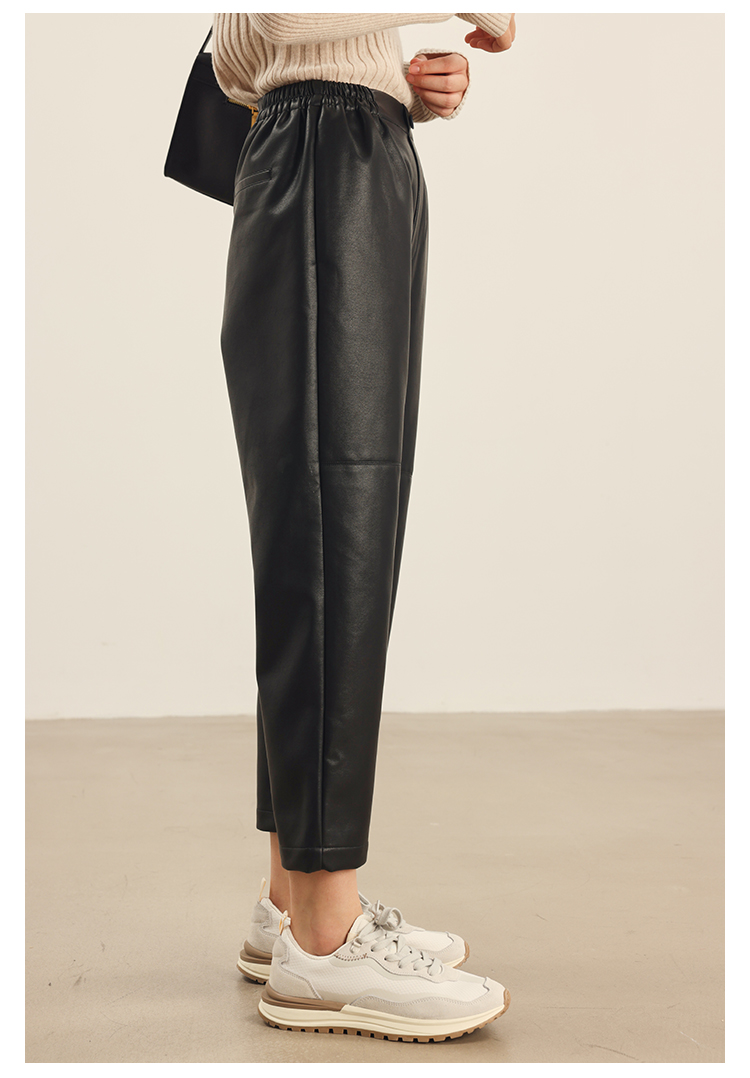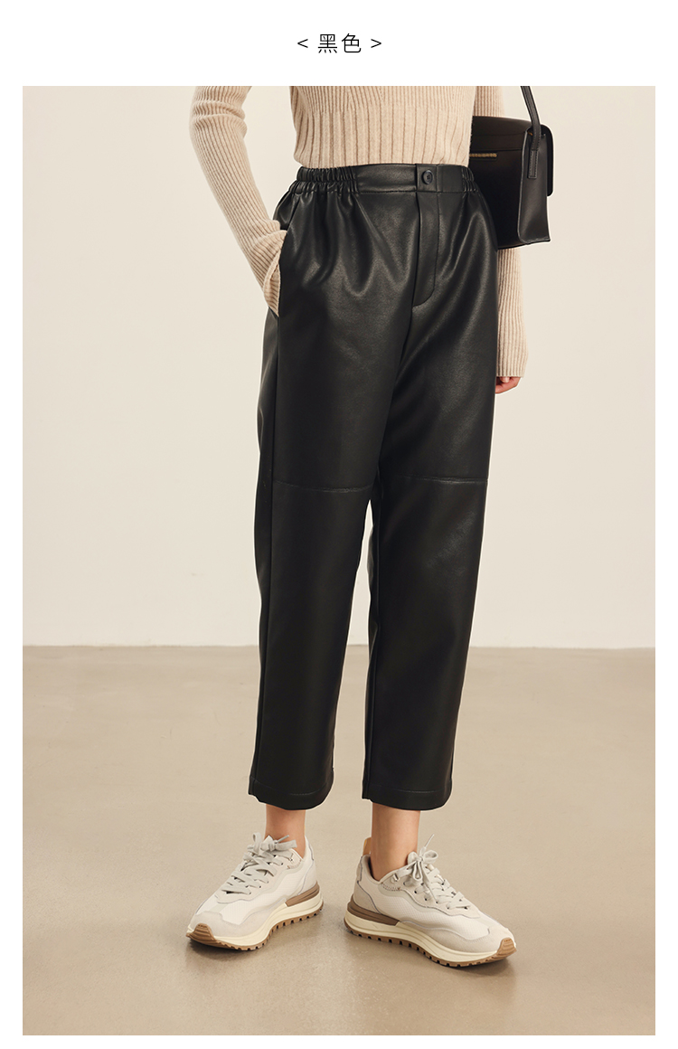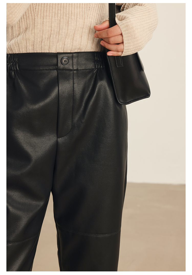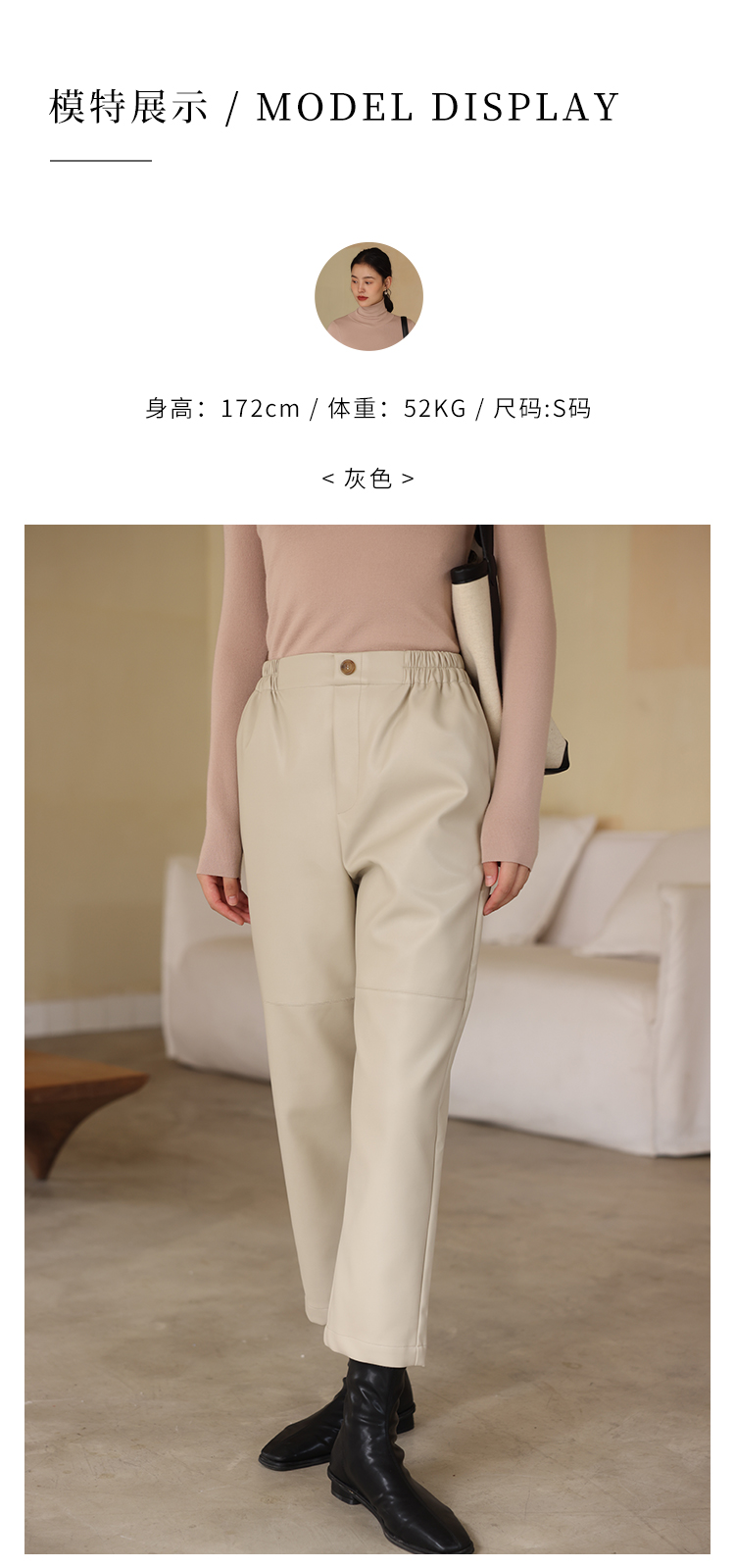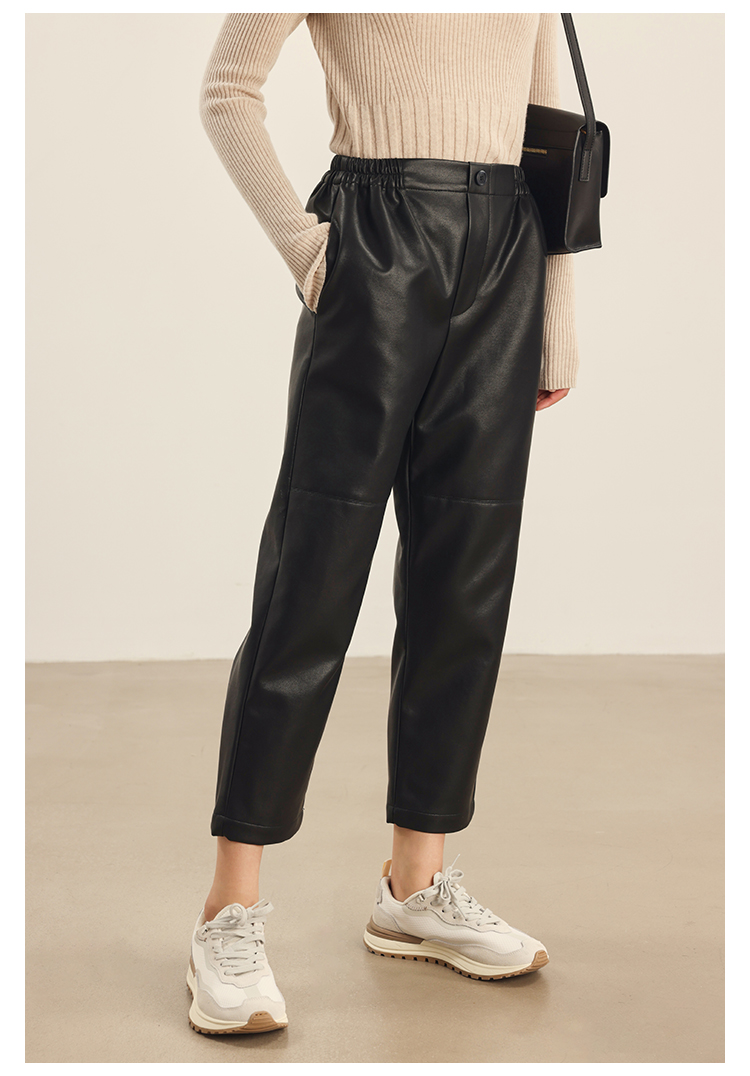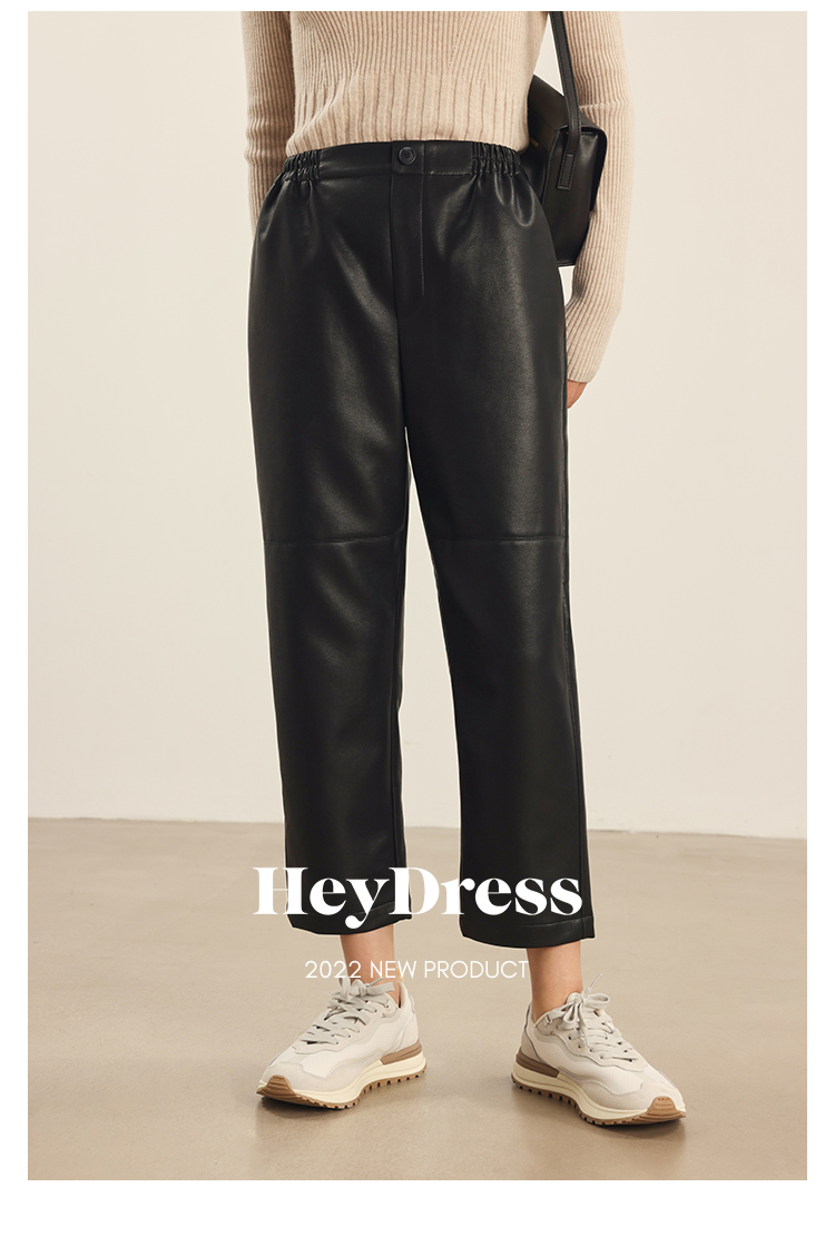 HeyDress皮裤女秋冬高腰直筒休闲显瘦百搭烟管九分裤子