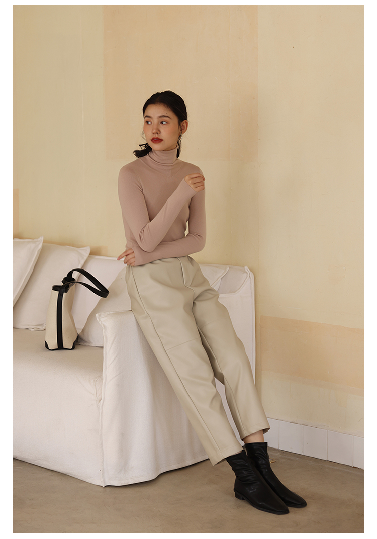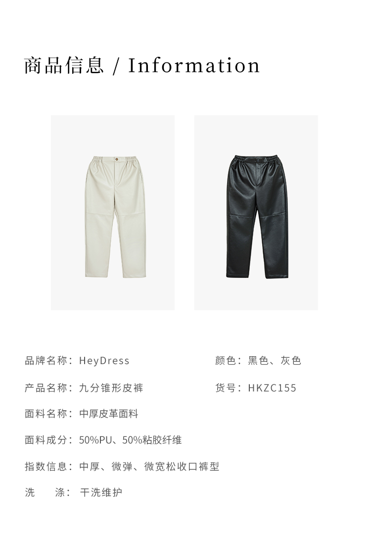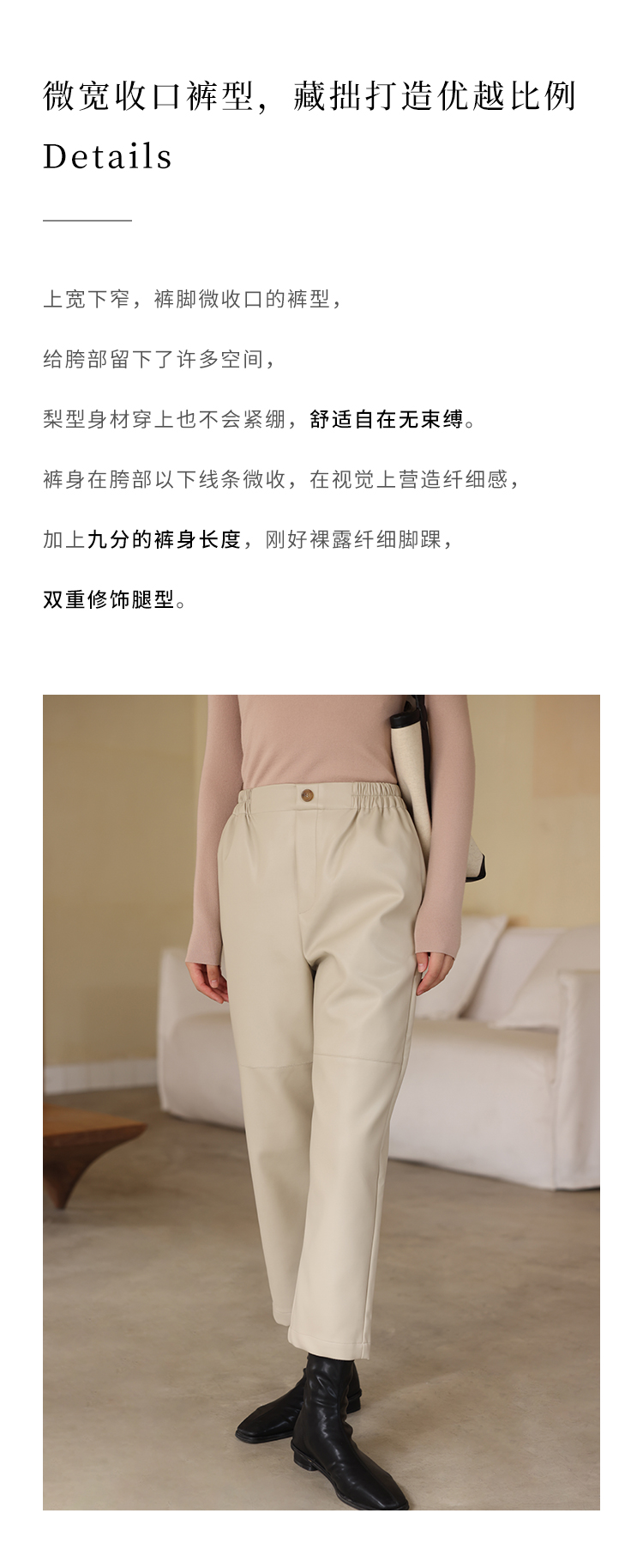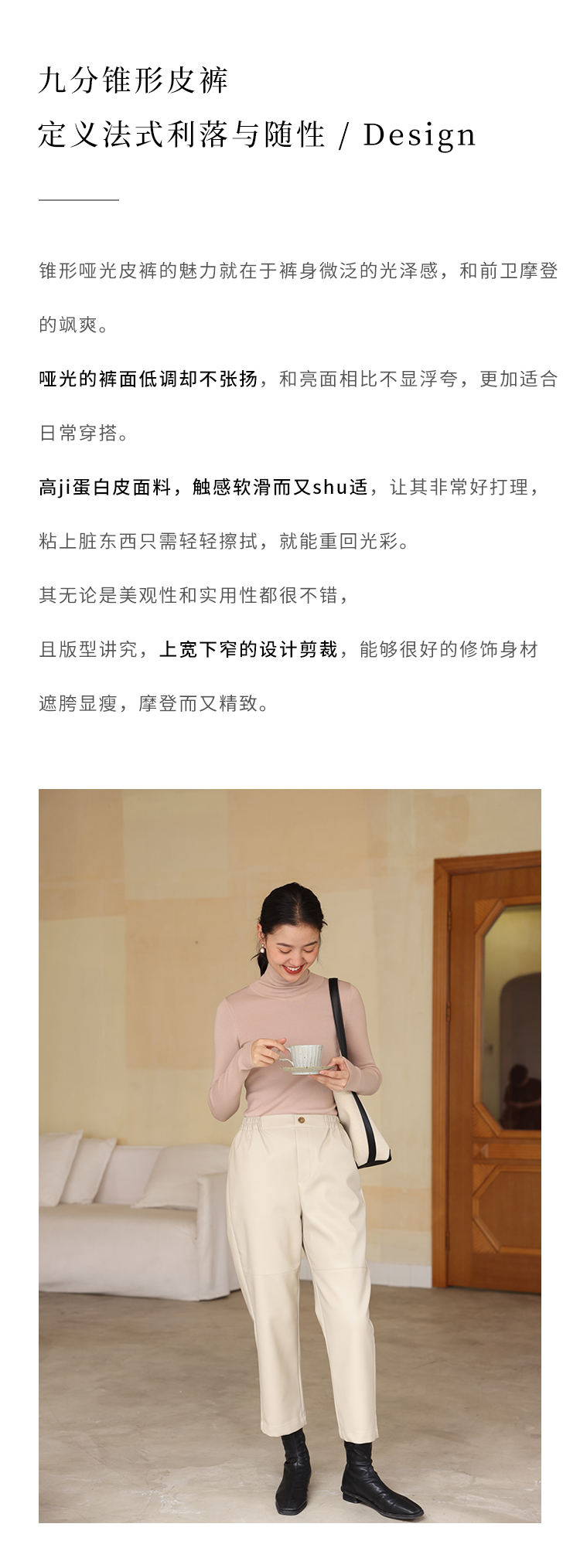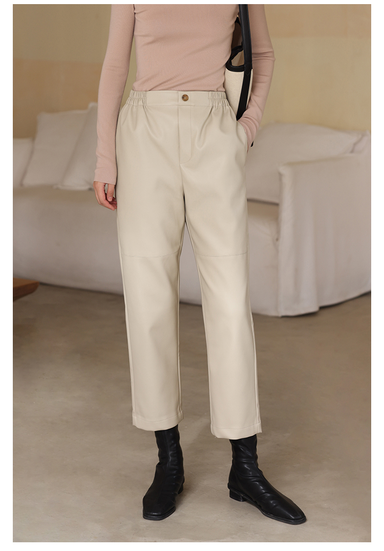 HeyDress皮裤女秋冬高腰直筒休闲显瘦百搭烟管九分裤子