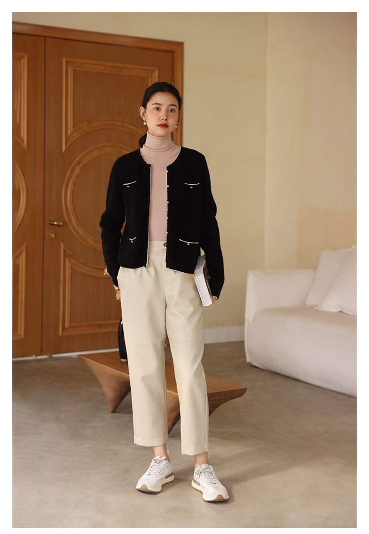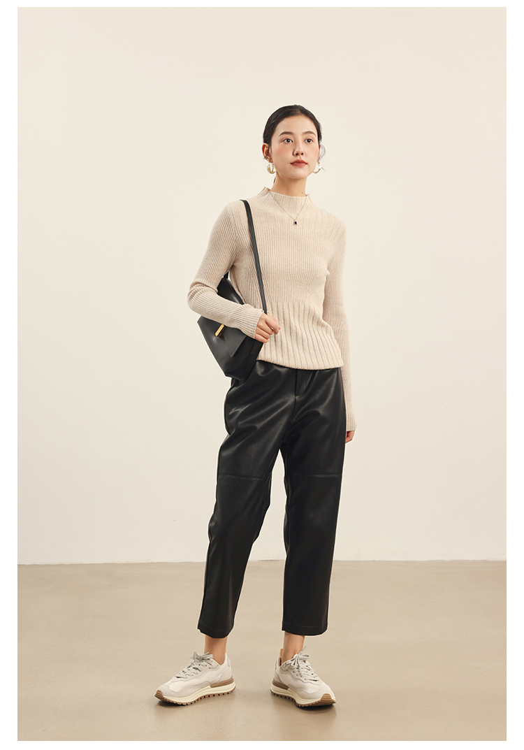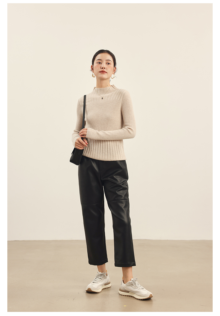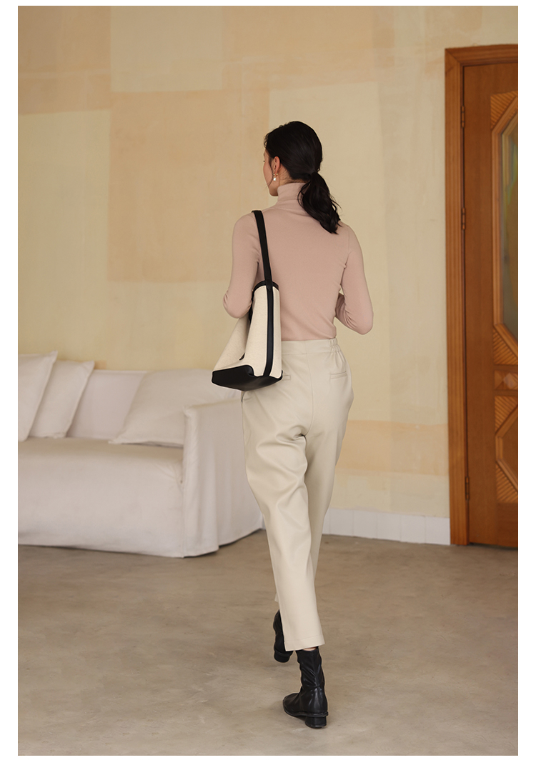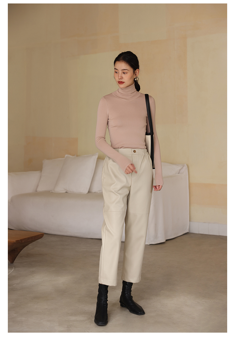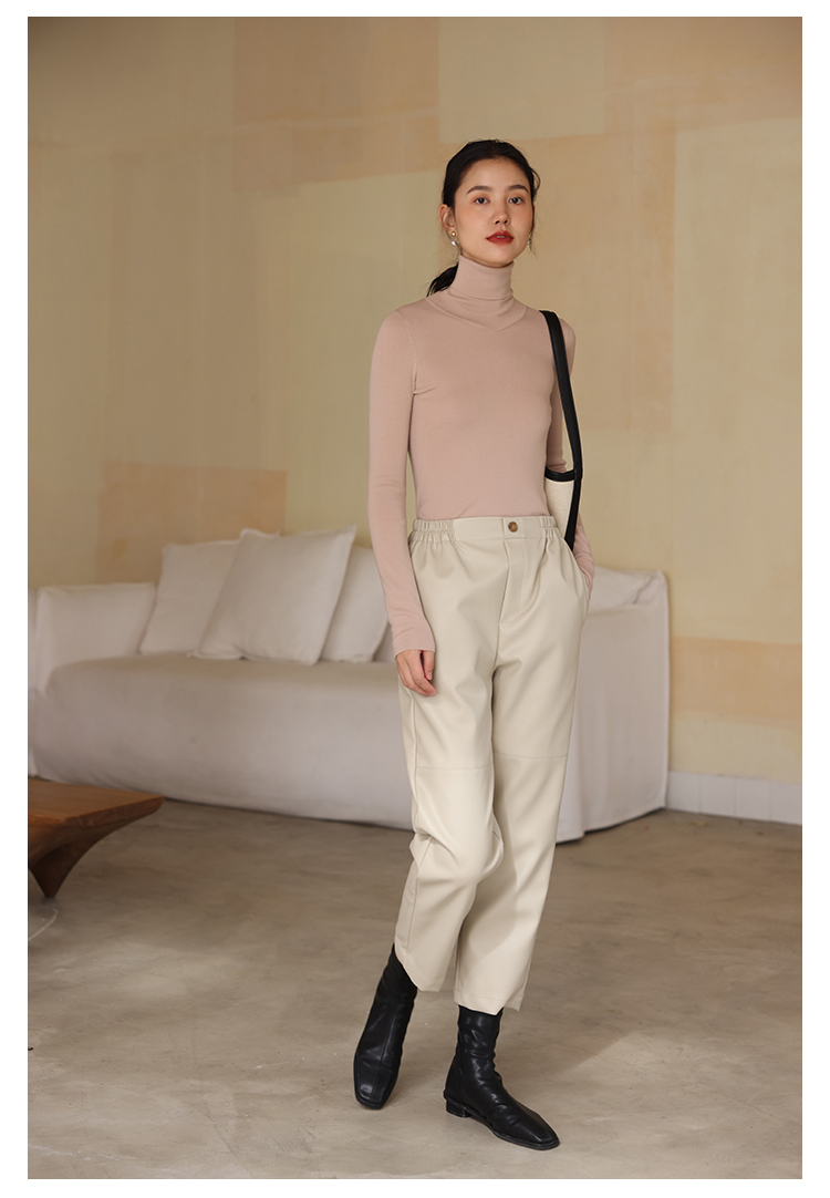 HeyDress皮裤女秋冬高腰直筒休闲显瘦百搭烟管九分裤子