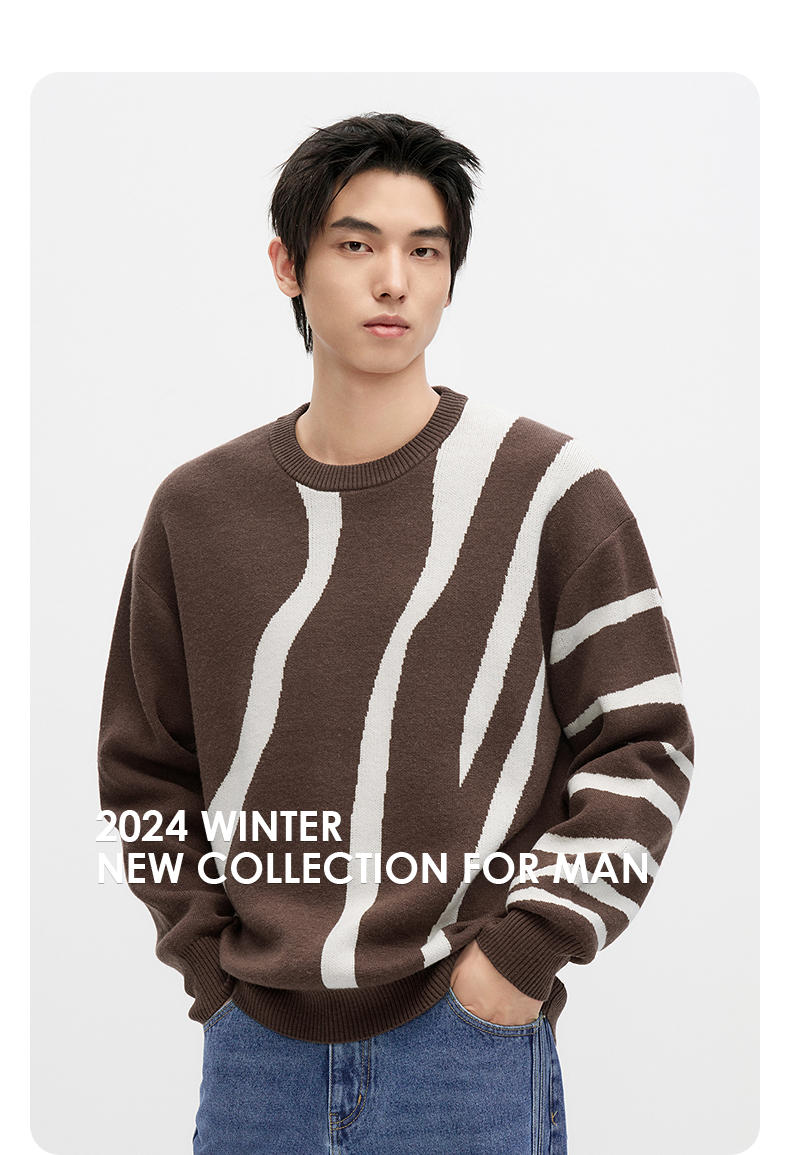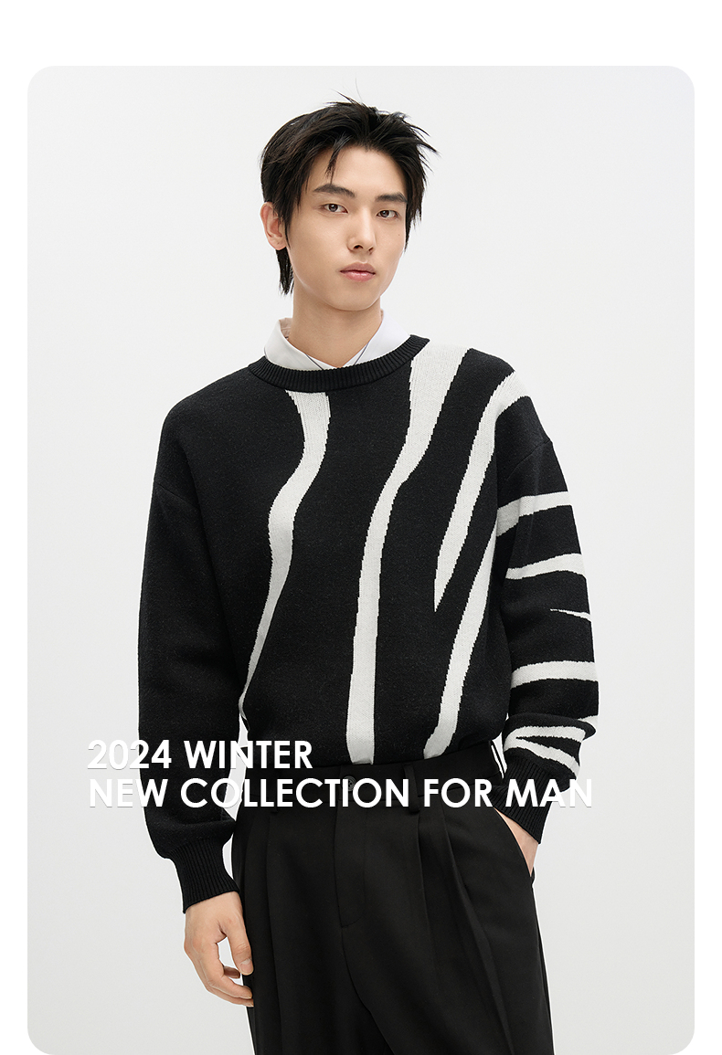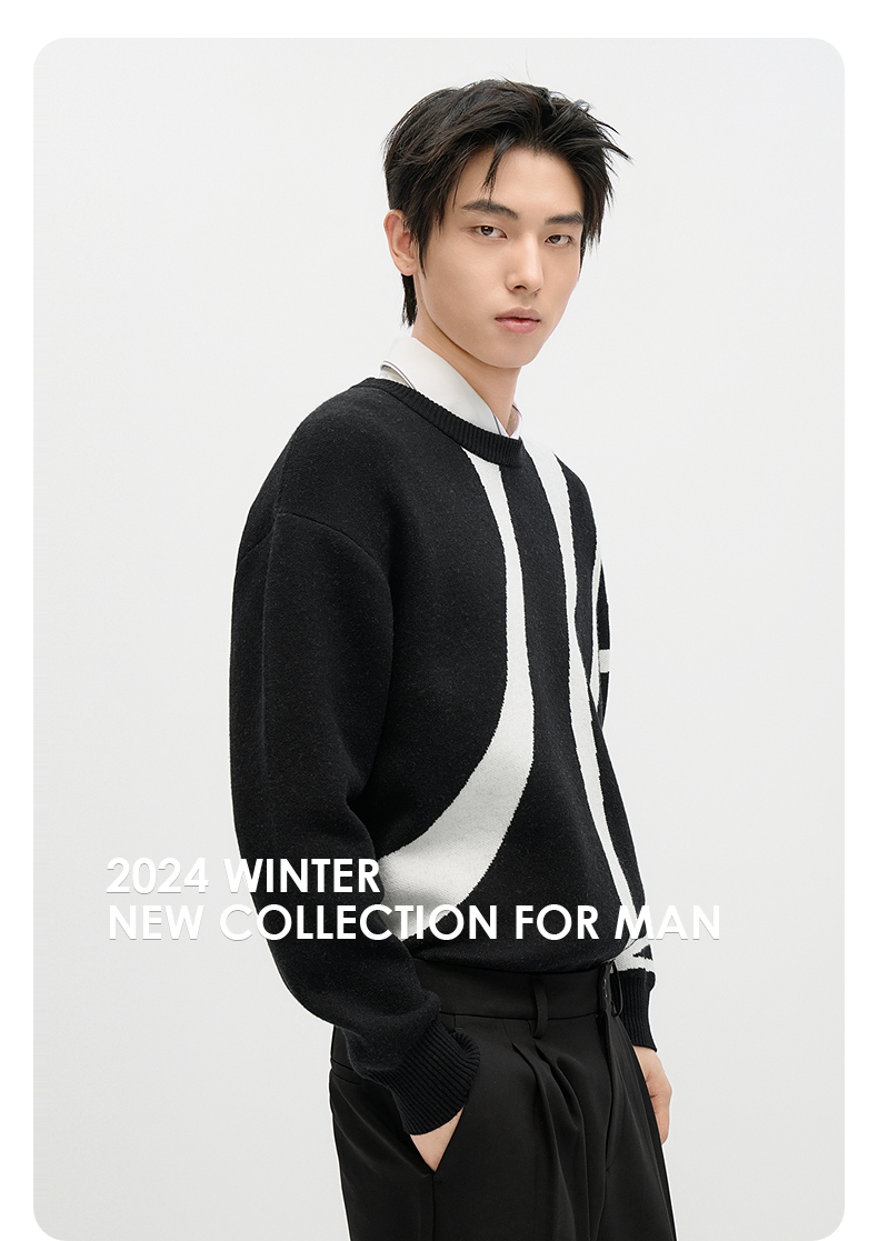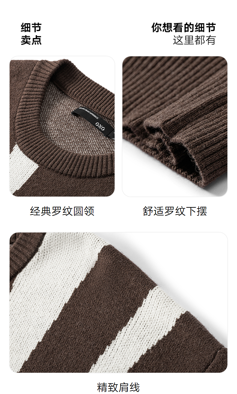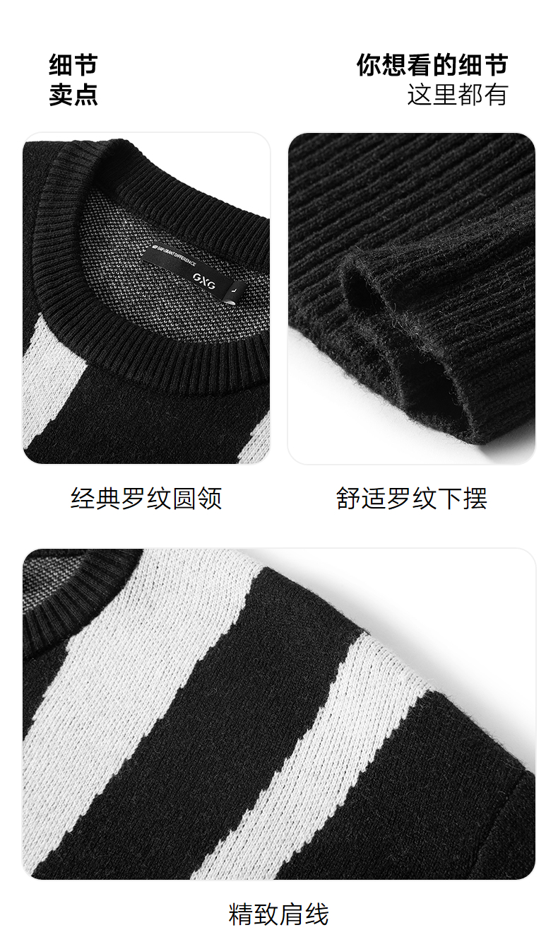 GXG男装 2024秋冬热卖GXG男士撞色提花设计毛衣男百搭毛衫内搭线衫