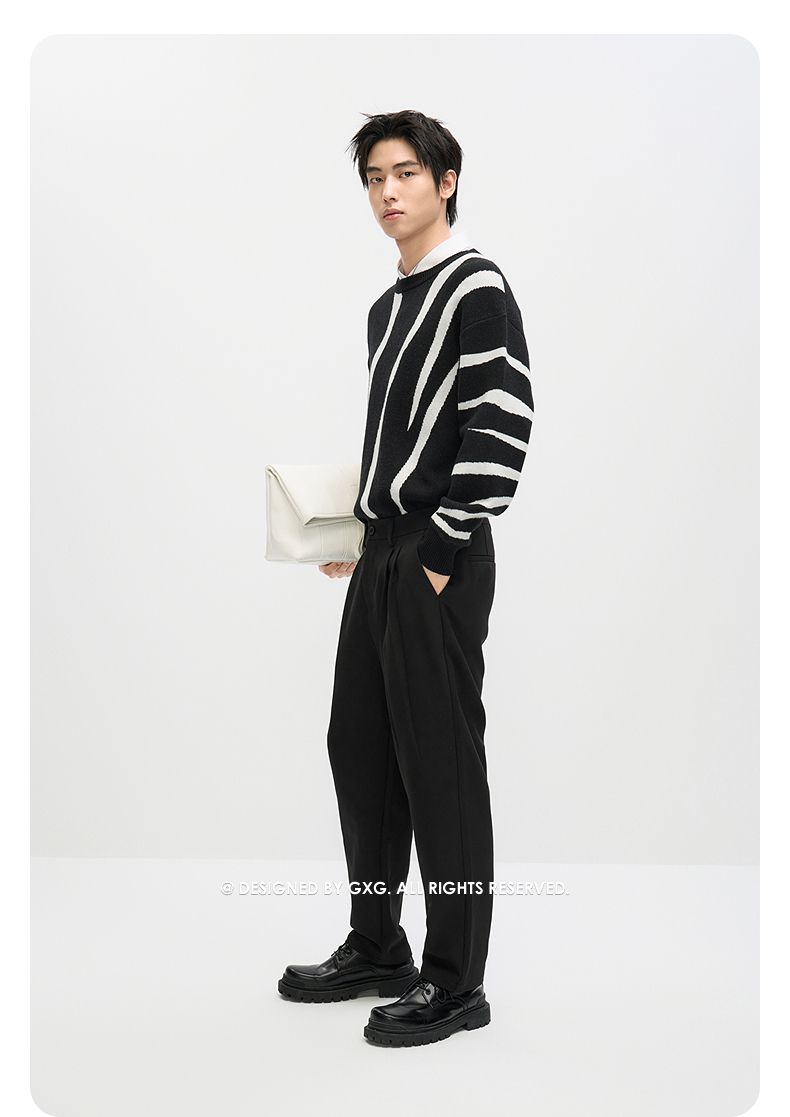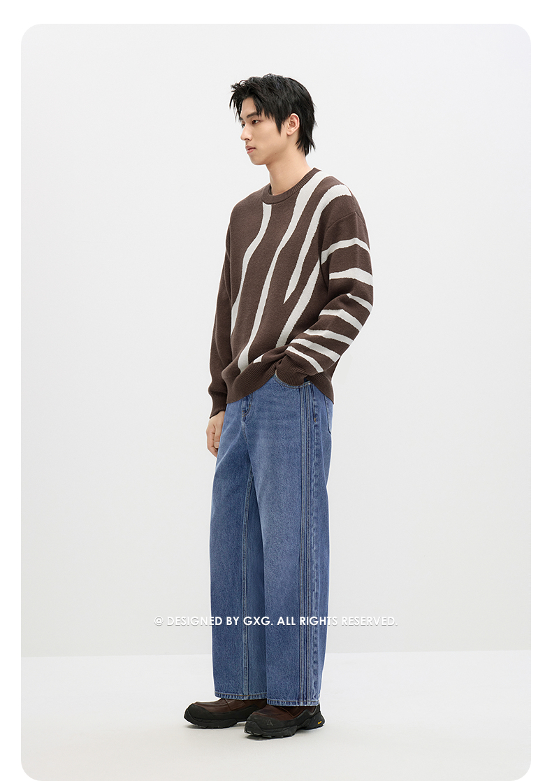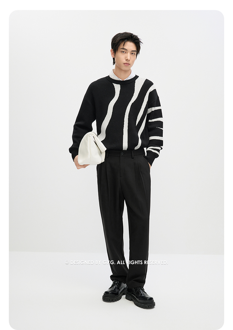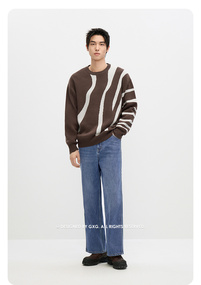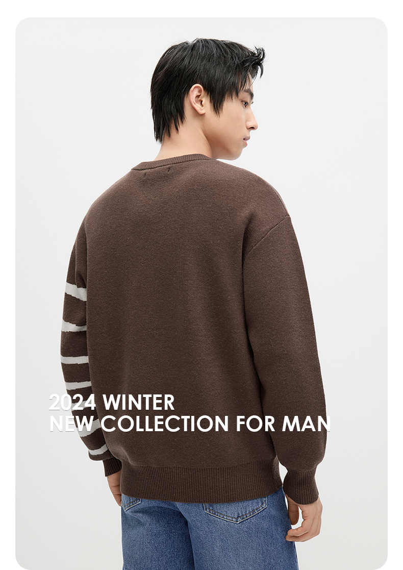 GXG男装 2024秋冬热卖GXG男士撞色提花设计毛衣男百搭毛衫内搭线衫