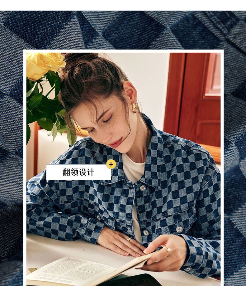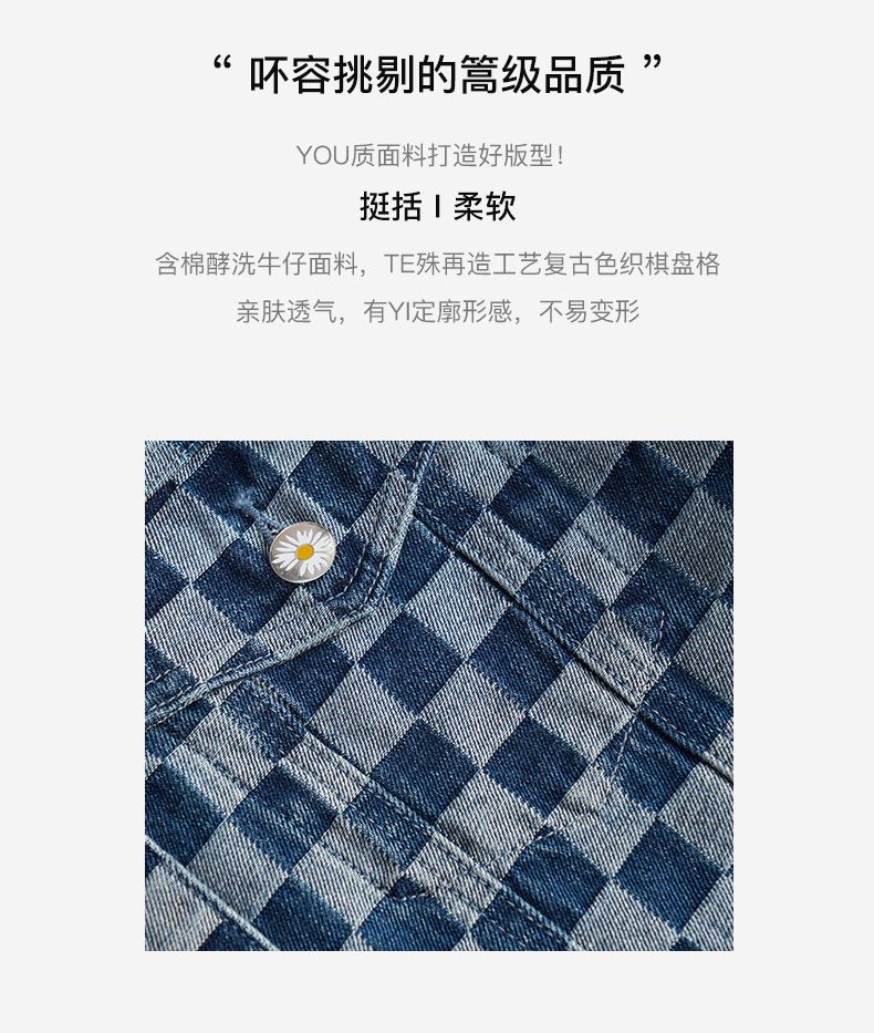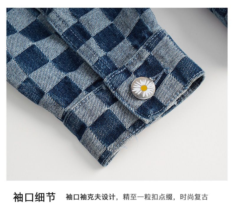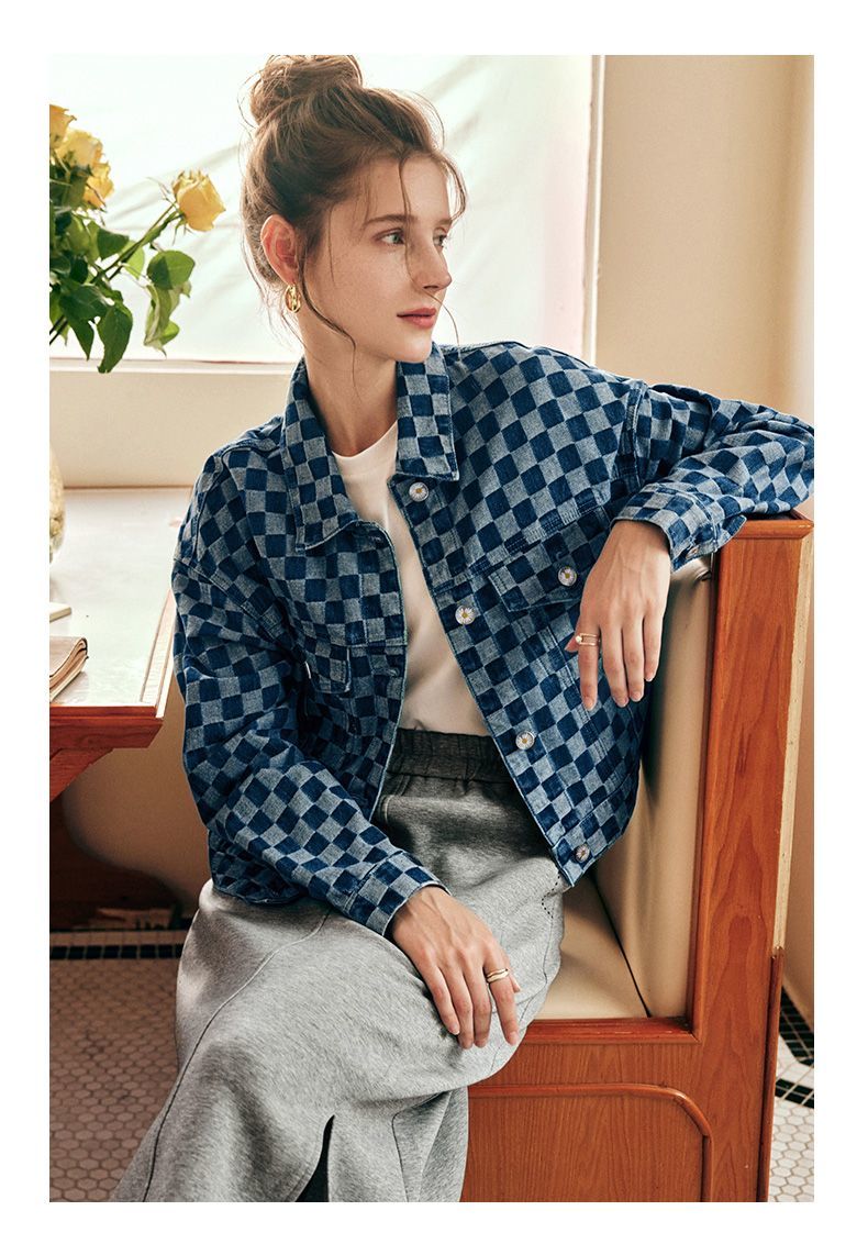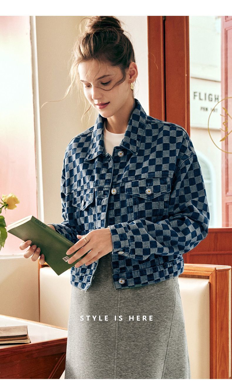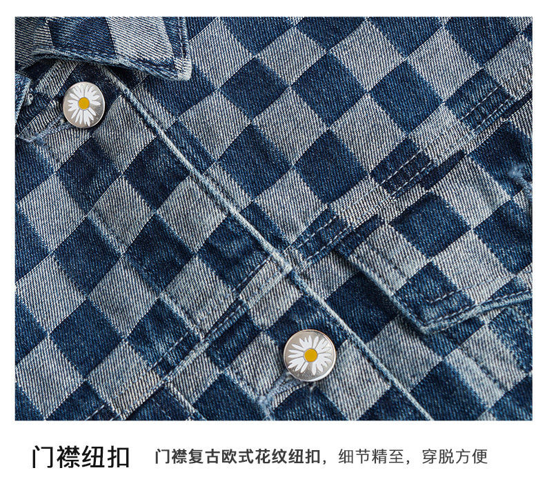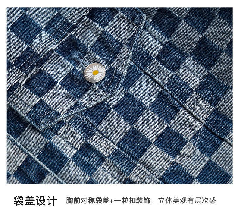 OLrain欧芮儿法式棋盘格牛仔外套女秋季2022年新款复古小个子上衣