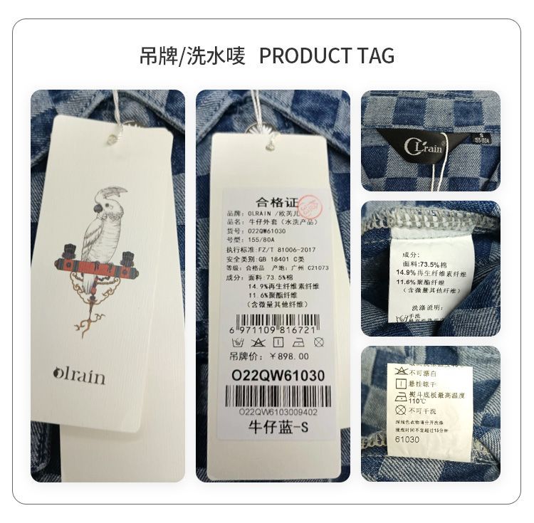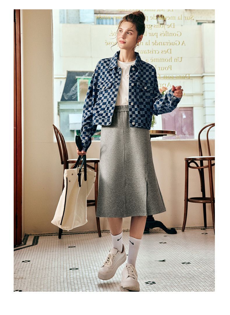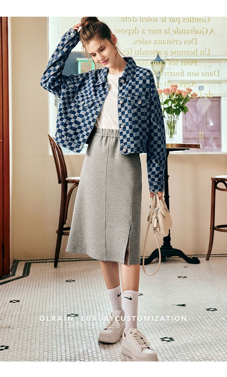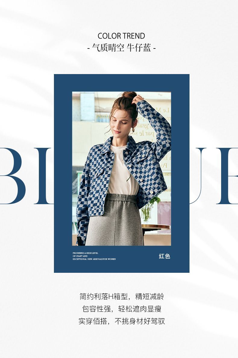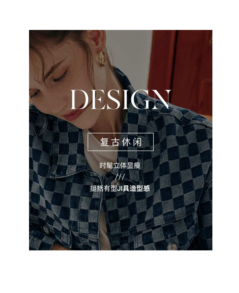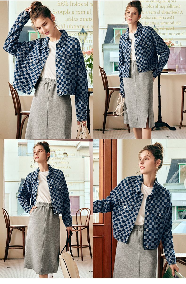 OLrain欧芮儿法式棋盘格牛仔外套女秋季2022年新款复古小个子上衣