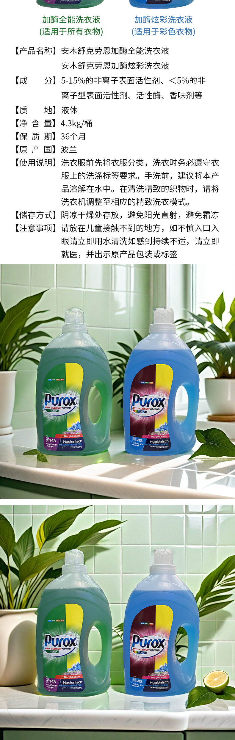 波兰进口安木舒克劳恩加酶全能 |加酶炫彩洗衣液4.3kg