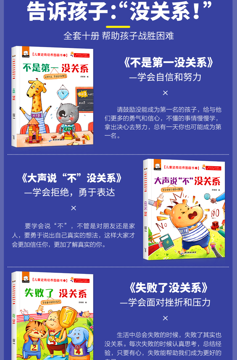 儿童逆商培养图画书(套装共10册)不是第一没有关系+大声说不没关系+犯错没关系+害怕没关系+嫉妒没关系+哭出来没关系+生气没关系+失败了没关系+受批评没关系+一个人没关系