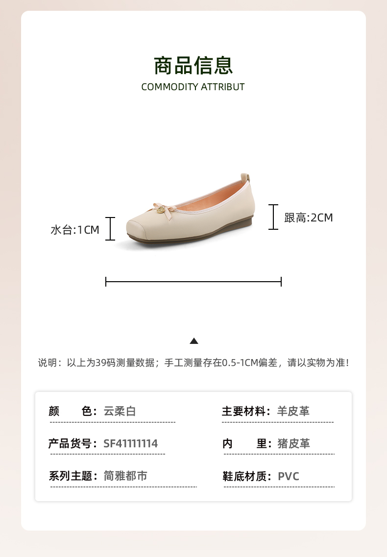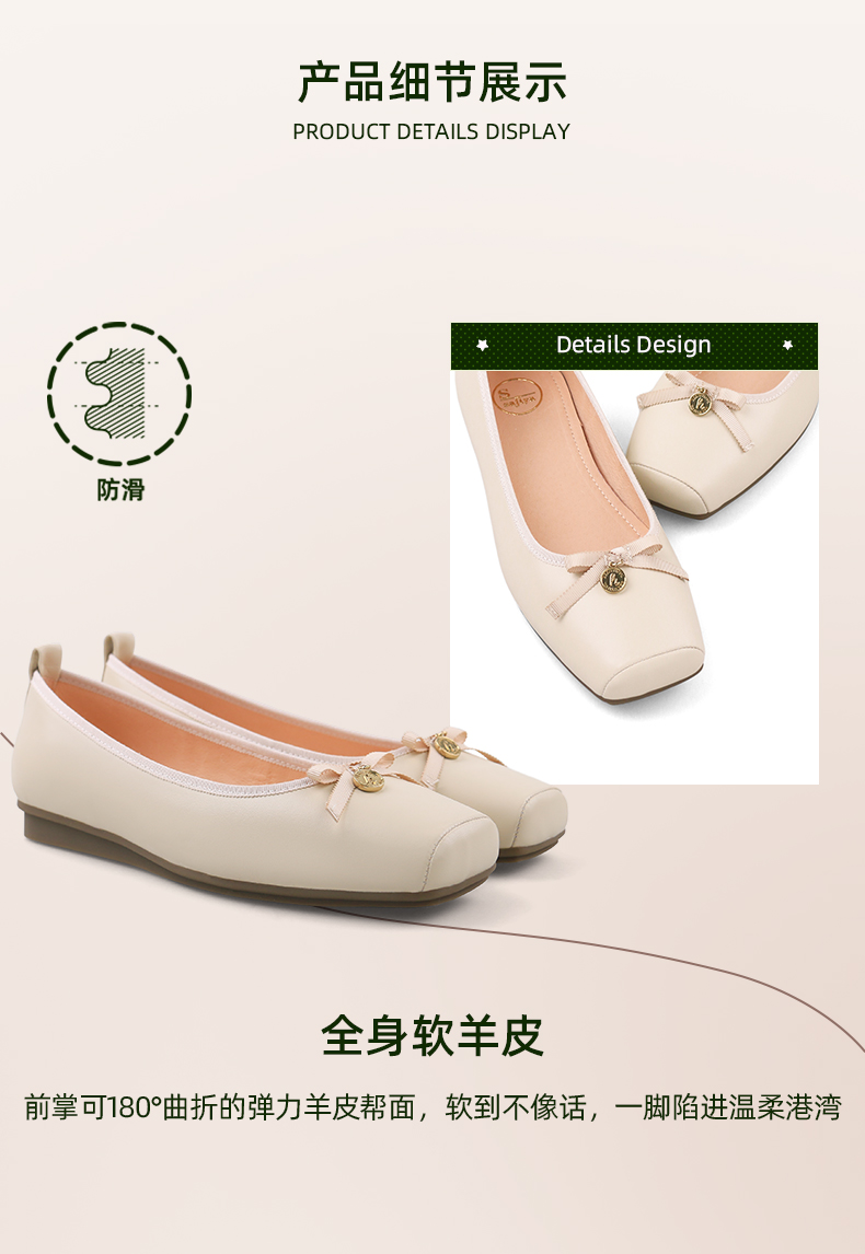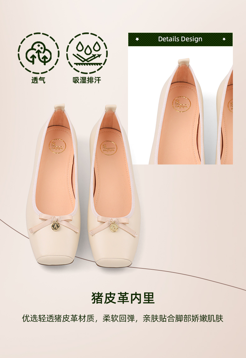 Safiya/索菲娅2024春温柔风气质蝴蝶结方头浅口单鞋 SF41111114