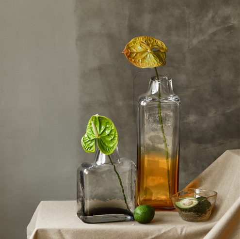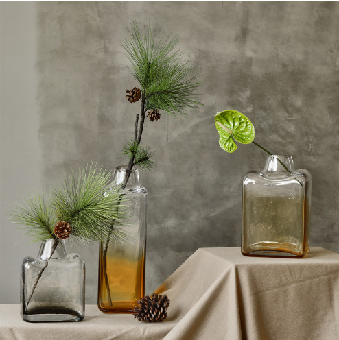 美式乡村客厅不规则小口方形花瓶餐桌渐变玻璃花瓶家居软装饰品