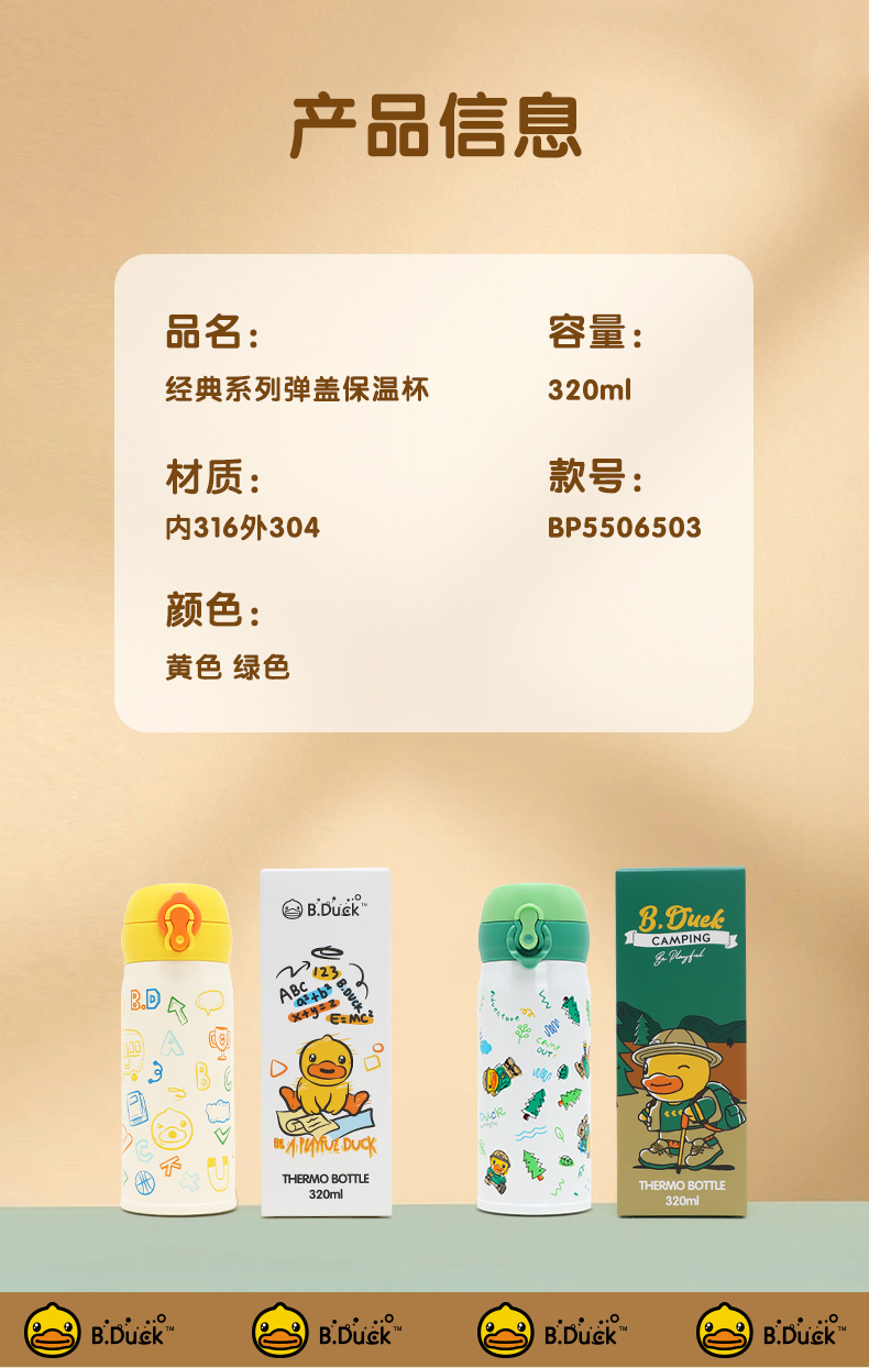 【专柜同款精品】B.DUCK弹盖直饮316不锈钢保温杯320ml