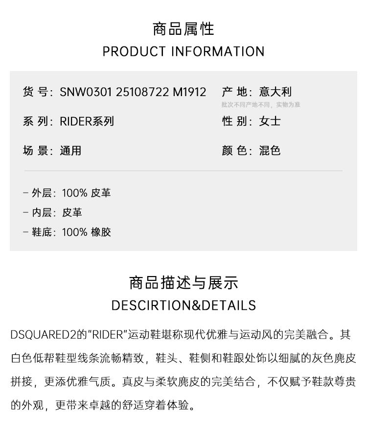 DSQUARED2 女士字母徽标印花“Rider”休闲运动鞋 混色 SNW0301 25108722 M1912