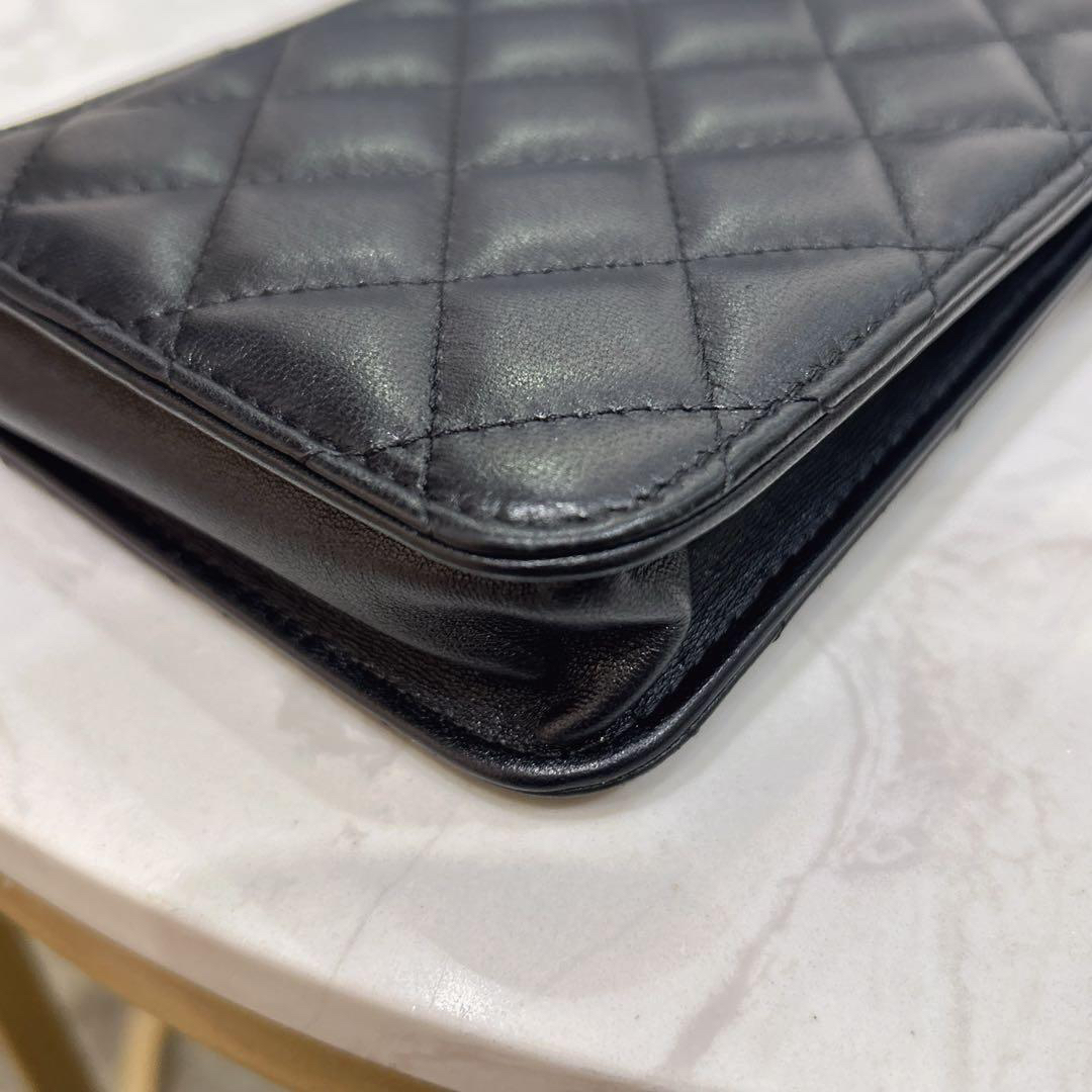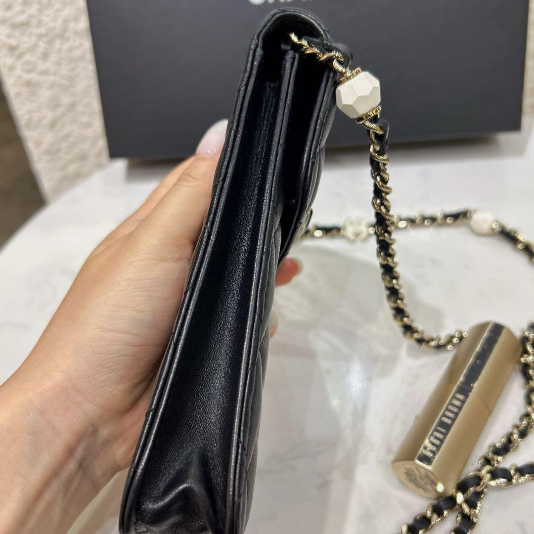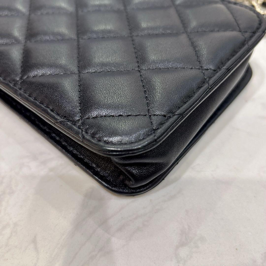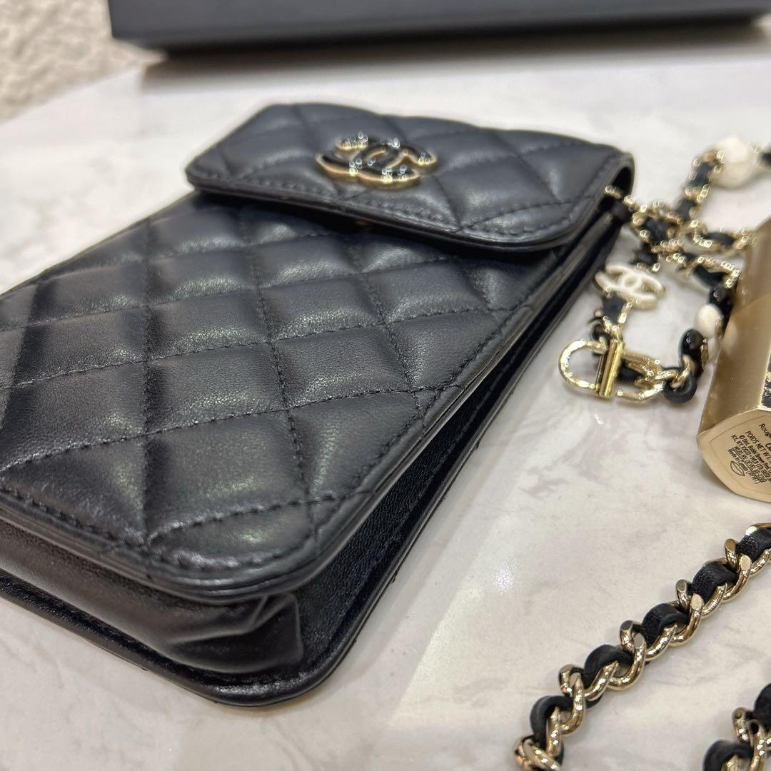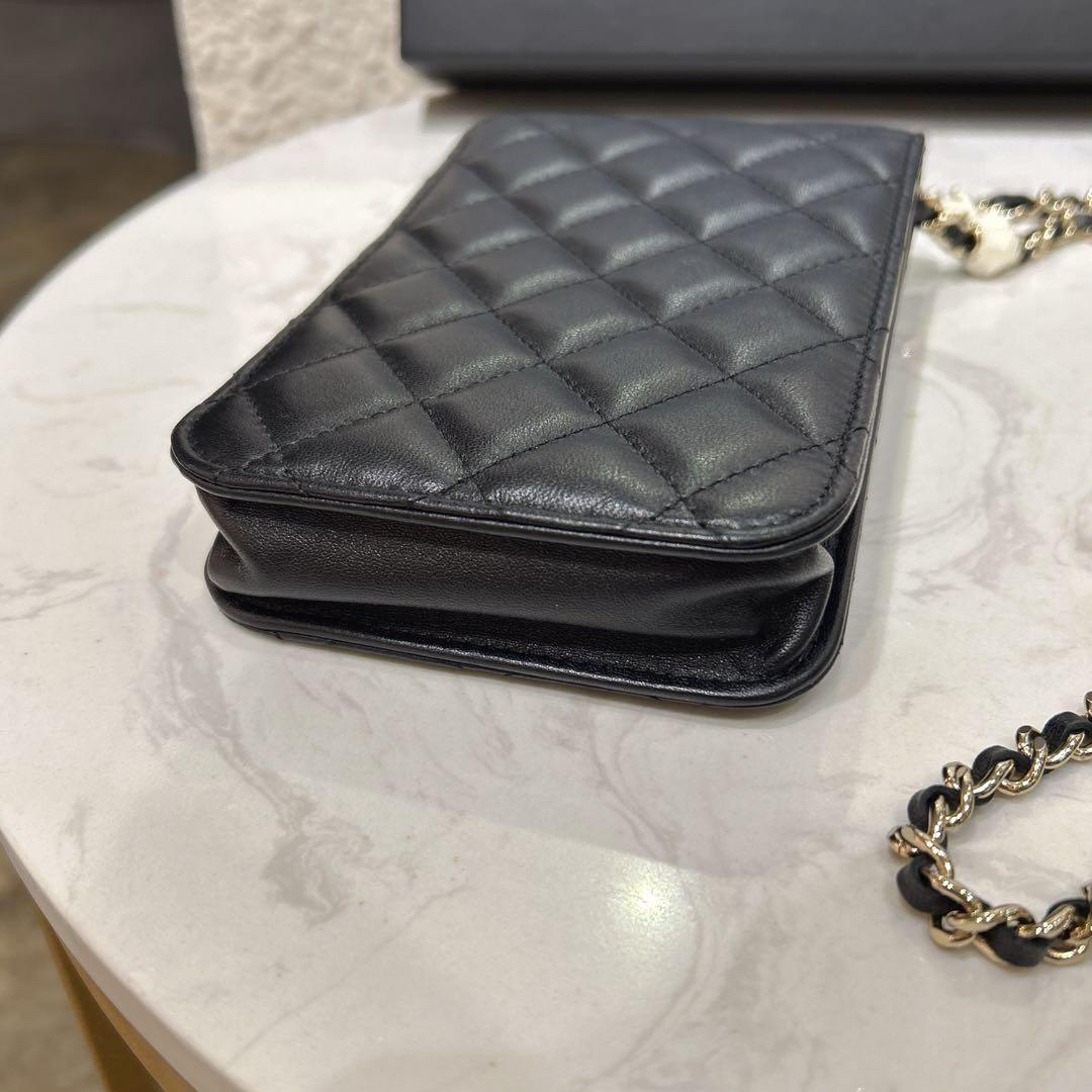 【商品詳情】正品二手 Chanel 23p 黑色 羊皮 珐琅扣 爱心 手机包🍰 97新 10x17 新镭射 配件:防尘袋 盒子。少女俏皮