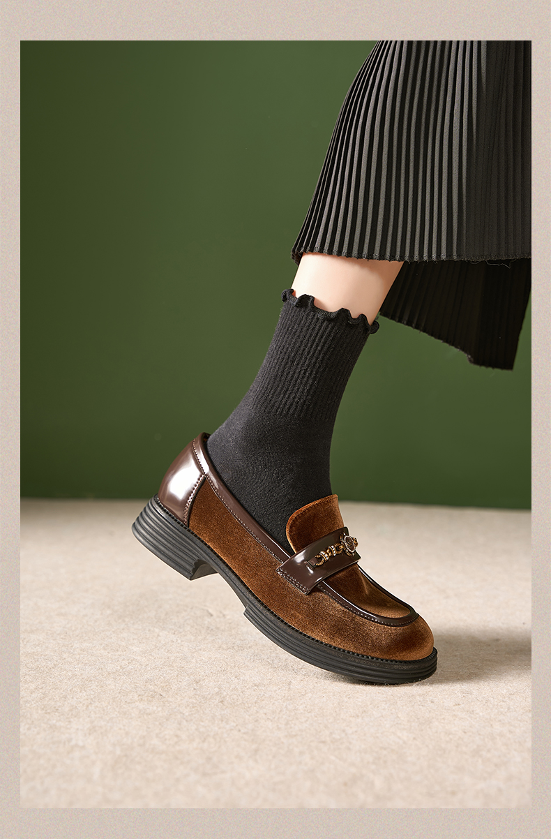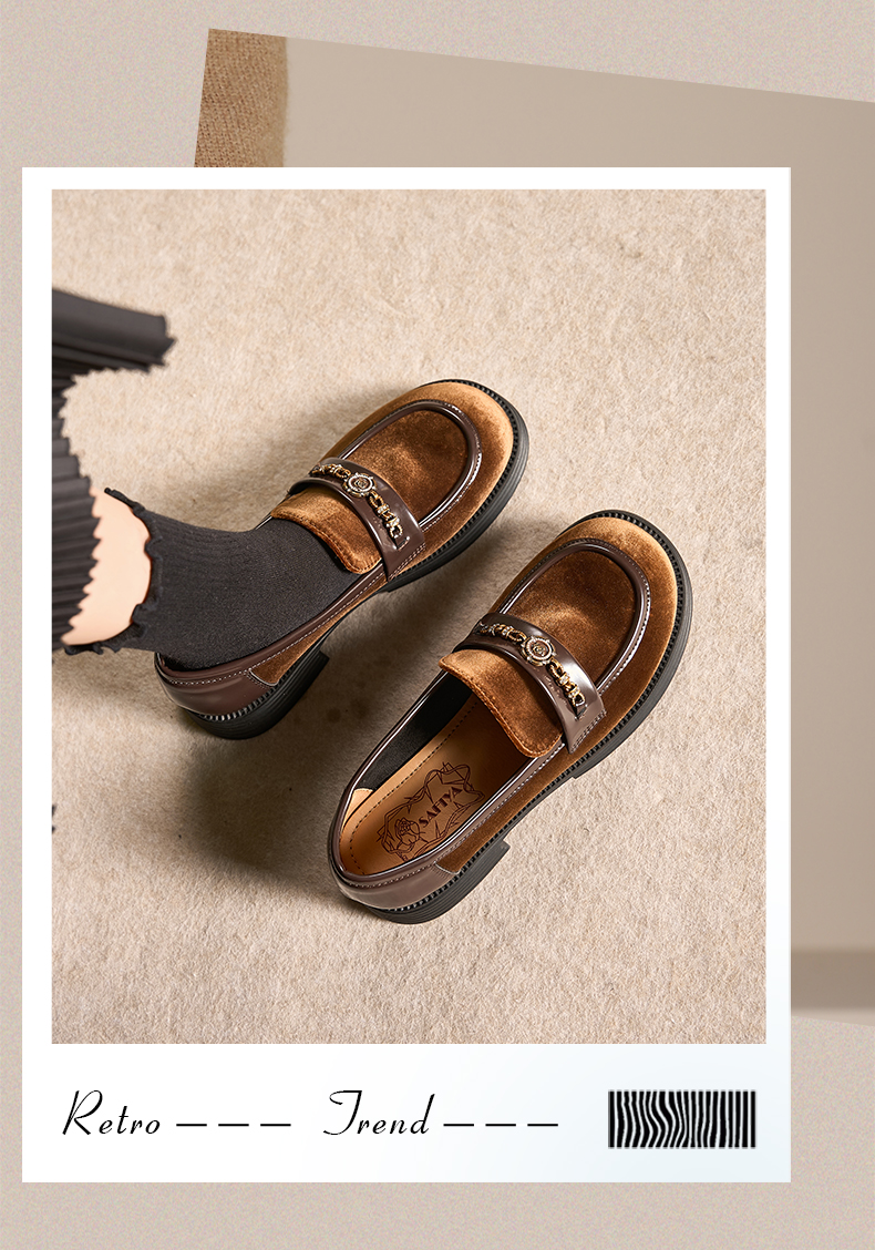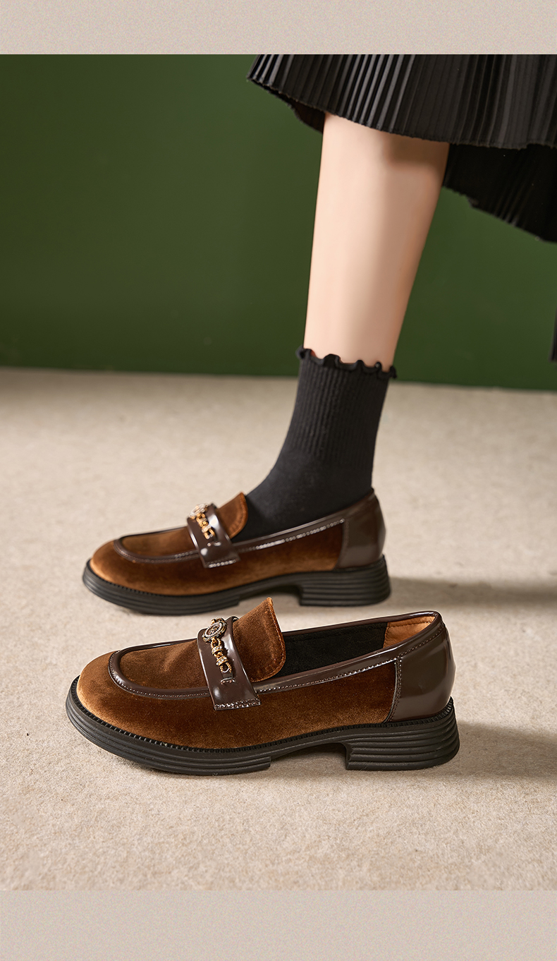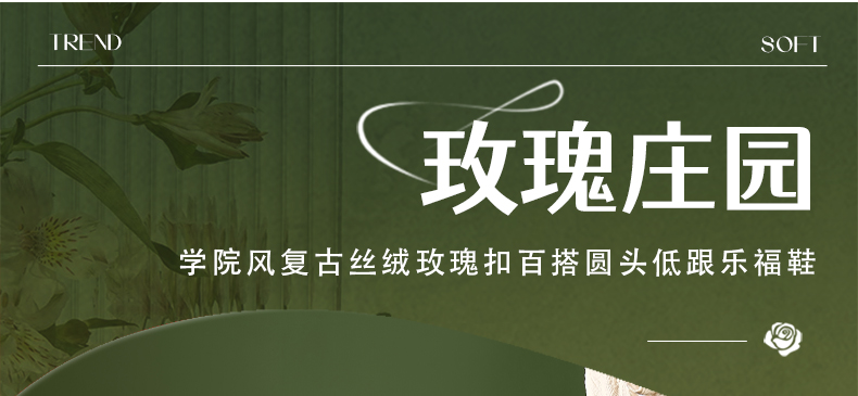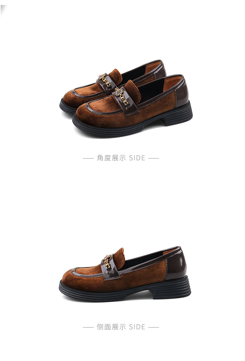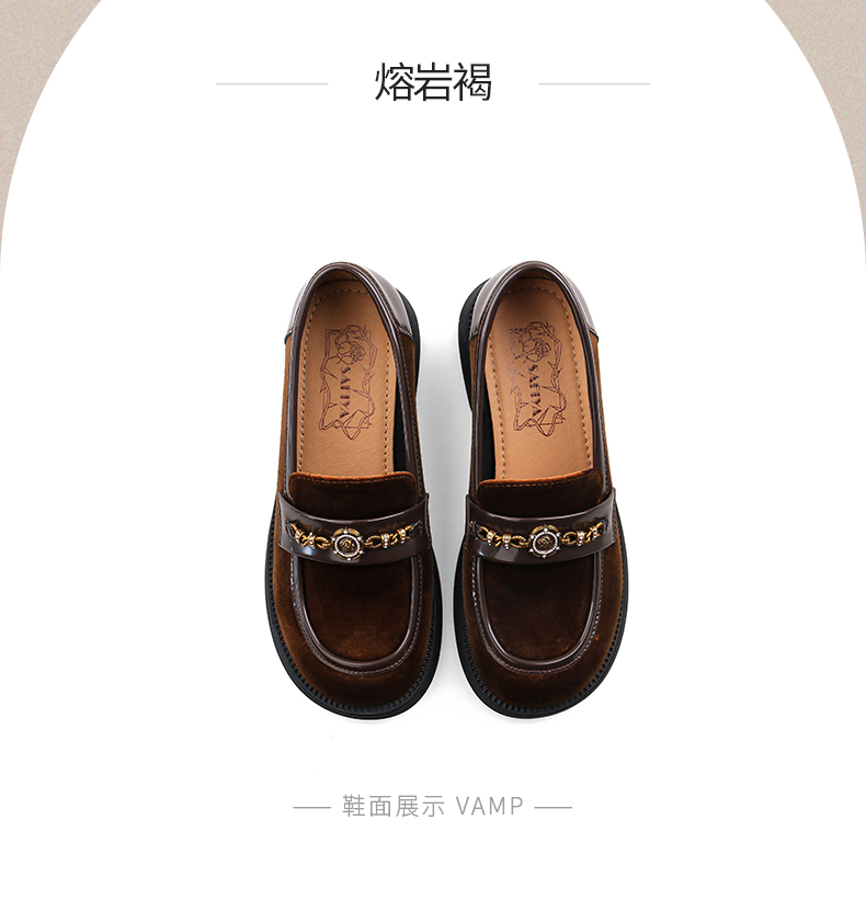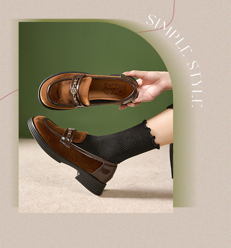 Safiya/索菲娅2024秋学院风复古丝绒玫瑰扣百搭圆头低跟乐福鞋 SF43112150