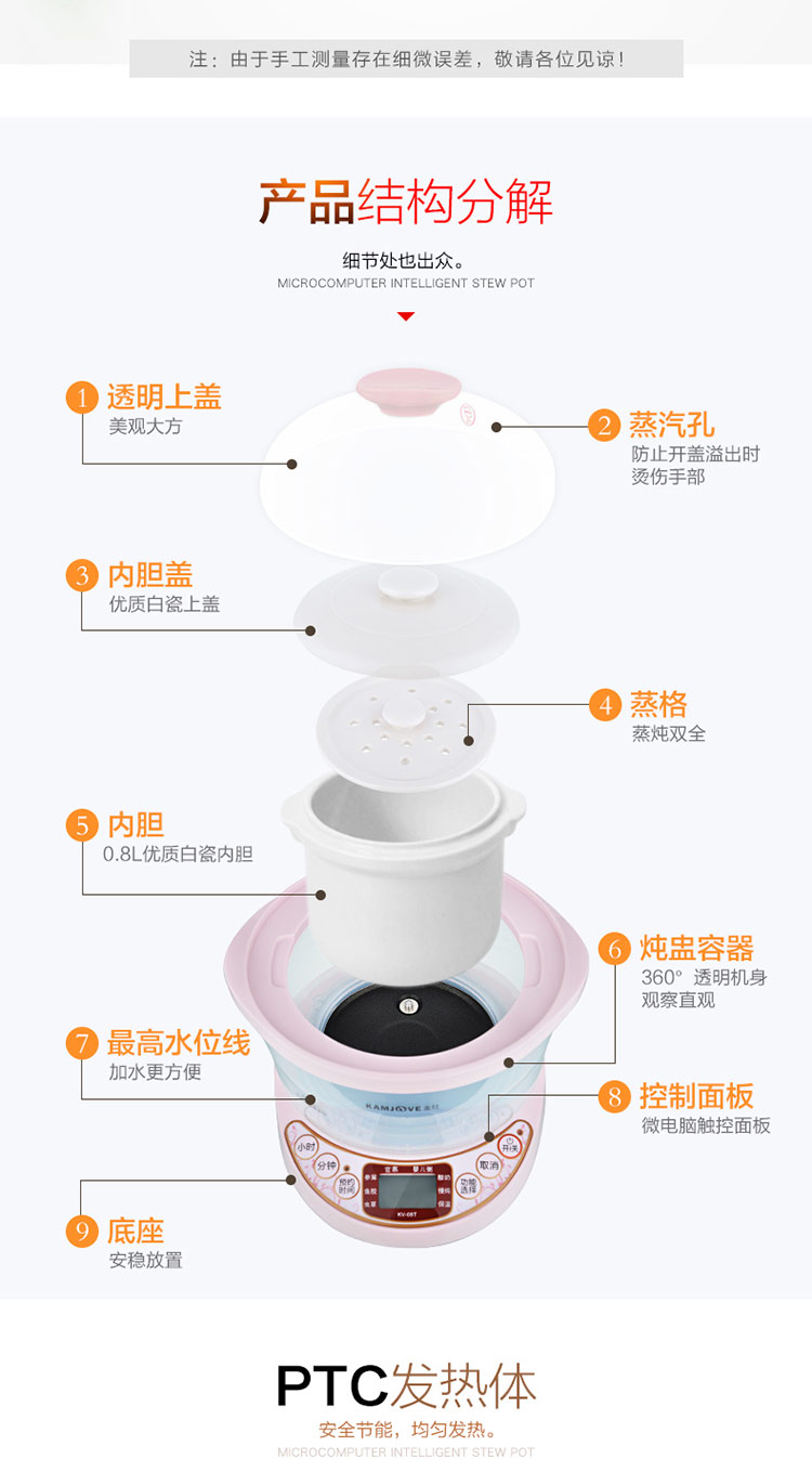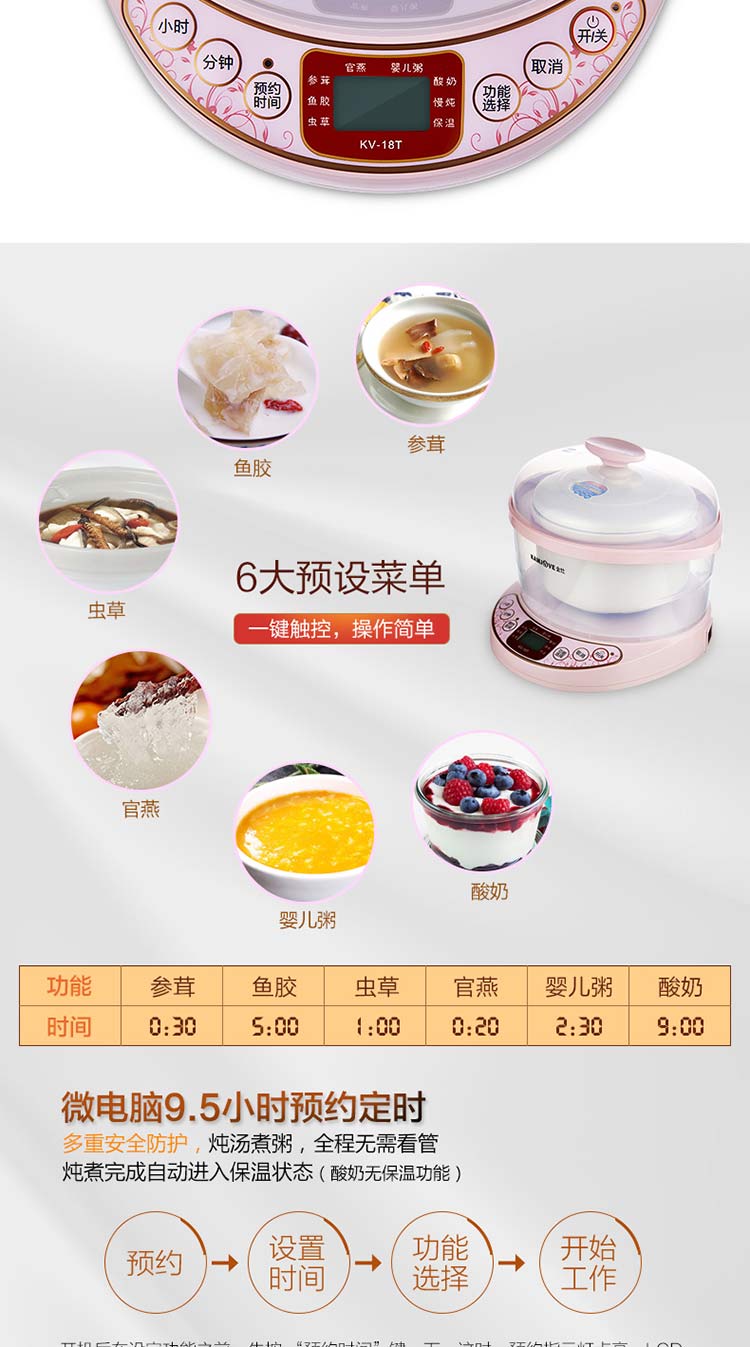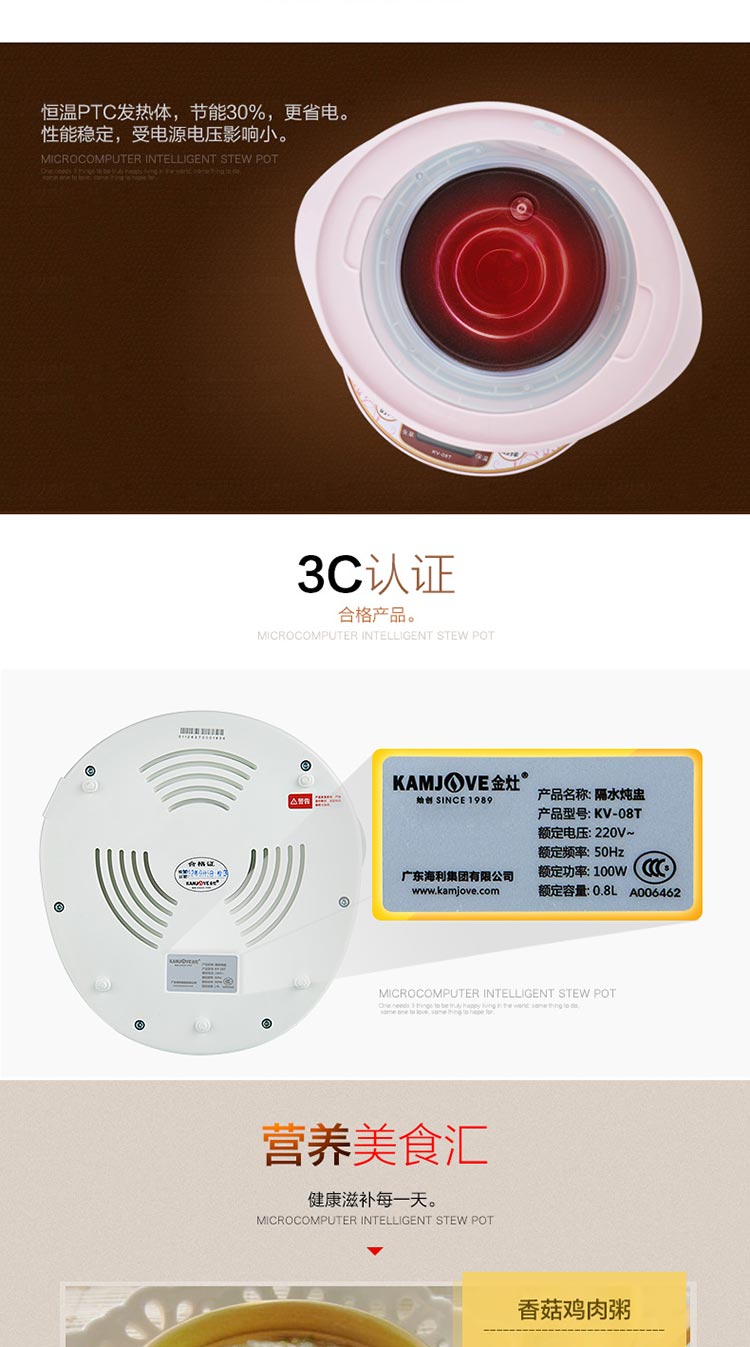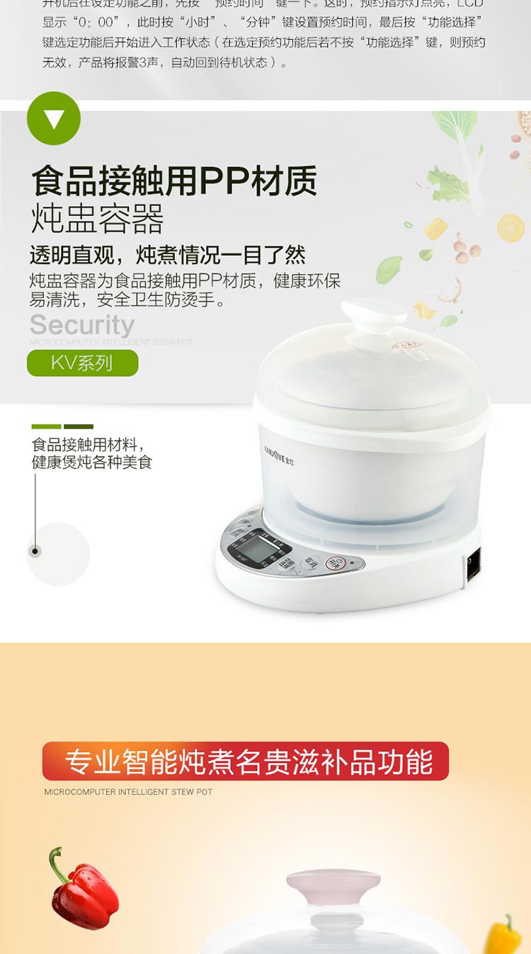 金灶KV-08T KD-08A 陶瓷隔水燕窝炖盅全自动月子白瓷电炖锅煮粥锅bb煲家用