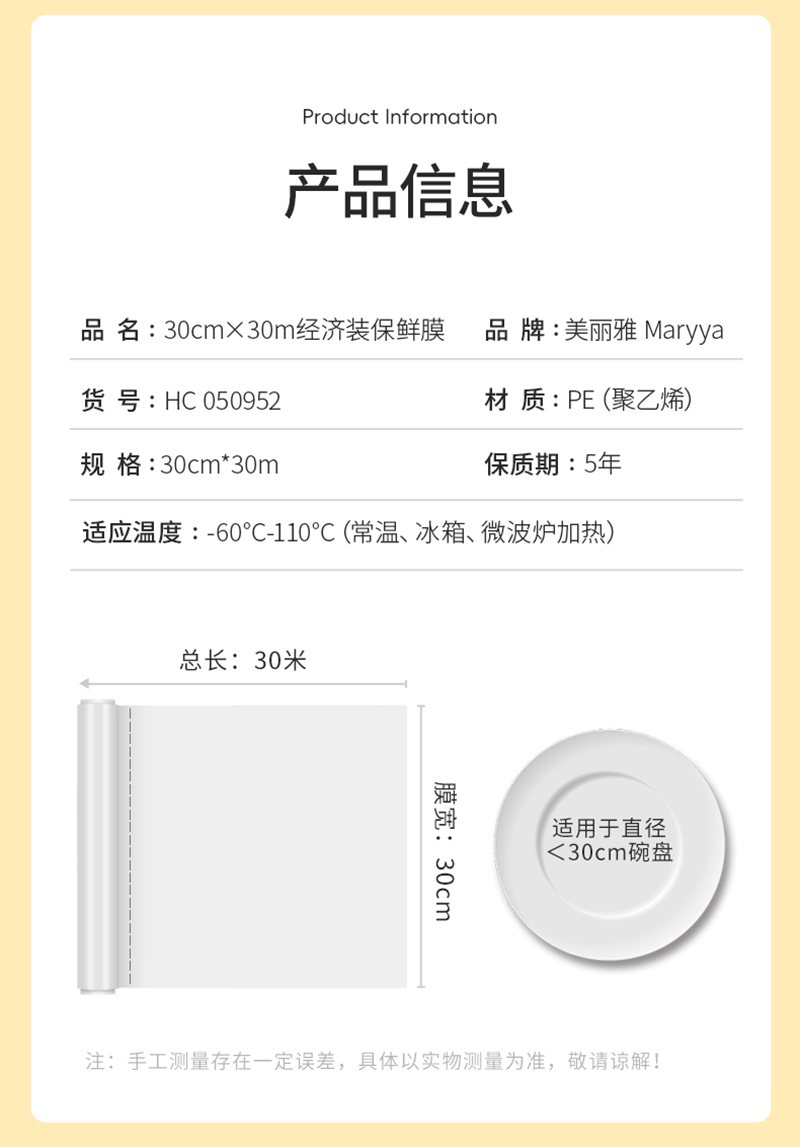 【批发】美丽雅高透保鲜膜30cmx30米 1卷