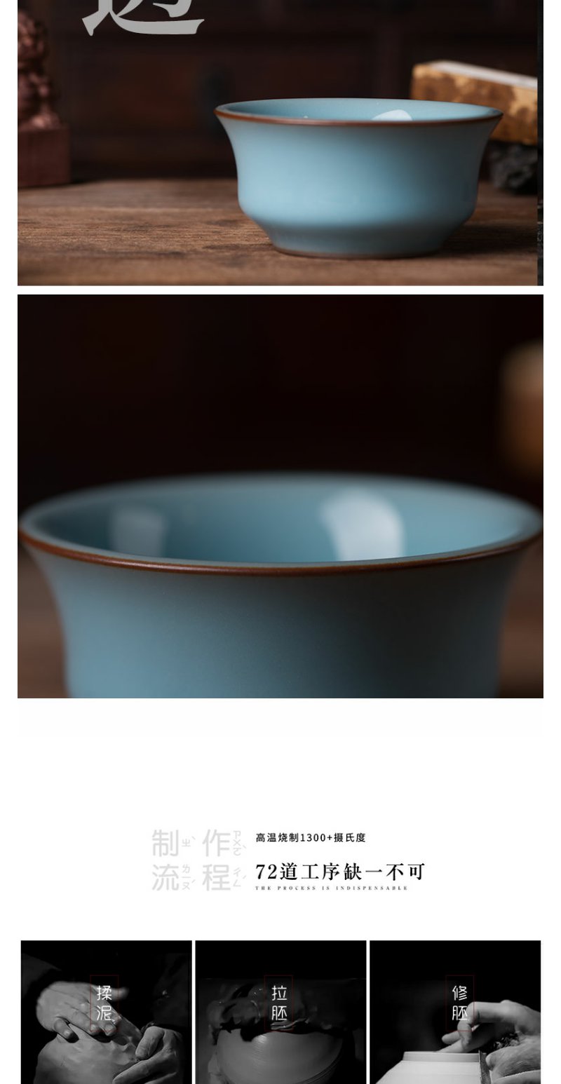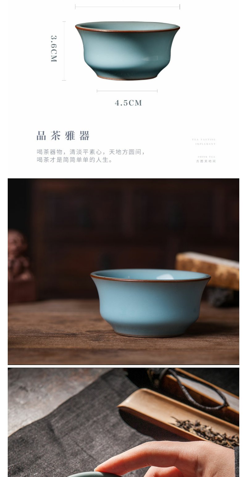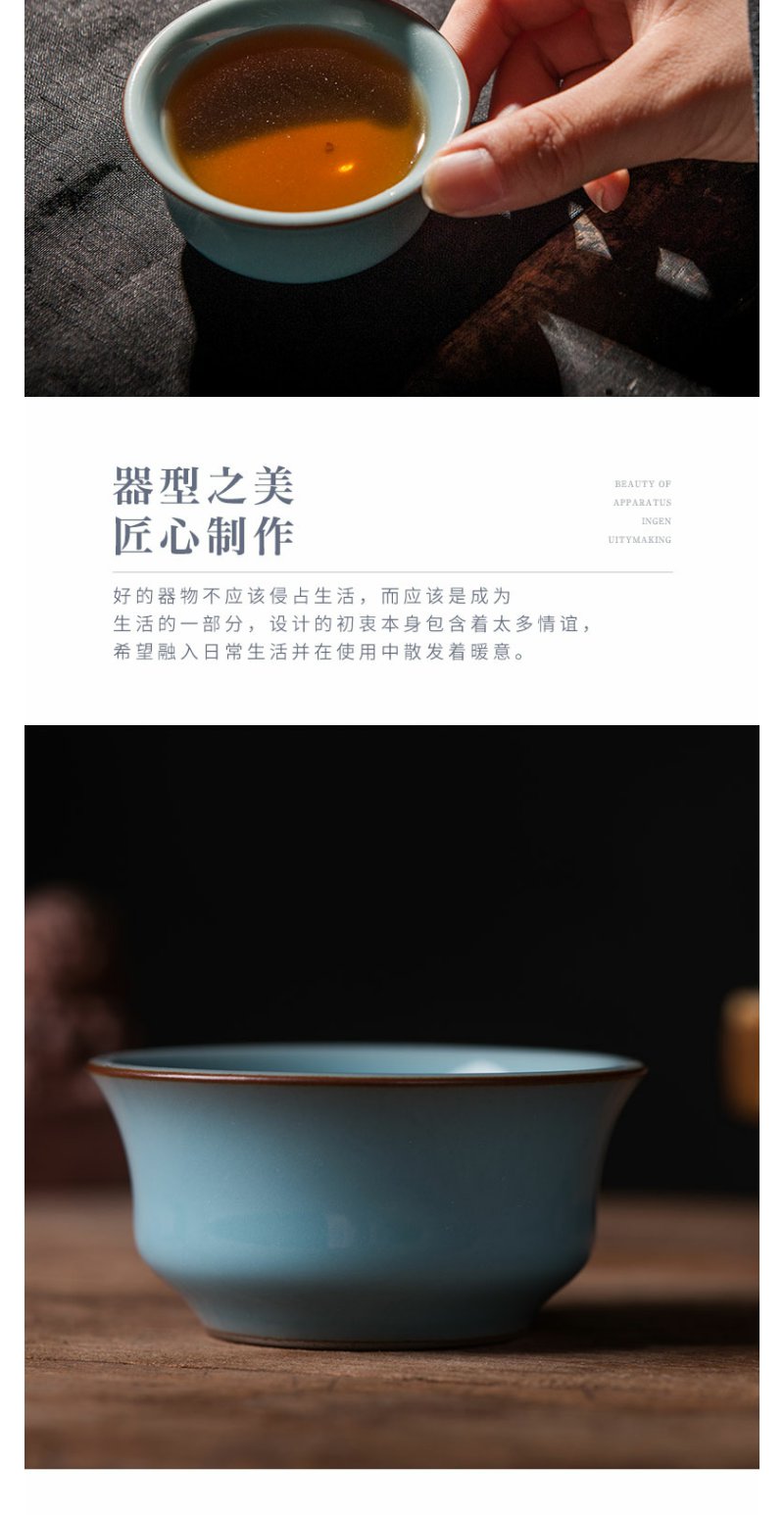【丰子汝窑】【天青棱瓣杯】8.3x4.8cm 80ml 茶杯纯手工开片主人杯陶瓷汝瓷单杯子个人品茗杯功夫茶具
