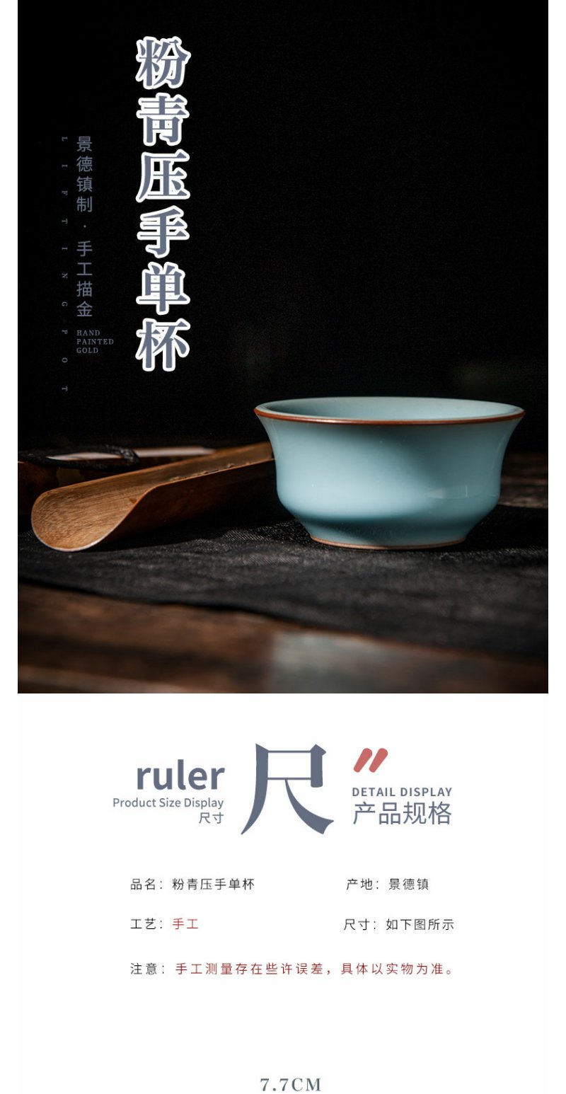 景德镇 抱翁堂粉青压手单杯 陶瓷主人杯
