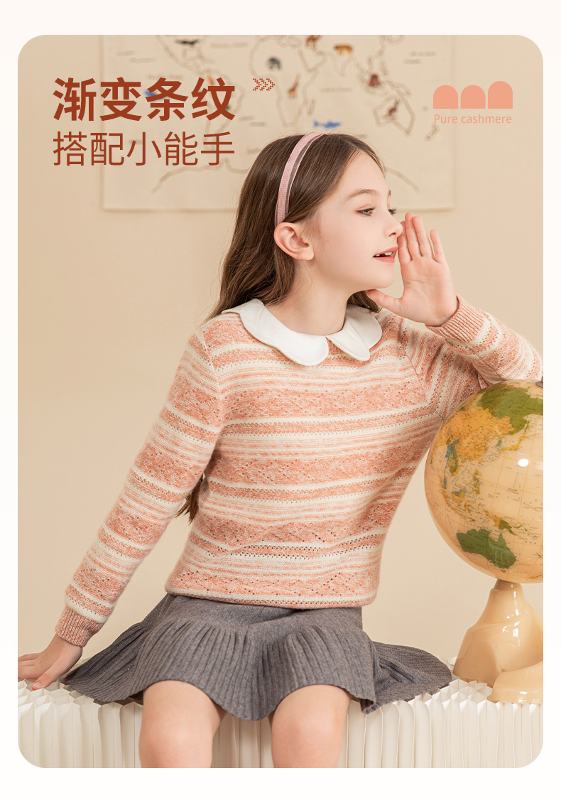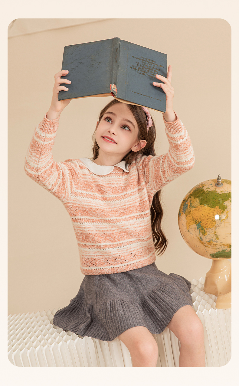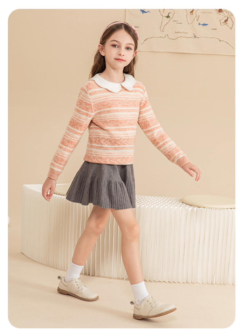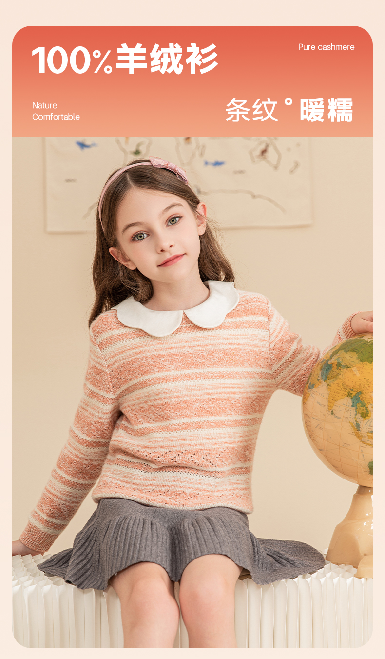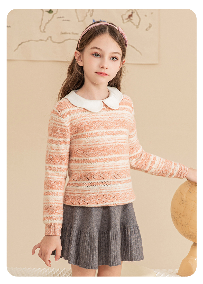 mettekids女童羊绒衫2023秋冬新款休闲条纹毛衣儿童打底针织衫