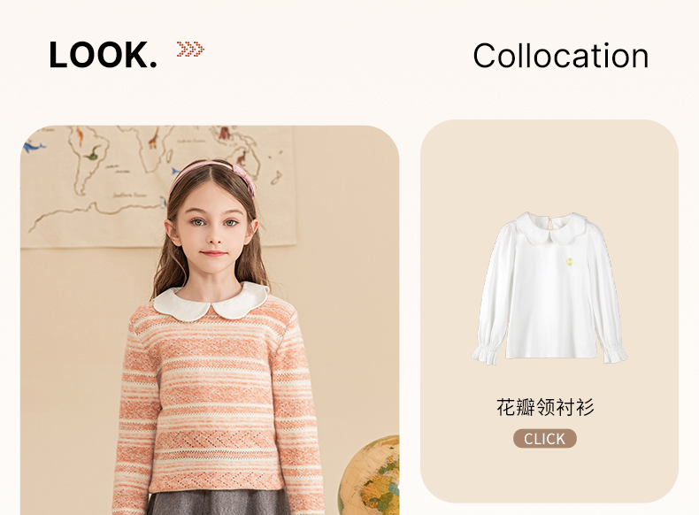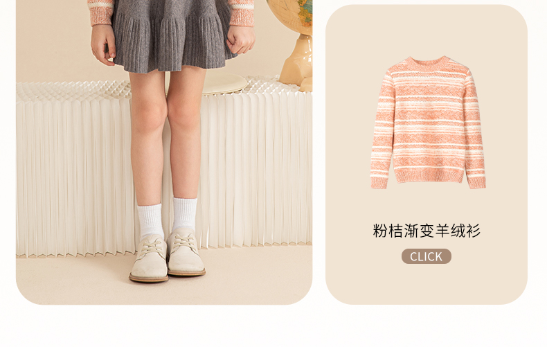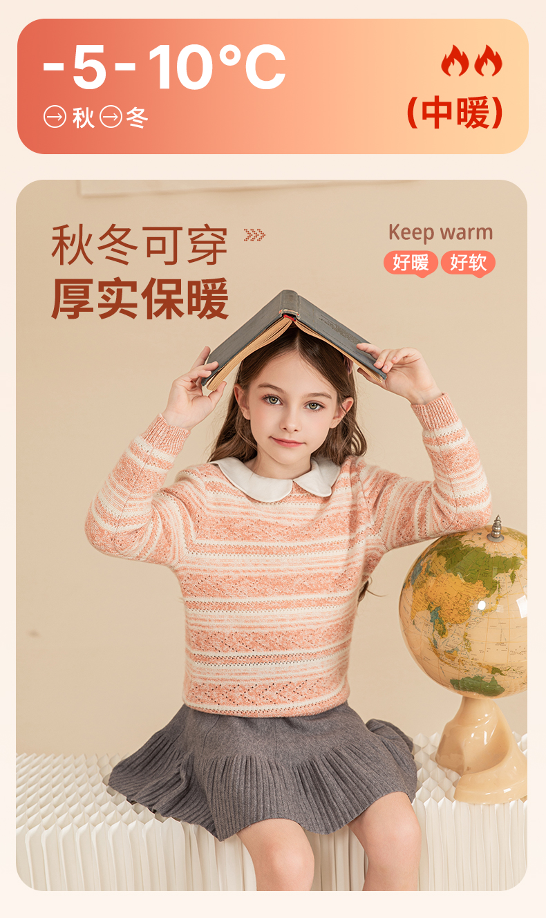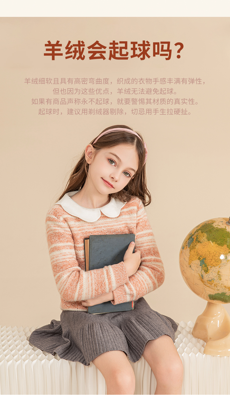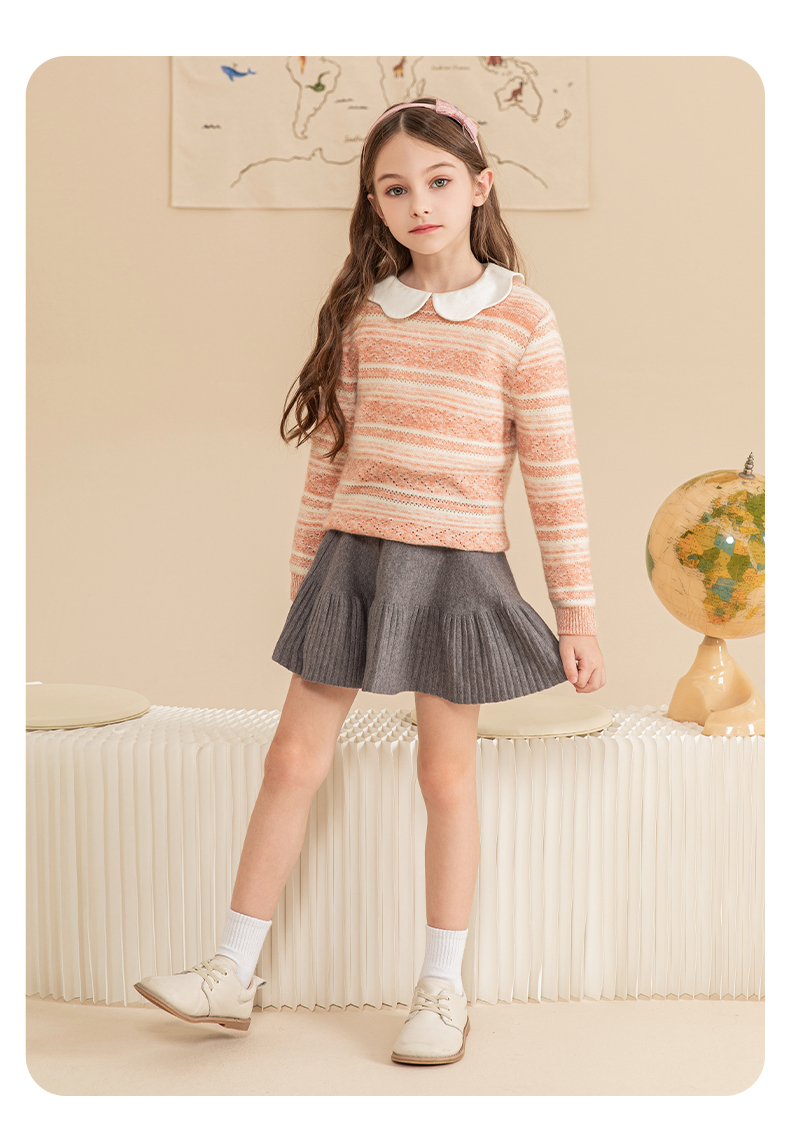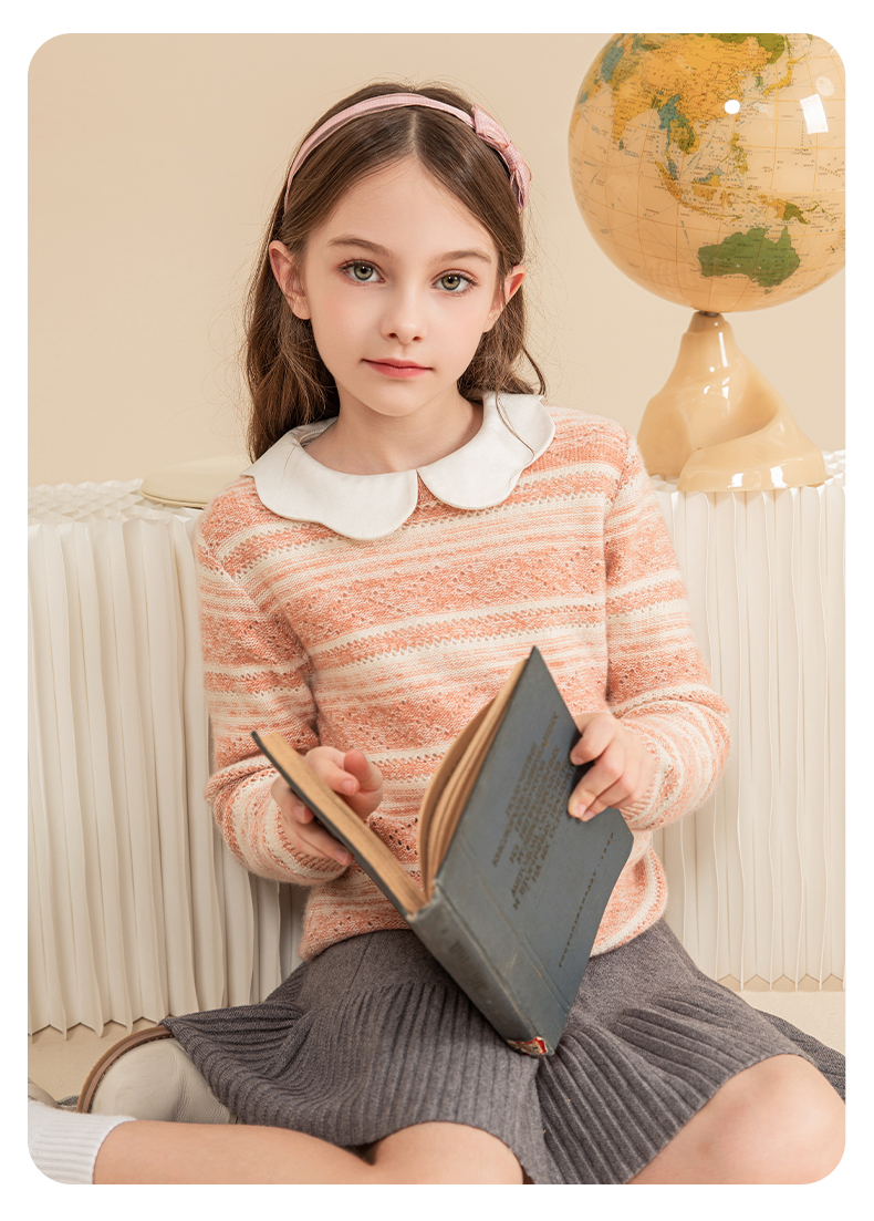 mettekids女童羊绒衫2023秋冬新款休闲条纹毛衣儿童打底针织衫