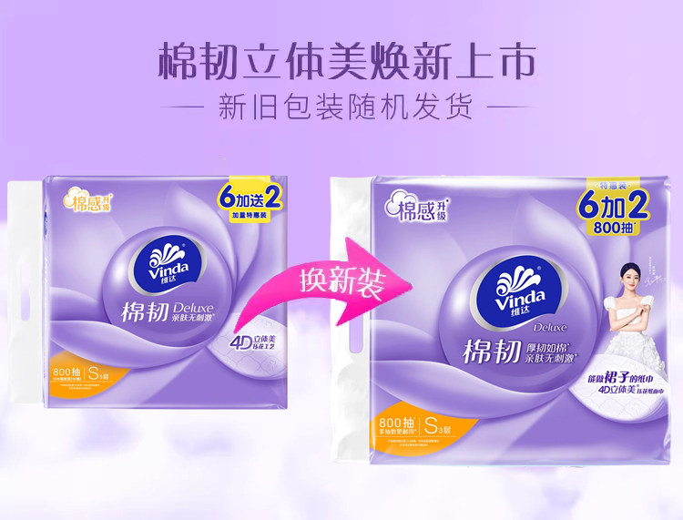 维达 棉韧抽取式面巾纸 V2833(S码100抽3层)