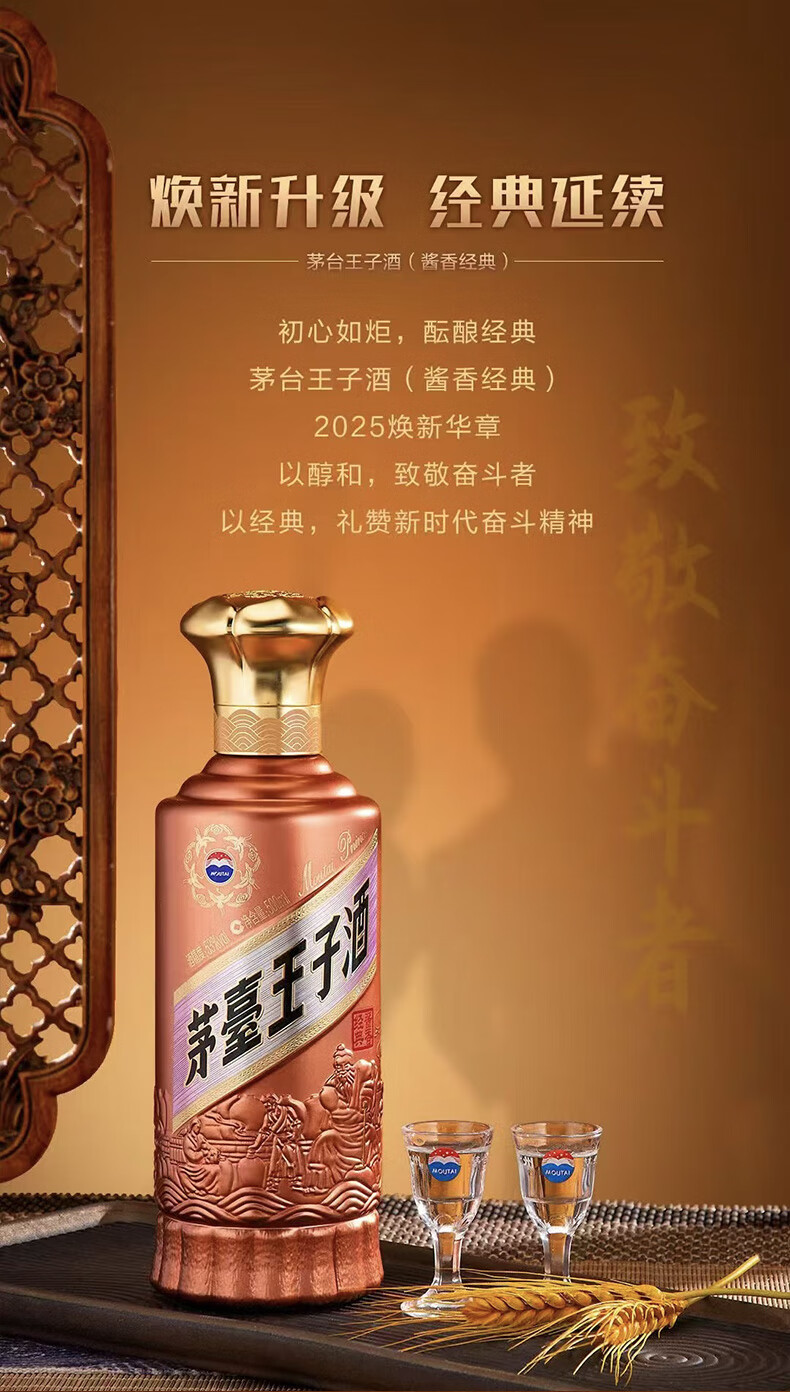 2025年新版 茅台王子酒(酱香经典) 500ml【两瓶起购】