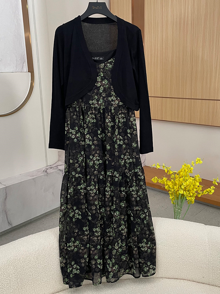 7/27奢姿2024年秋季新款大码女装碎花吊带裙子胖妹妹法式褶皱连衣裙9943853585B