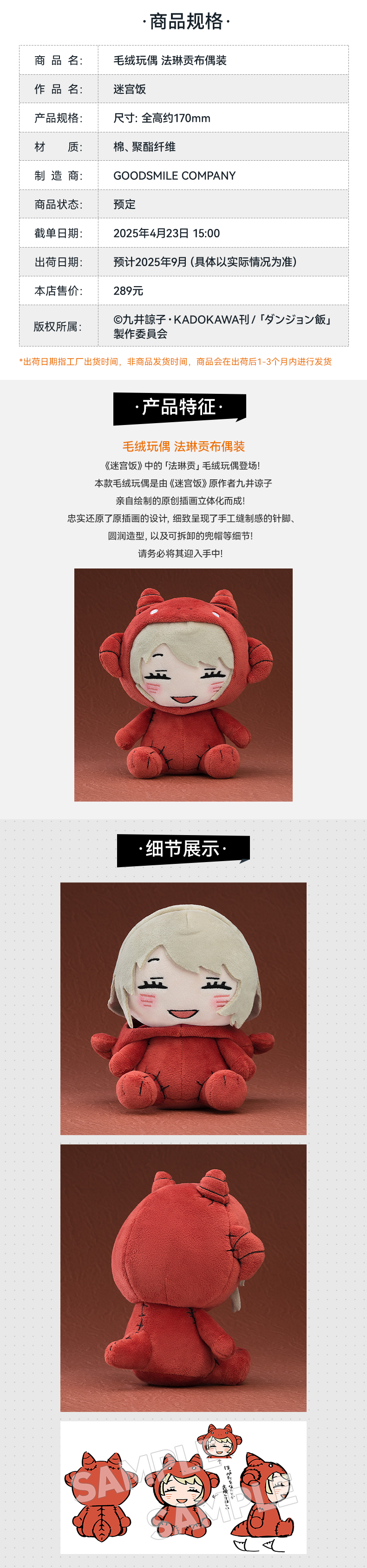【GSC现货】毛绒玩偶 法琳贡布偶装 迷宫饭
