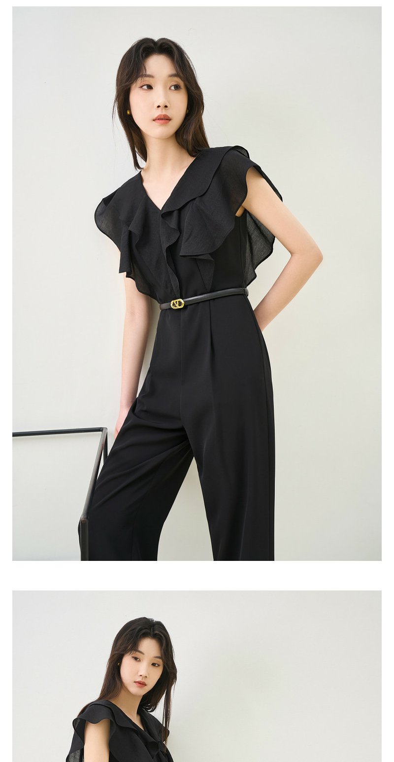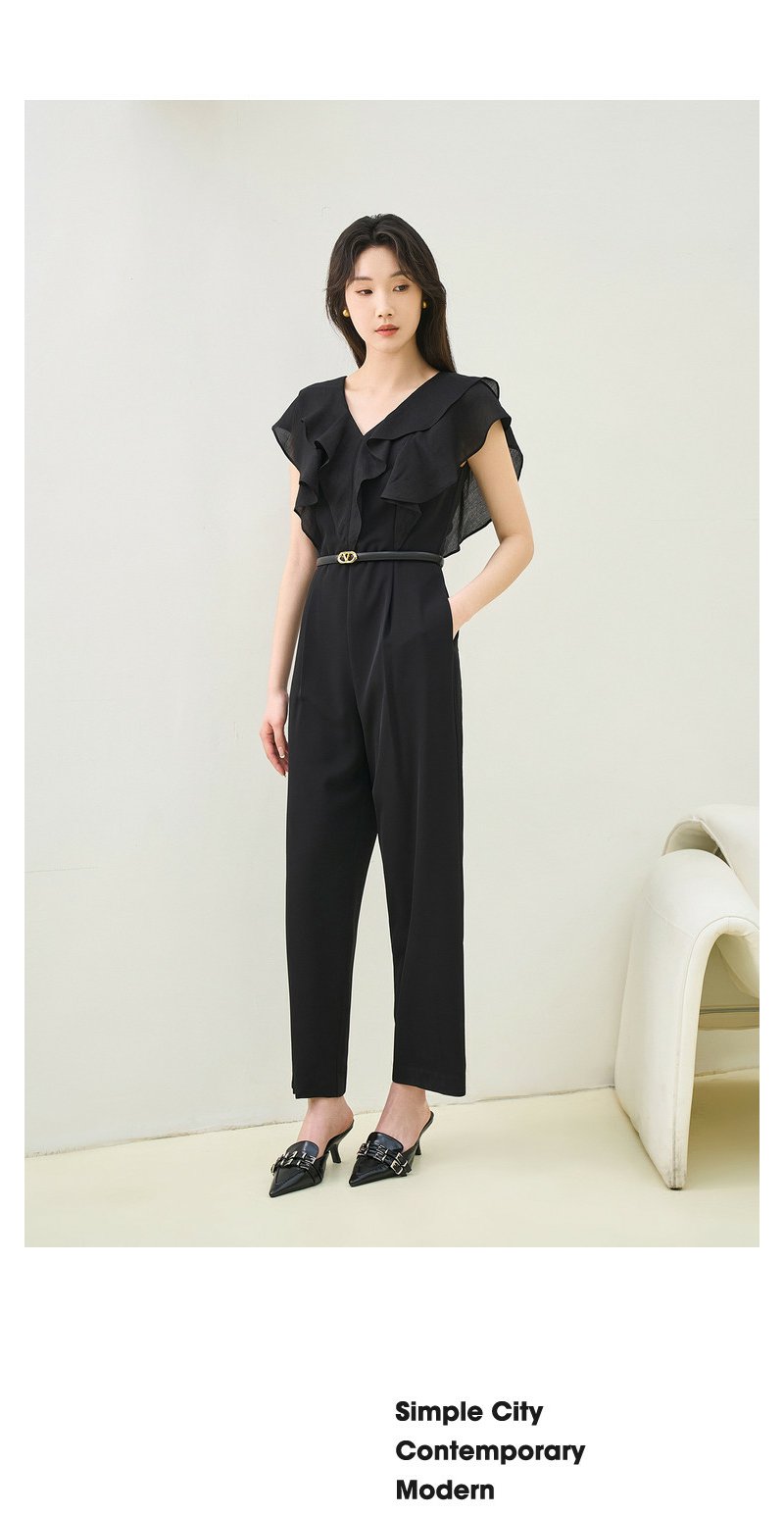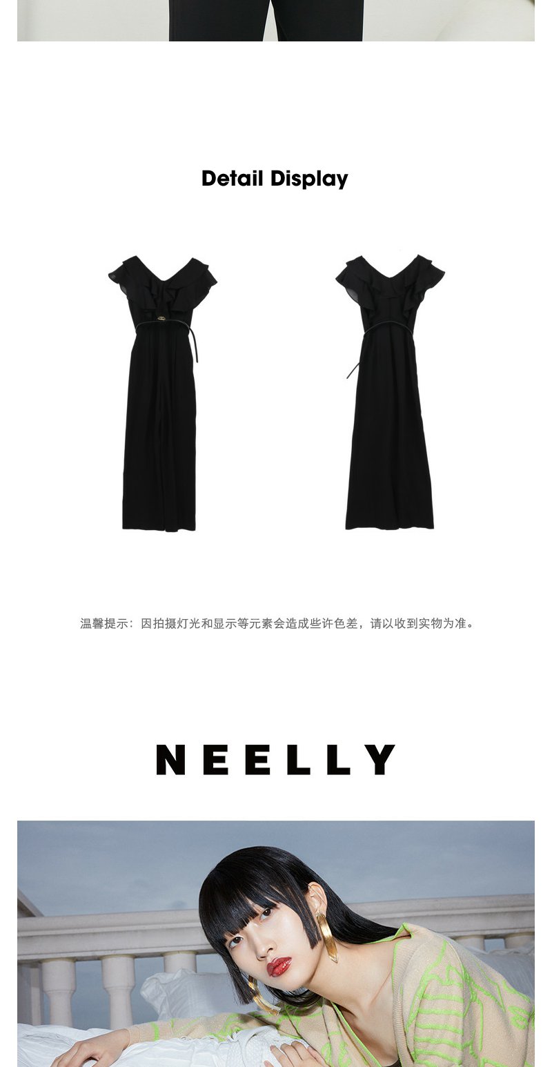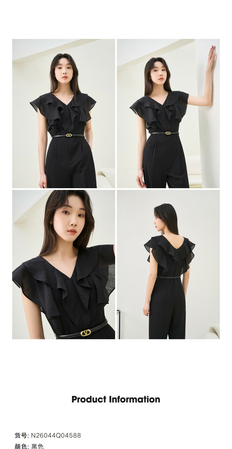 NEELLY纳俪商场同款夏季新款V领荷叶袖连体裤女垂感气质高腰款N26044Q04588