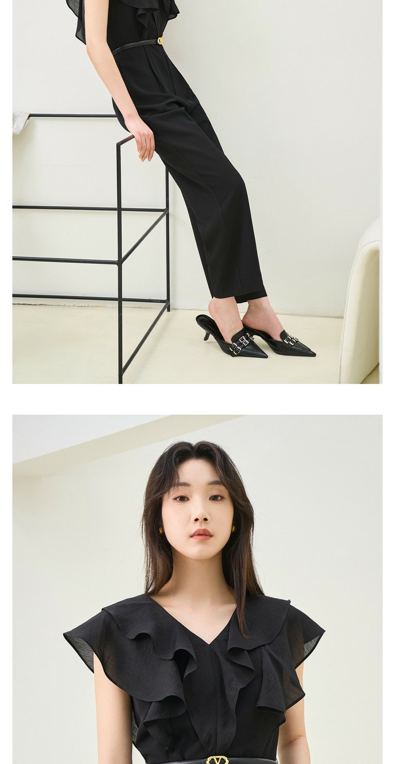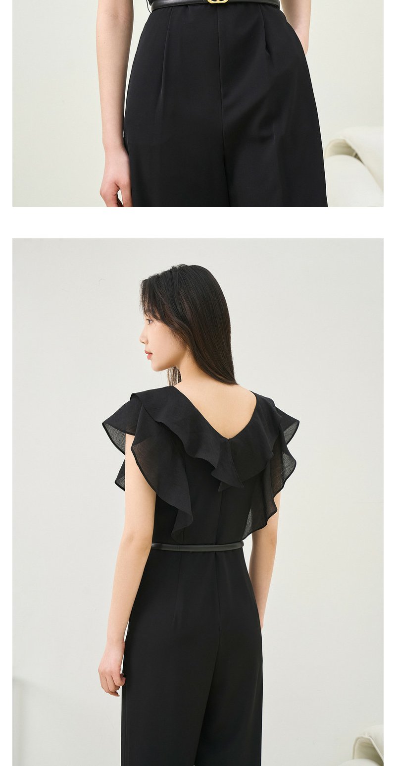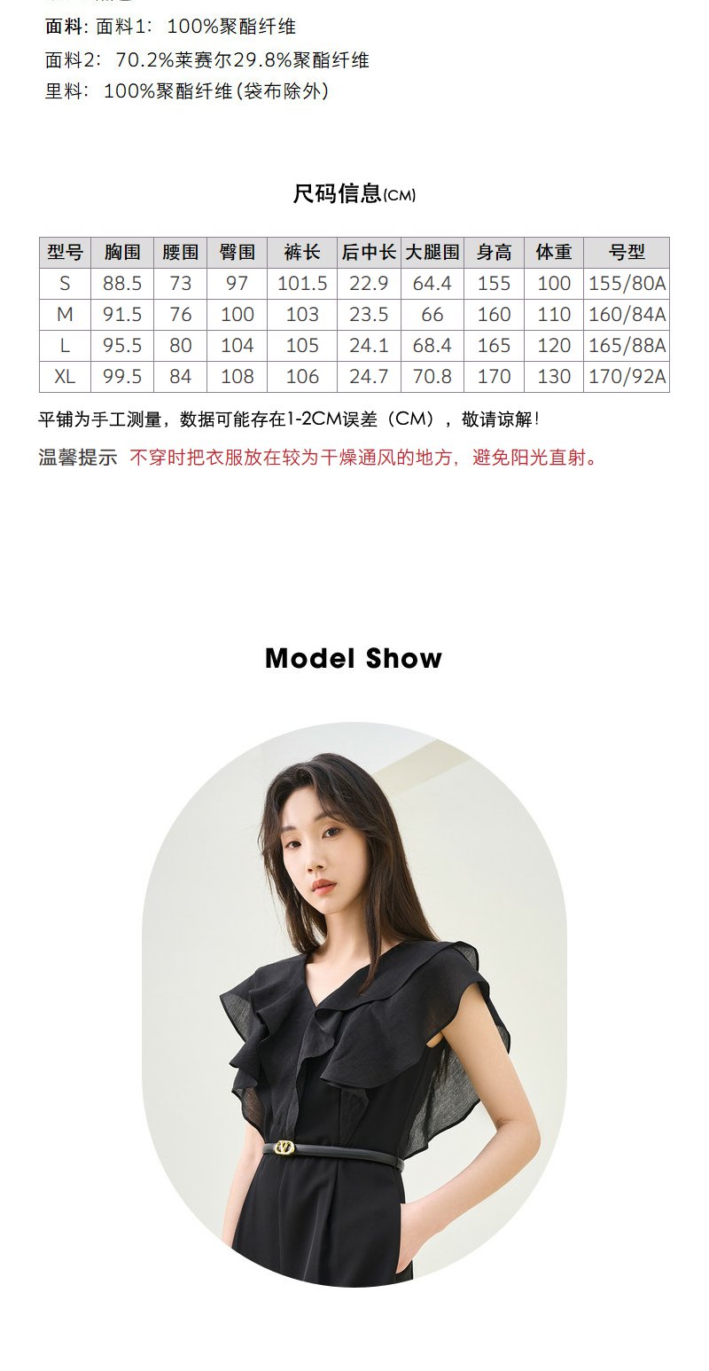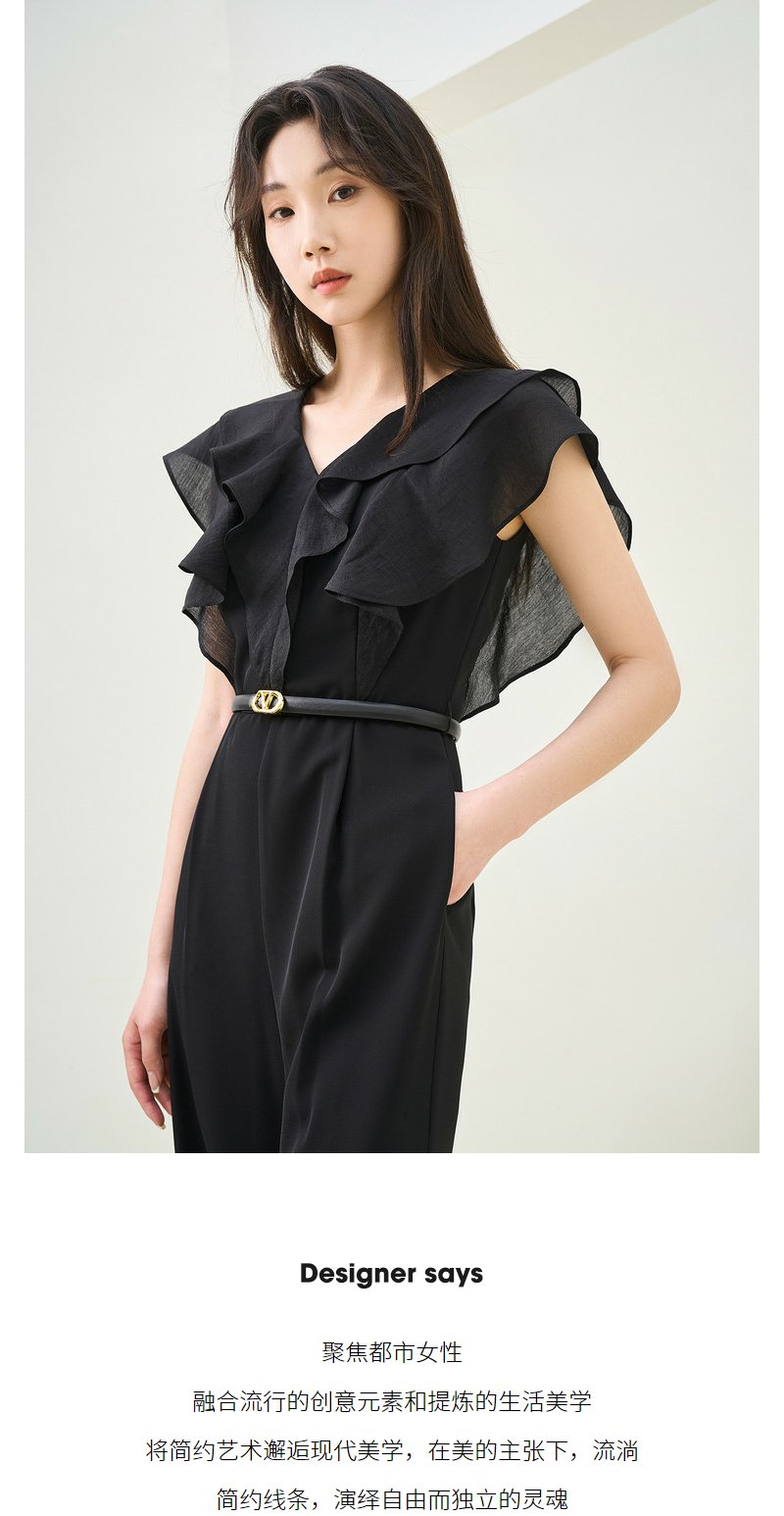 NEELLY纳俪商场同款夏季新款V领荷叶袖连体裤女垂感气质高腰款N26044Q04588
