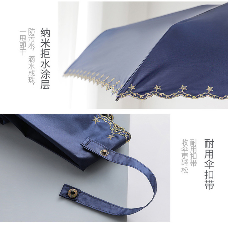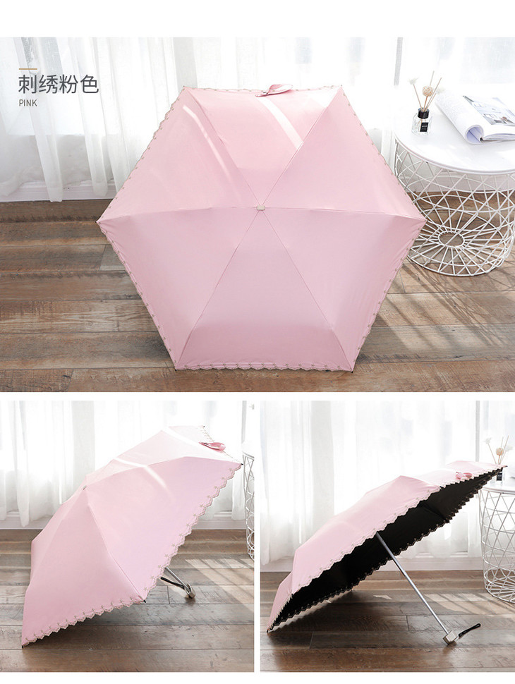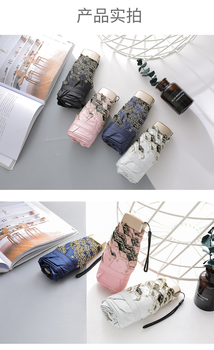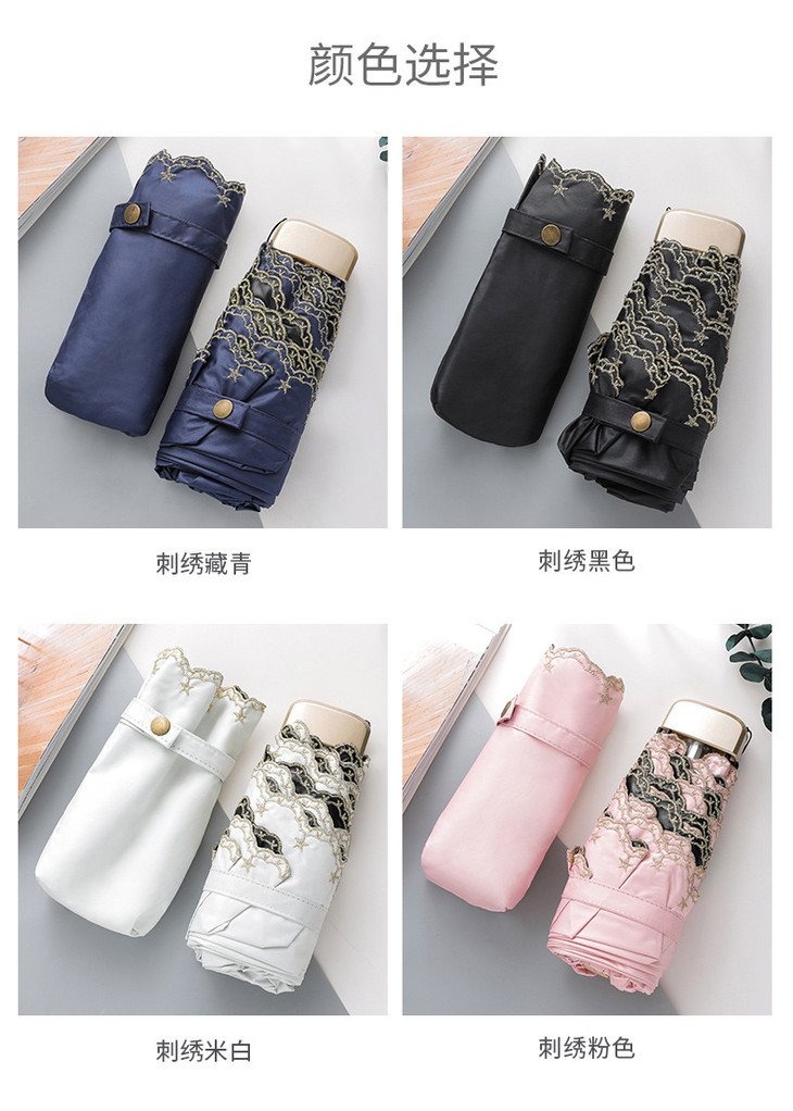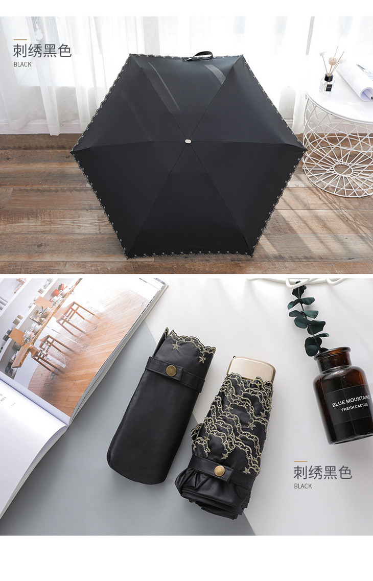 【太阳伞】.Ardeco刺绣五折伞黑胶迷你口袋伞晴雨伞两用黑胶太阳伞