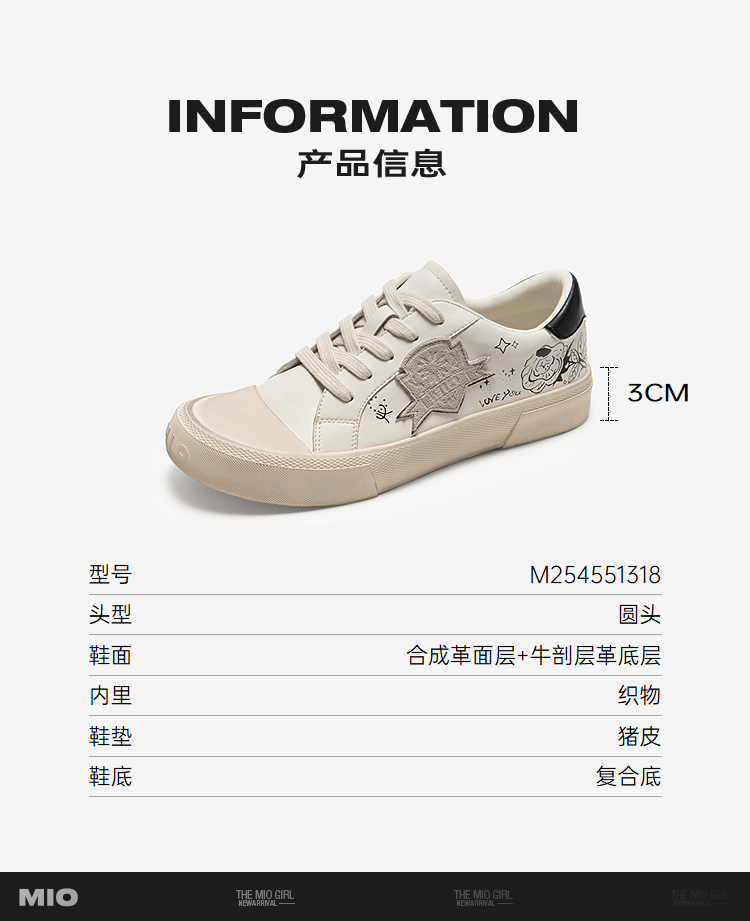 MIO米奥做旧脏脏鞋秋新款小白鞋厚底女鞋涂鸦鞋舒适休闲板鞋M254551318