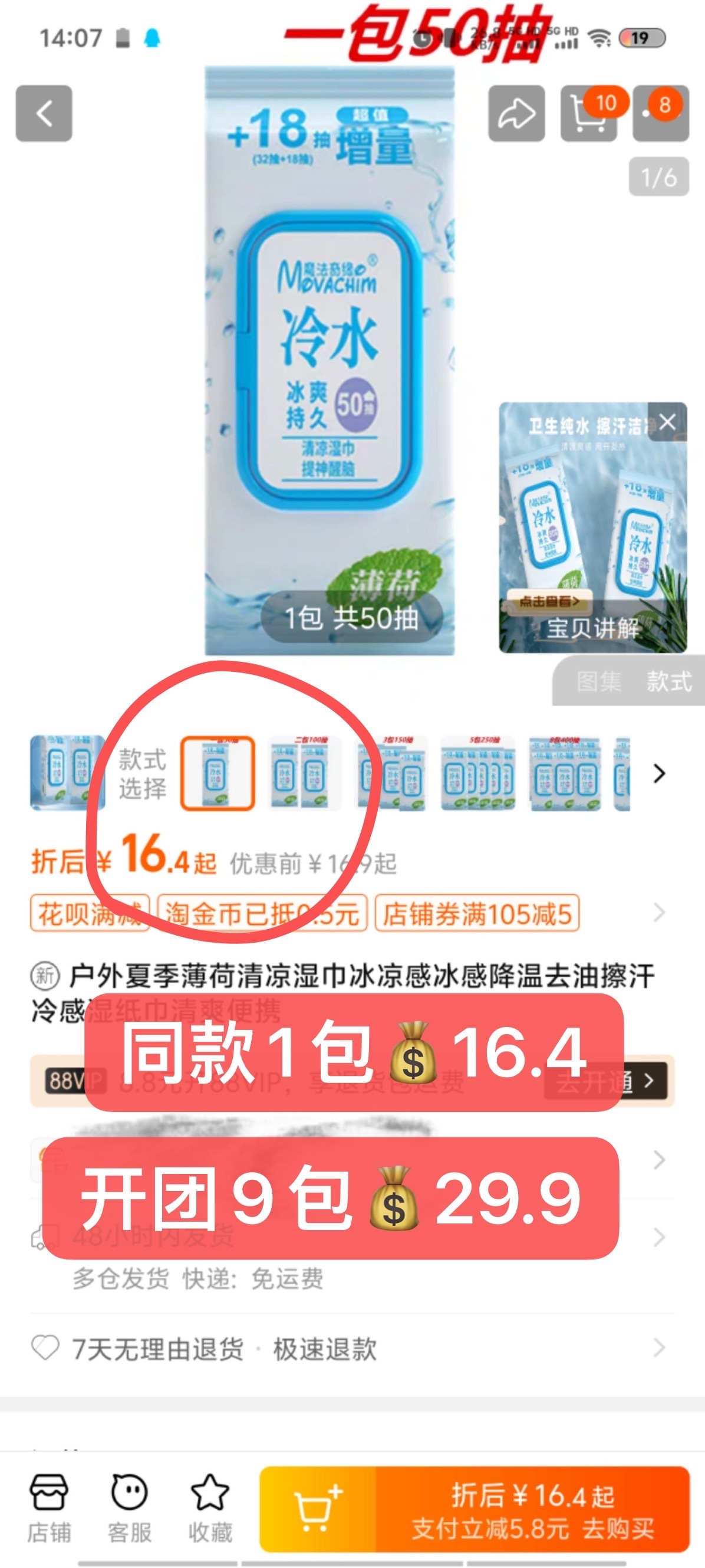 🔺旗舰店💰16.4/包,开团9包💰29.9