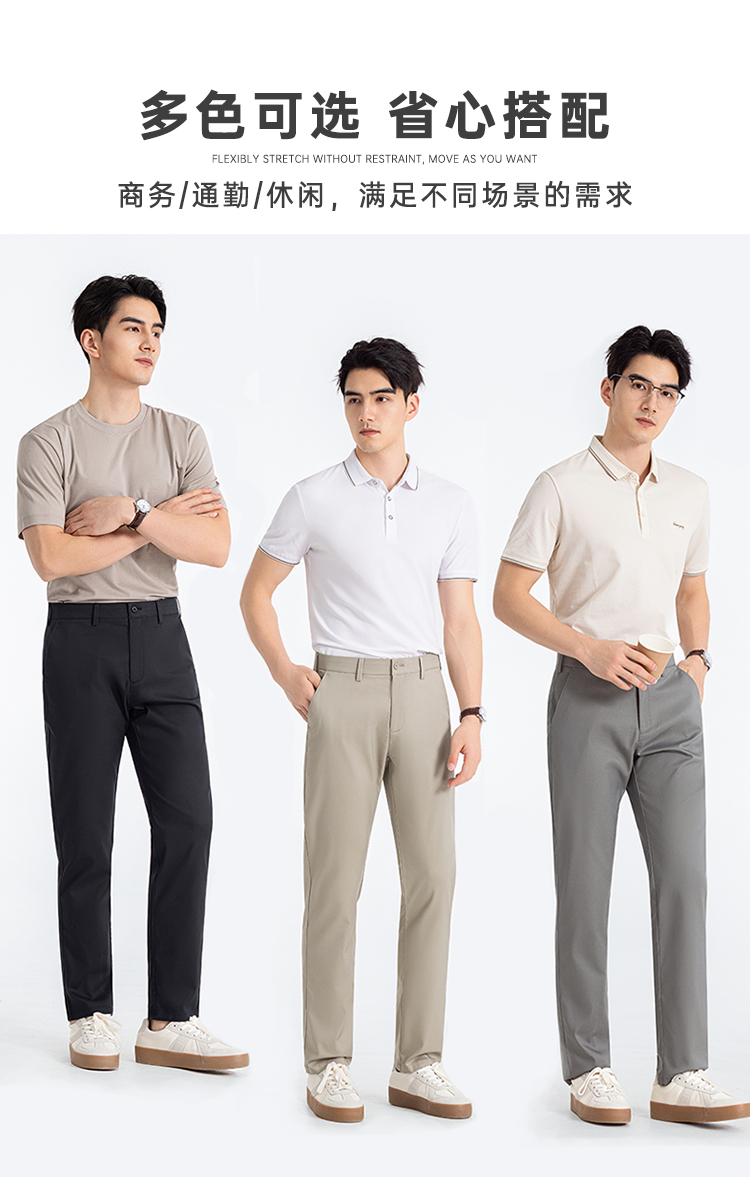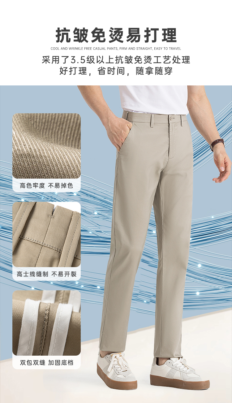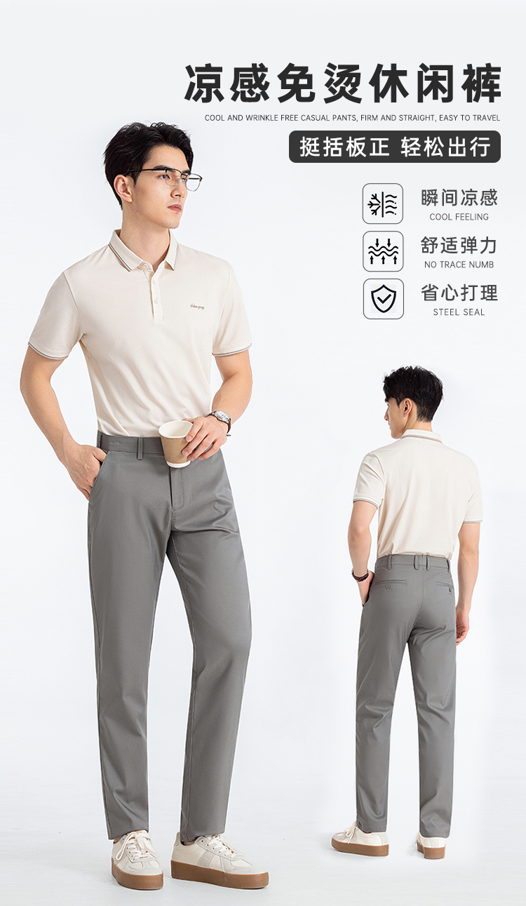 【实付满399送保温杯】【莱赛尔凉感免烫休闲裤】商务休闲西裤修身高弹长裤直筒裤子KT504