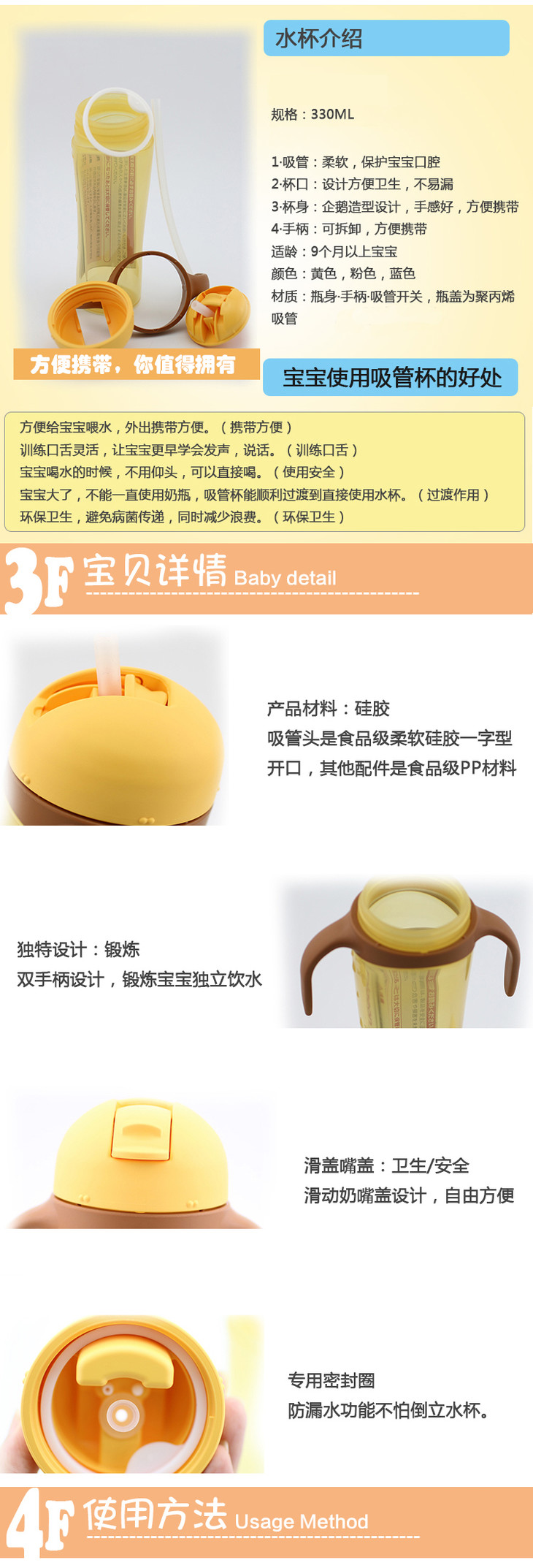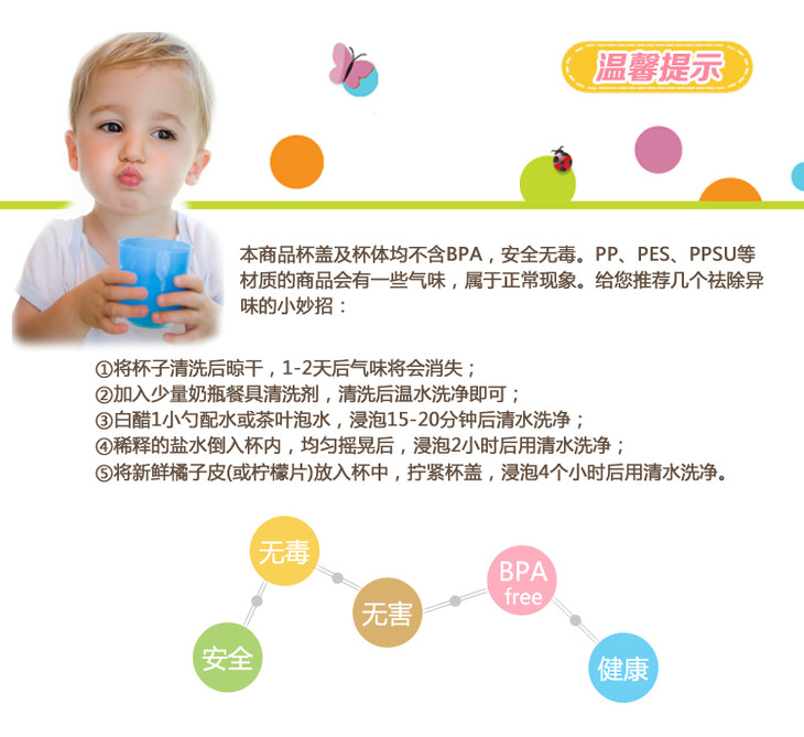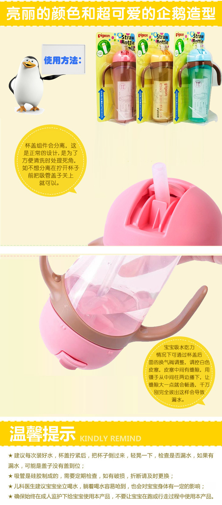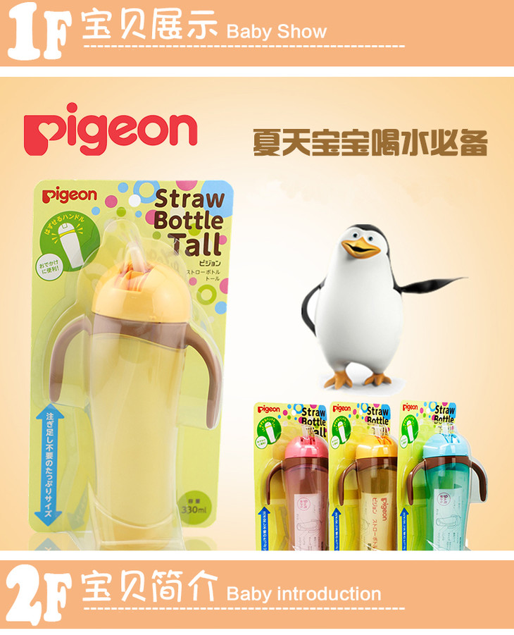 【一般贸易】日本贝亲Pigeon双耳防漏手柄可拆卸吸管训练杯 蓝色 330ml