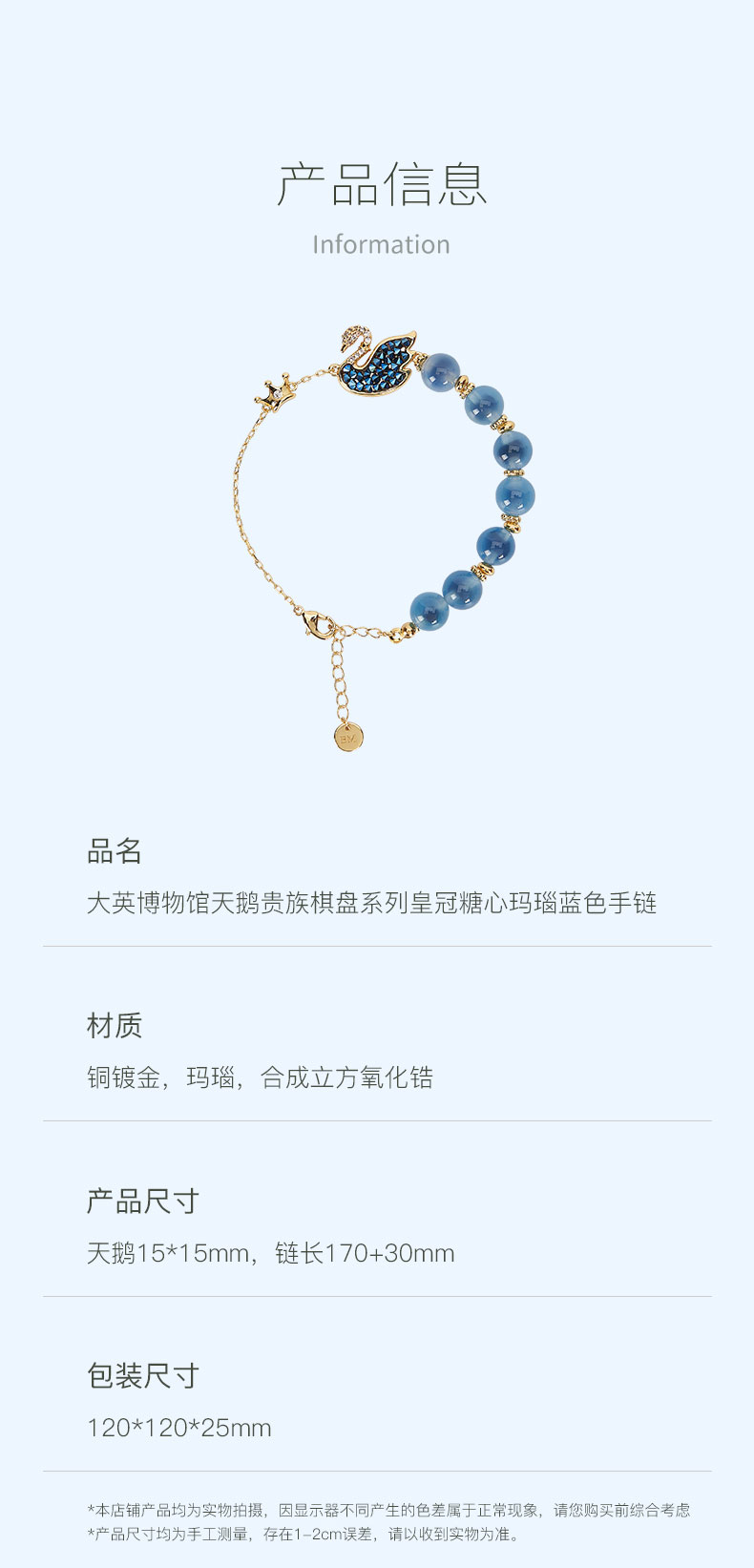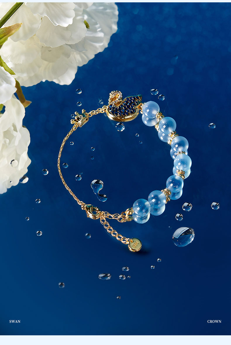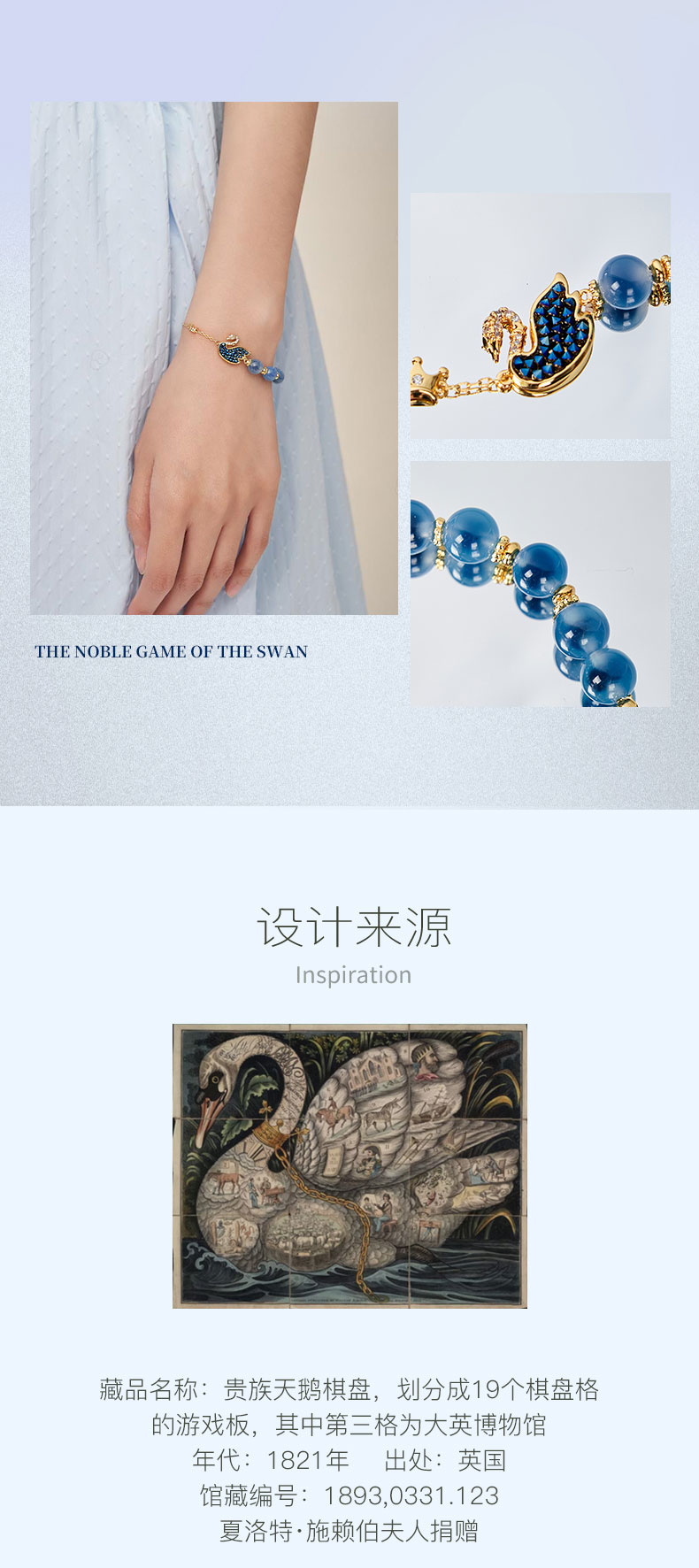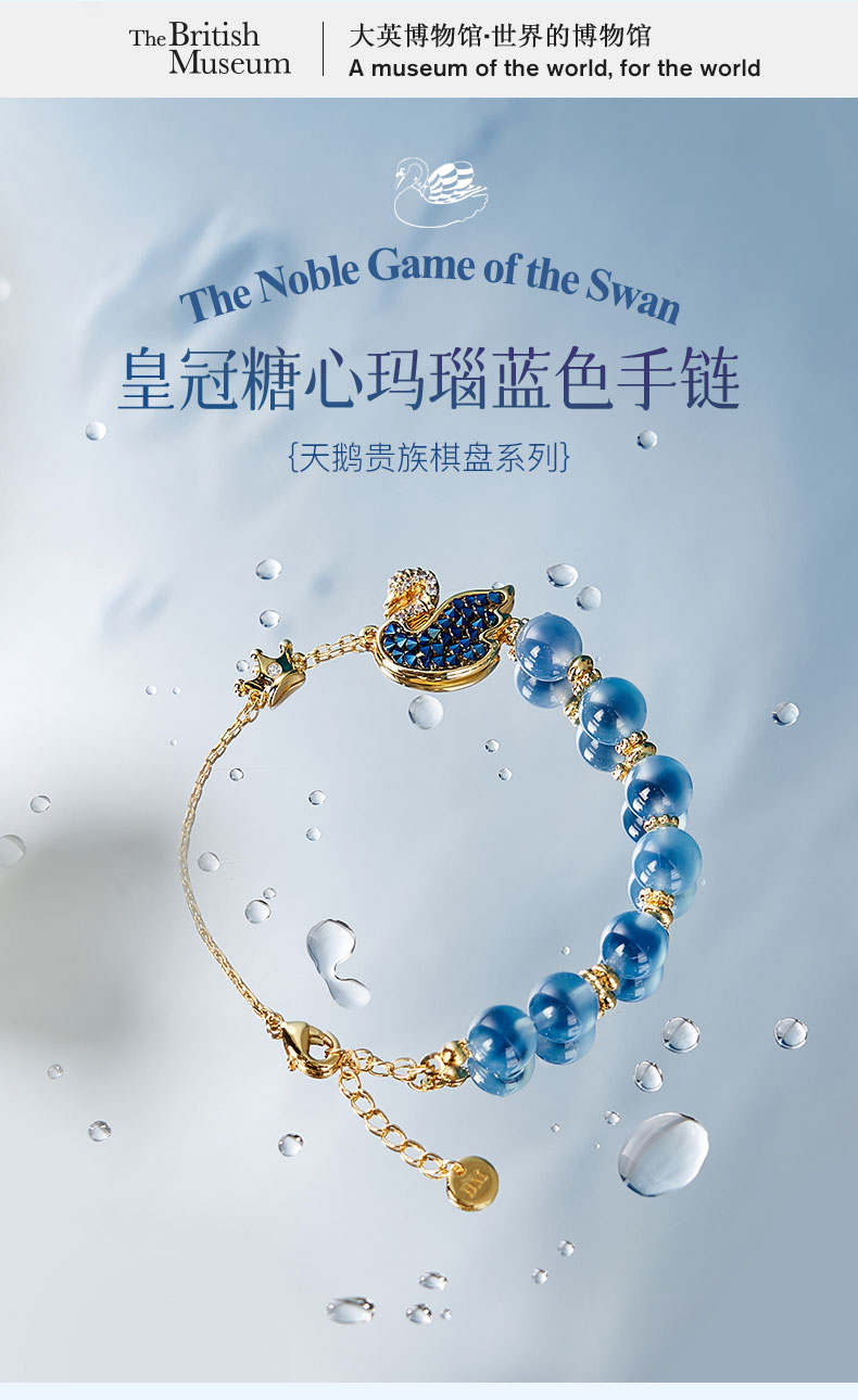 大英博物馆 天鹅贵族棋盘系列 皇冠糖心玛瑙蓝色 手链