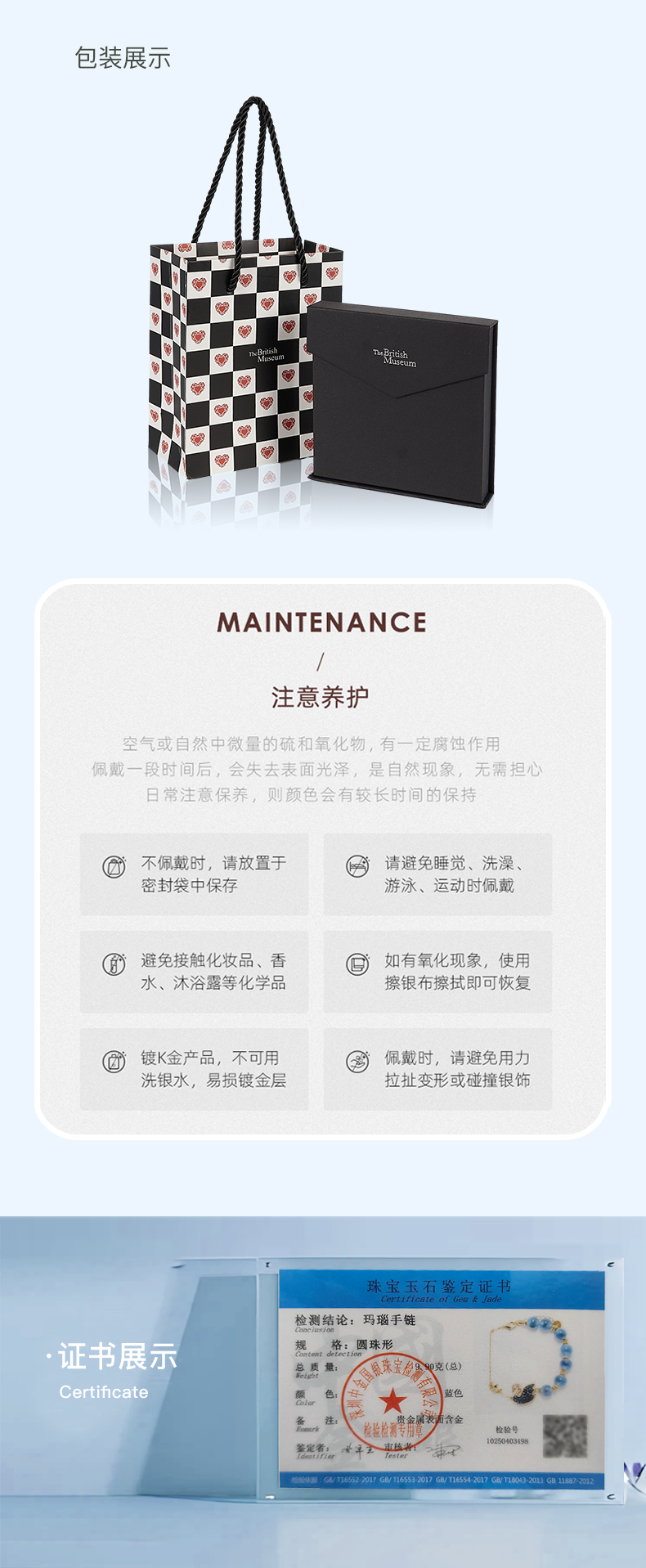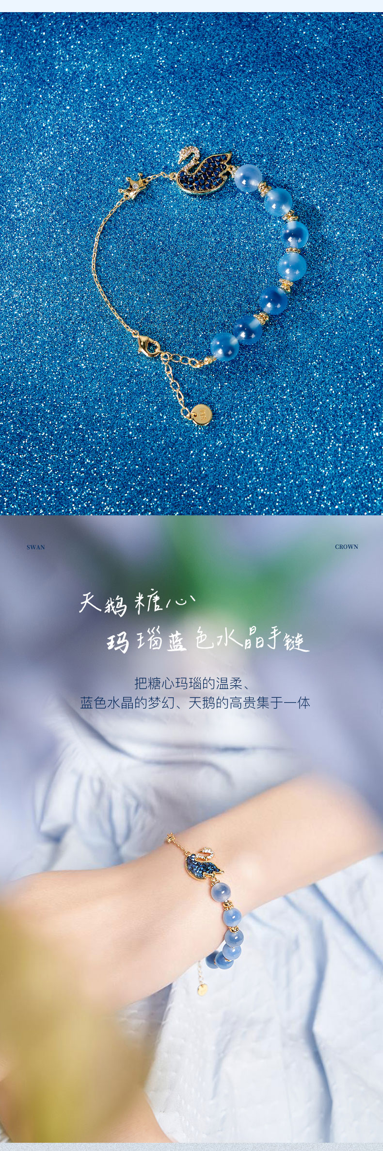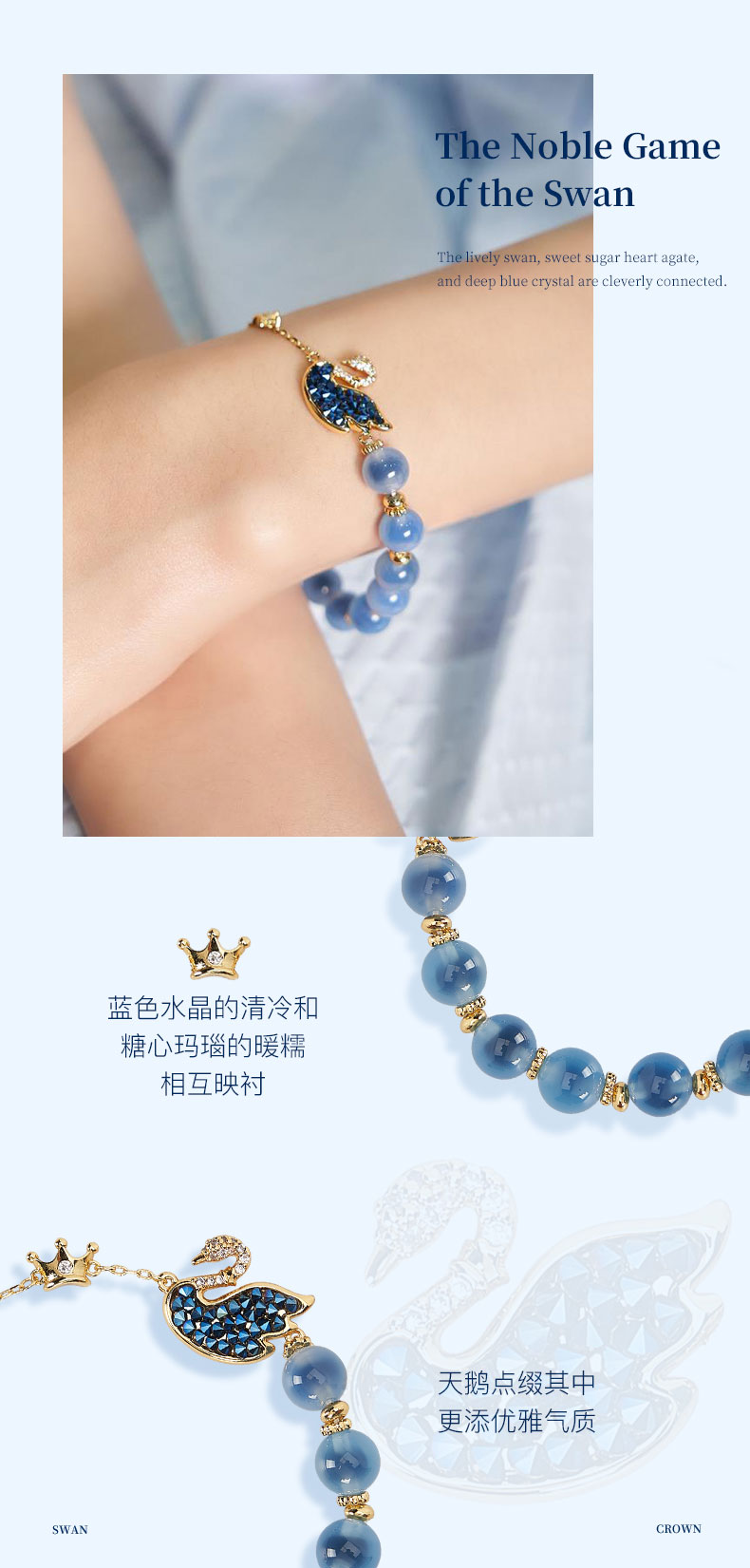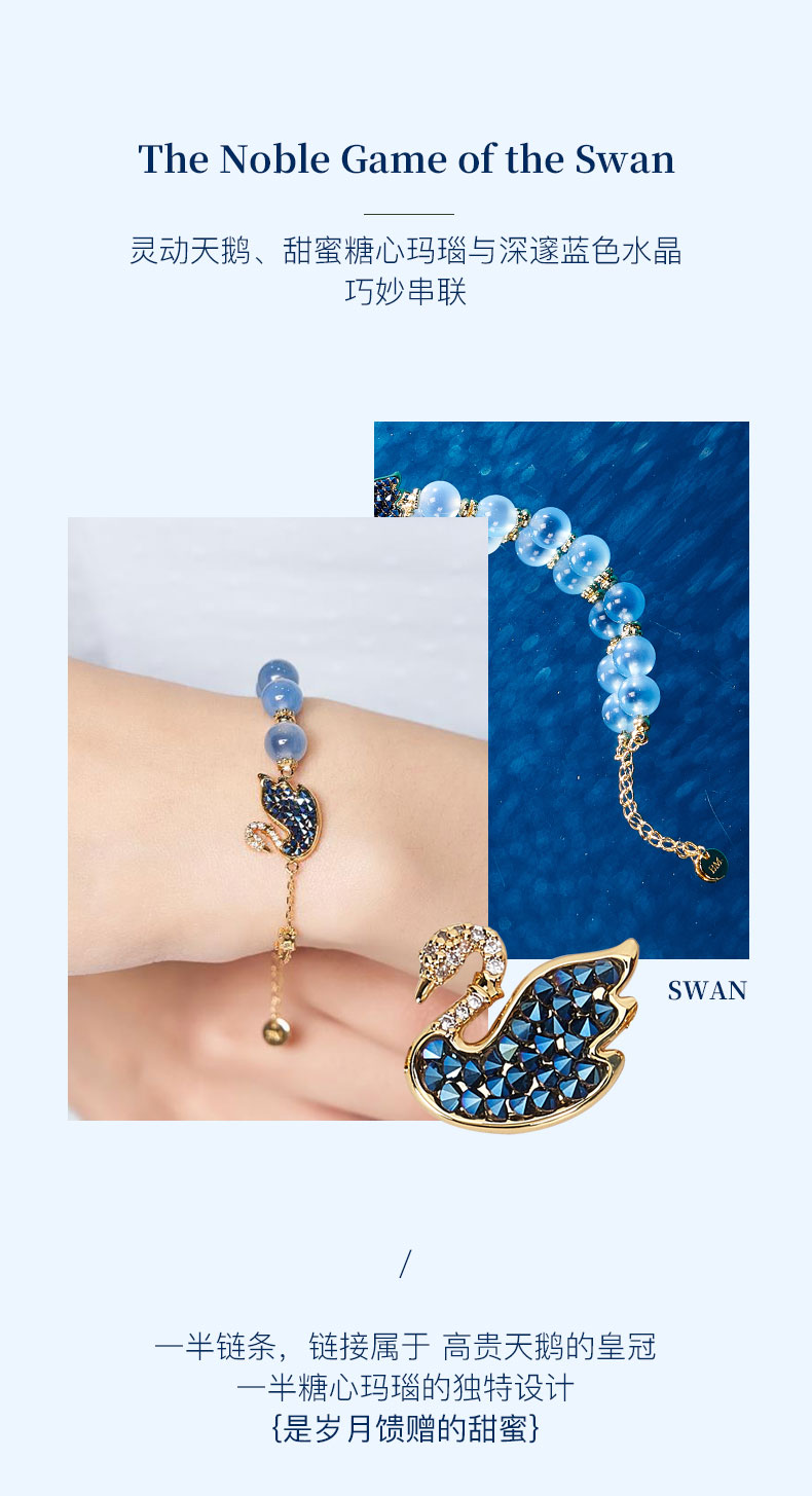 大英博物馆 天鹅贵族棋盘系列 皇冠糖心玛瑙蓝色 手链