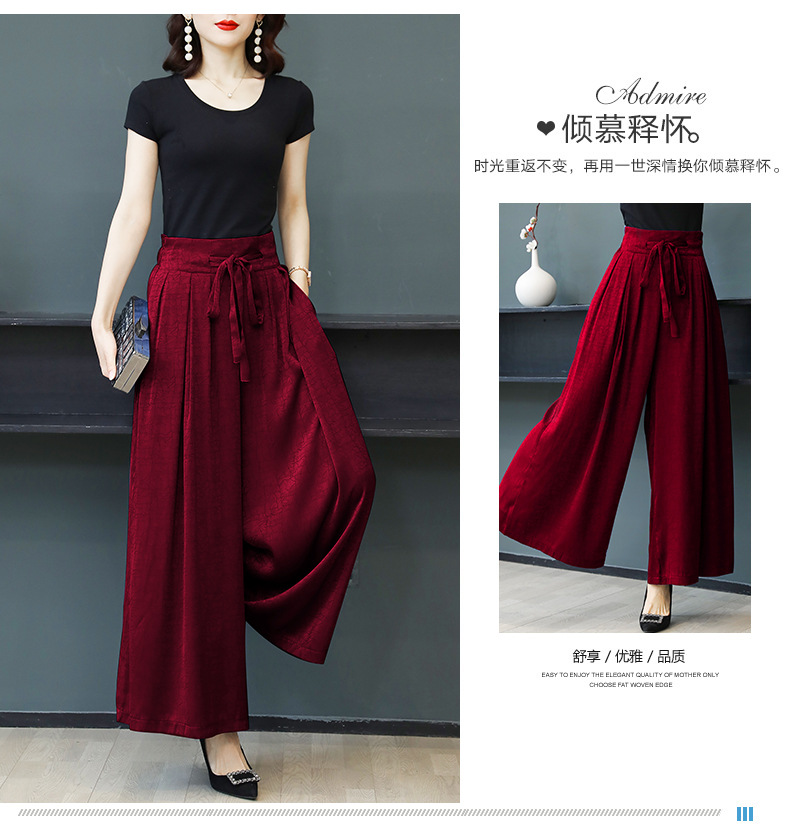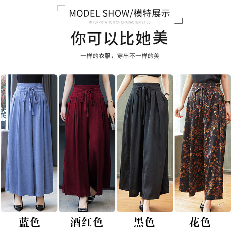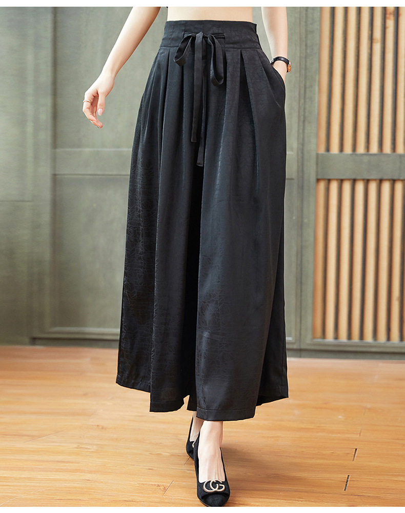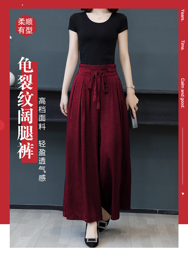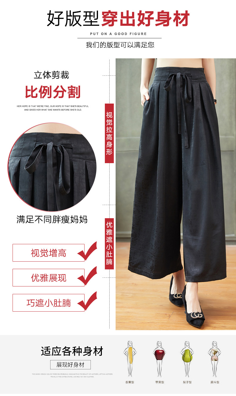 阔腿裤高腰垂感九分裤,大码龟裂纹仿香云纱休闲裤KQL-5123