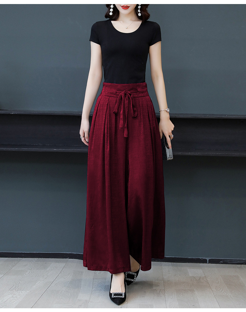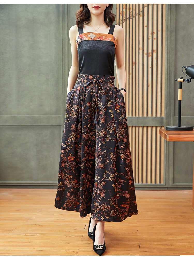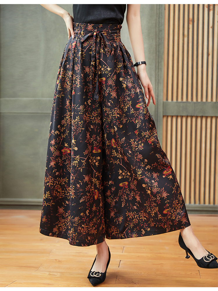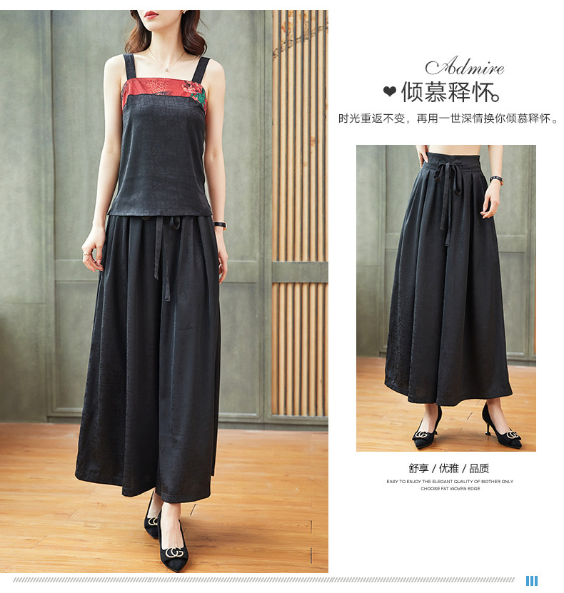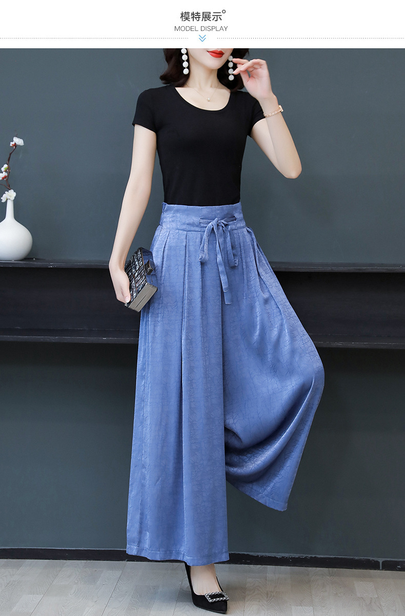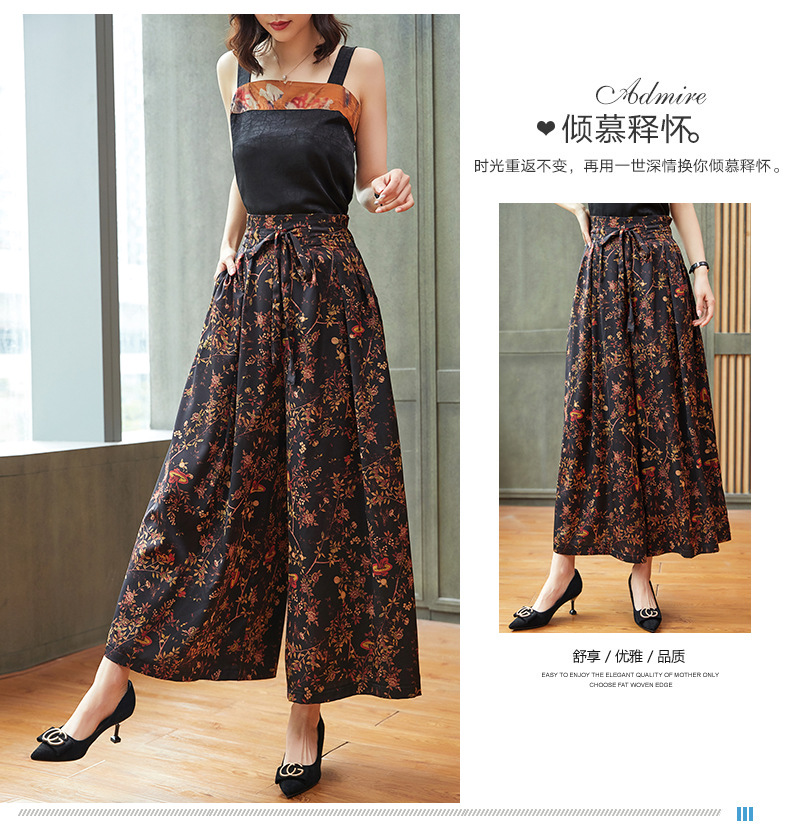 阔腿裤高腰垂感九分裤,大码龟裂纹仿香云纱休闲裤KQL-5123
