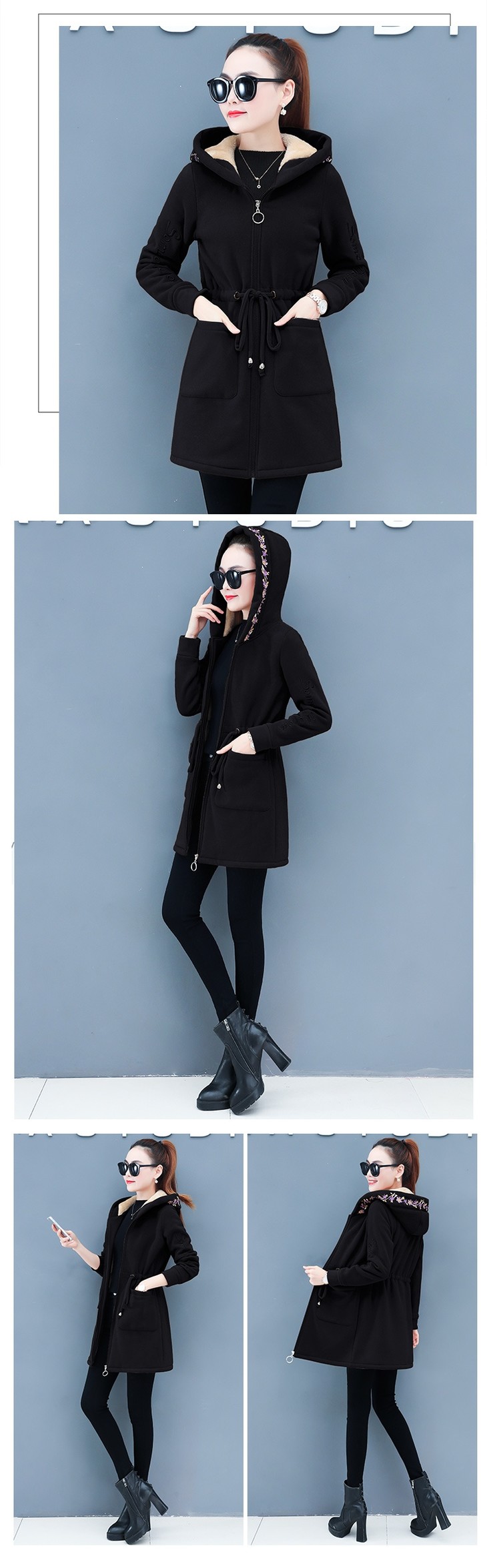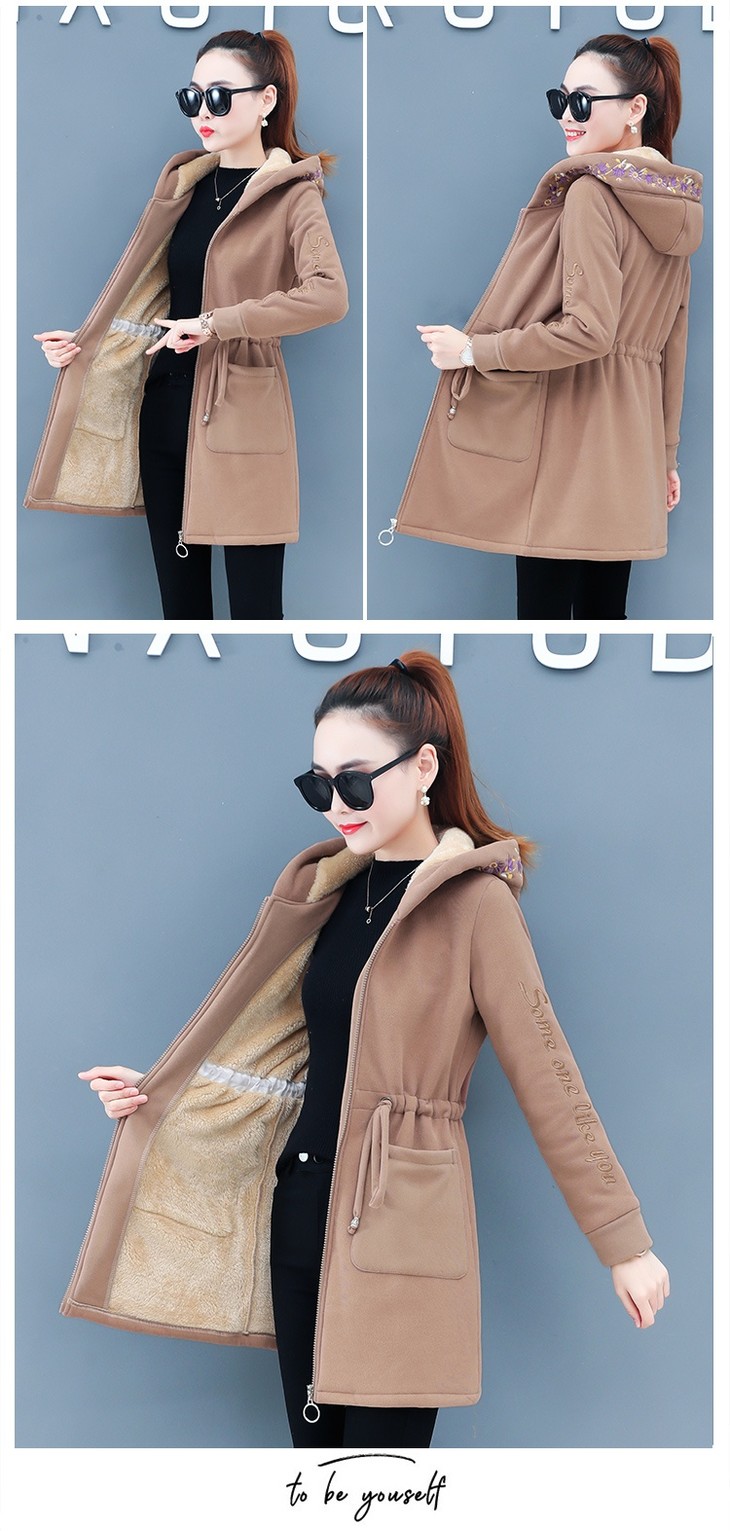 中长款加绒开衫羊羔毛外套女秋冬季加厚新款收腰显瘦连帽上衣 HT-YXL939