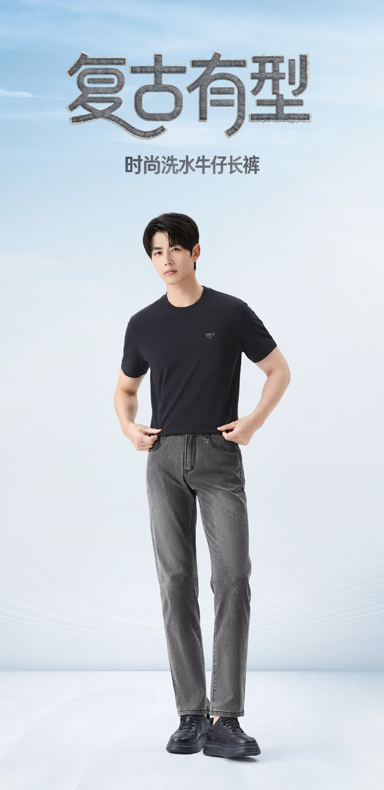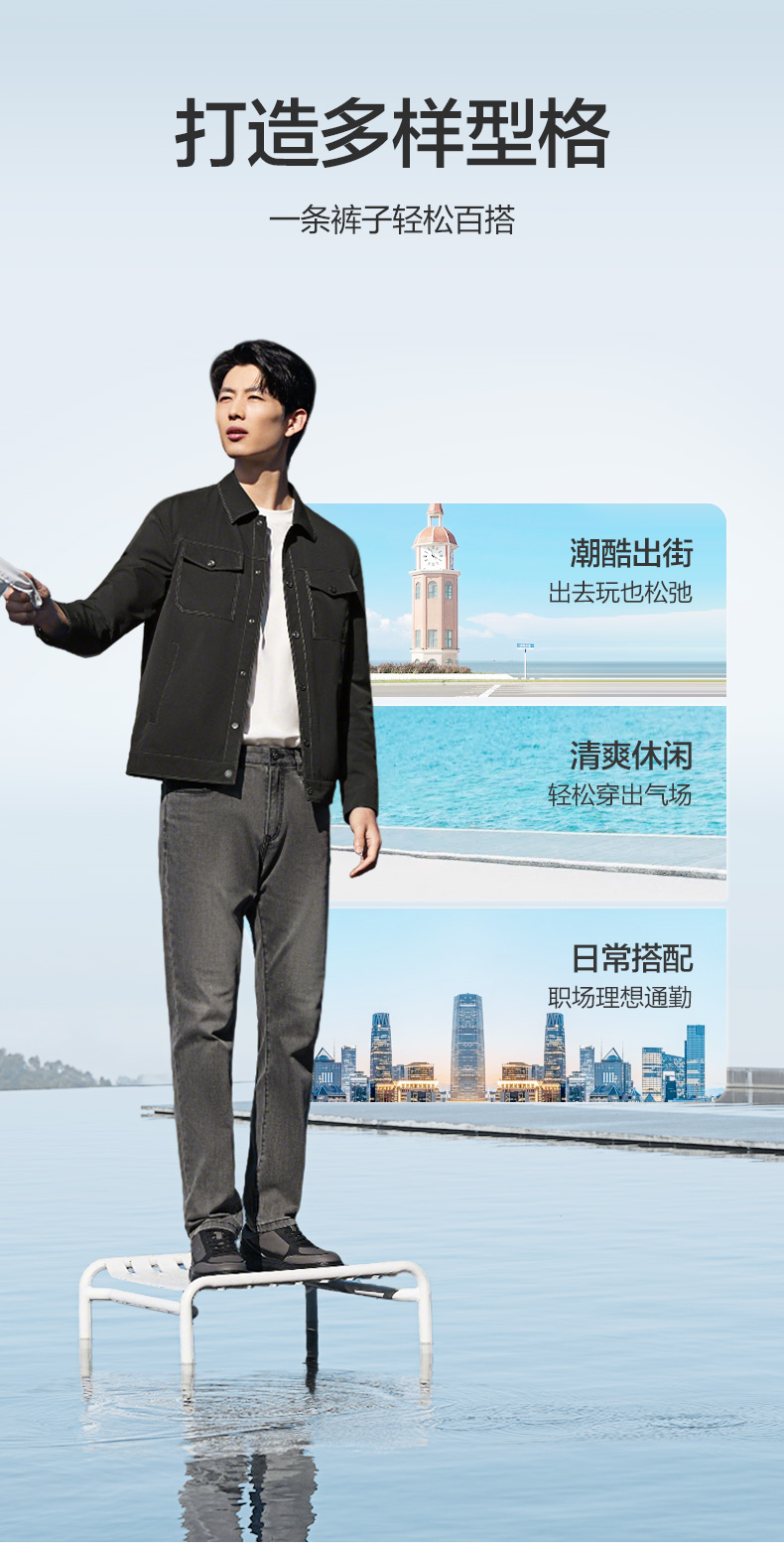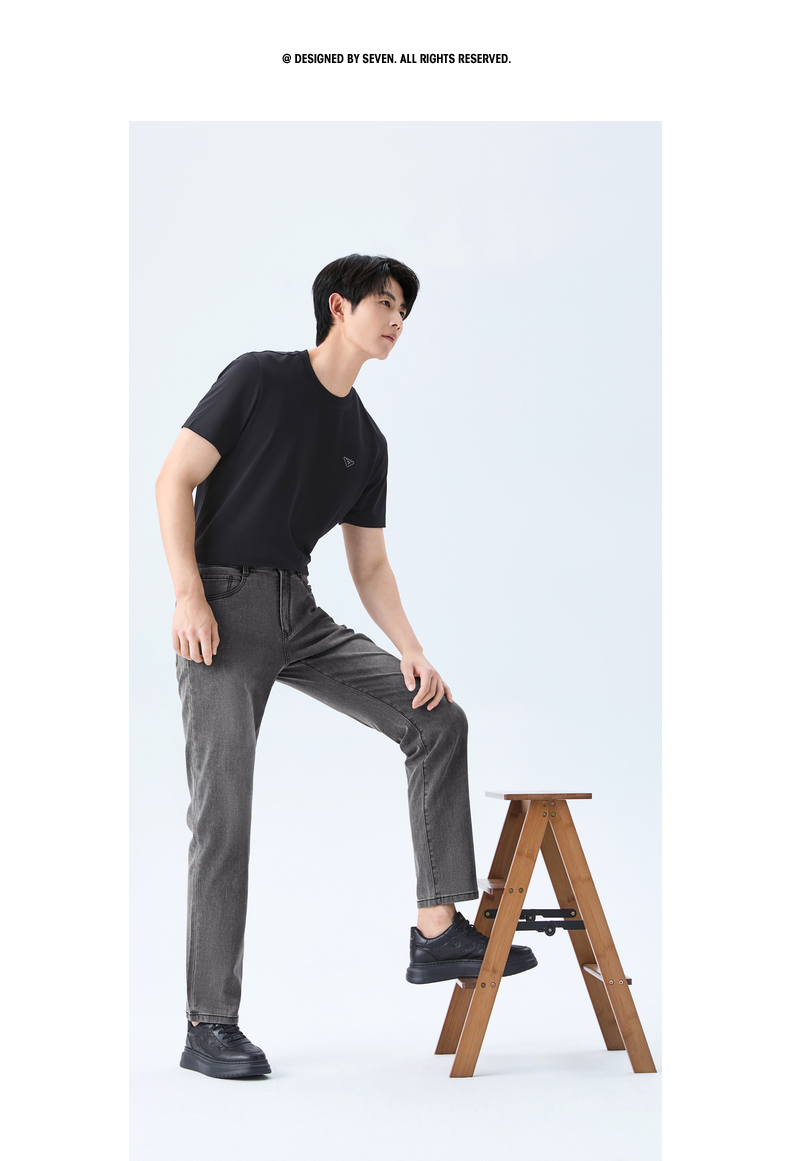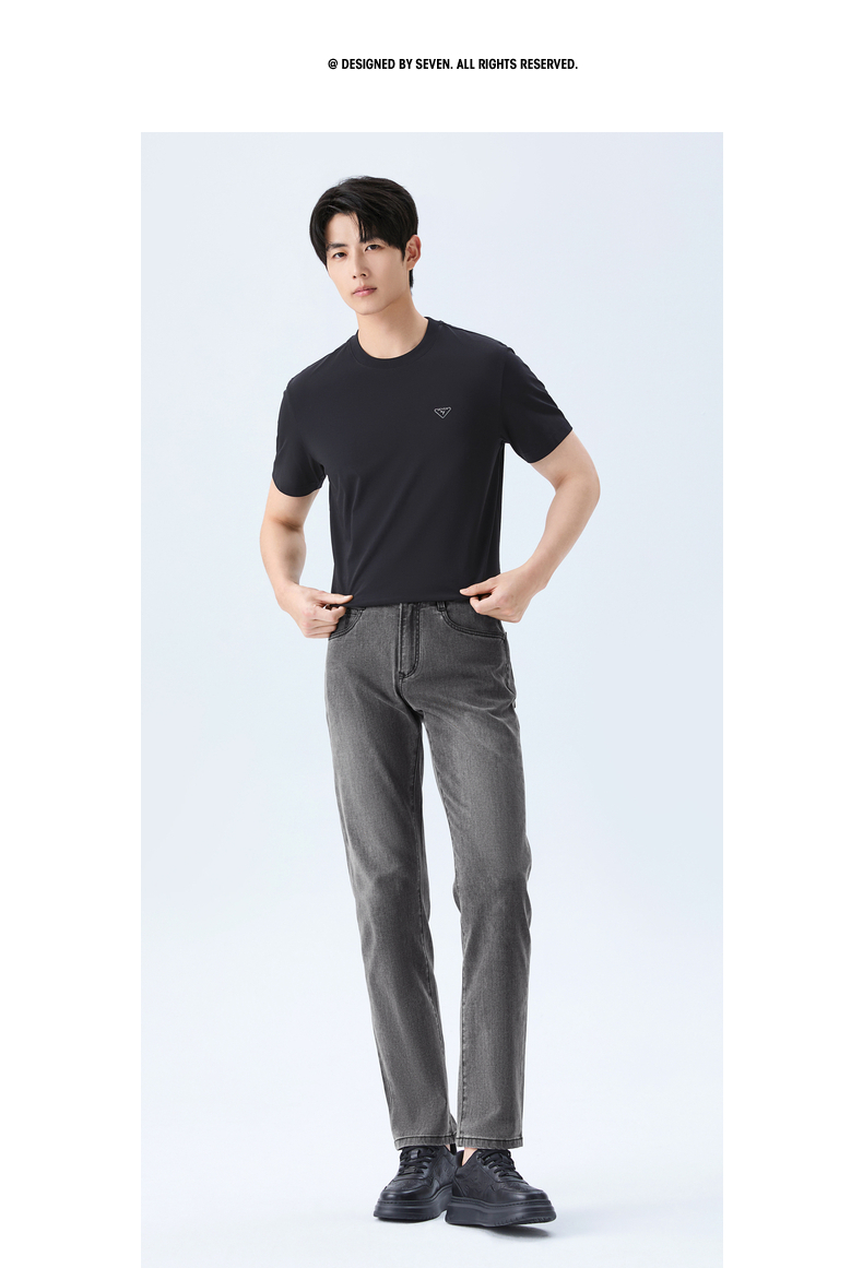 【莱卡】柒牌男士2026春季洗水牛仔长裤柔软舒适时尚洗水男装裤子130H70980
