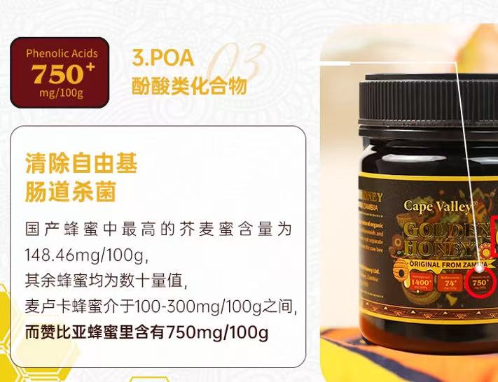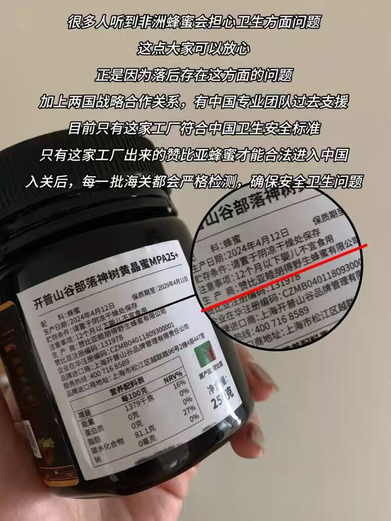 猫太推荐---开普山谷赞比亚蜂蜜纯正天然百年花果树野生睦朋得黄晶蜜MPA25+