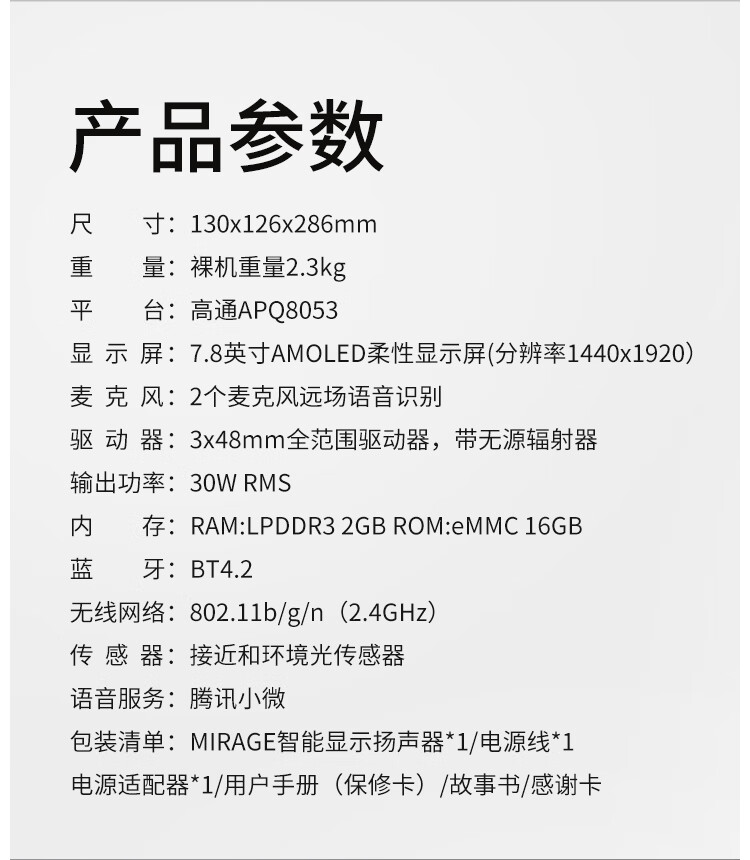 cleer Mirage 曲面显示屏无线智能蓝牙 WIFI 音箱可视频通话个性潮流创意智能音响 珠光黑