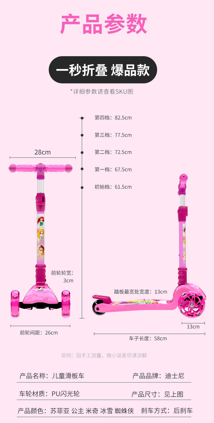 迪士尼(Disney)冰雪奇缘儿童滑板车1-2-3-6岁